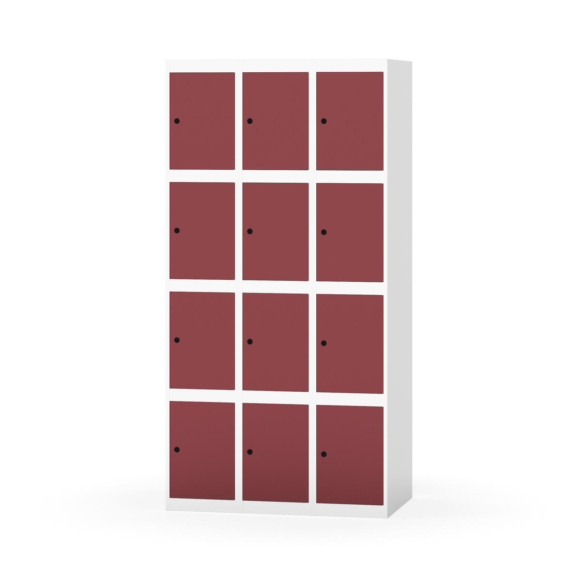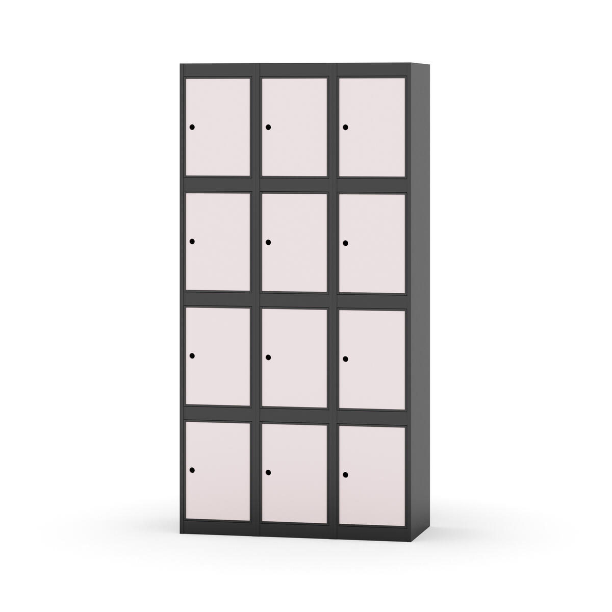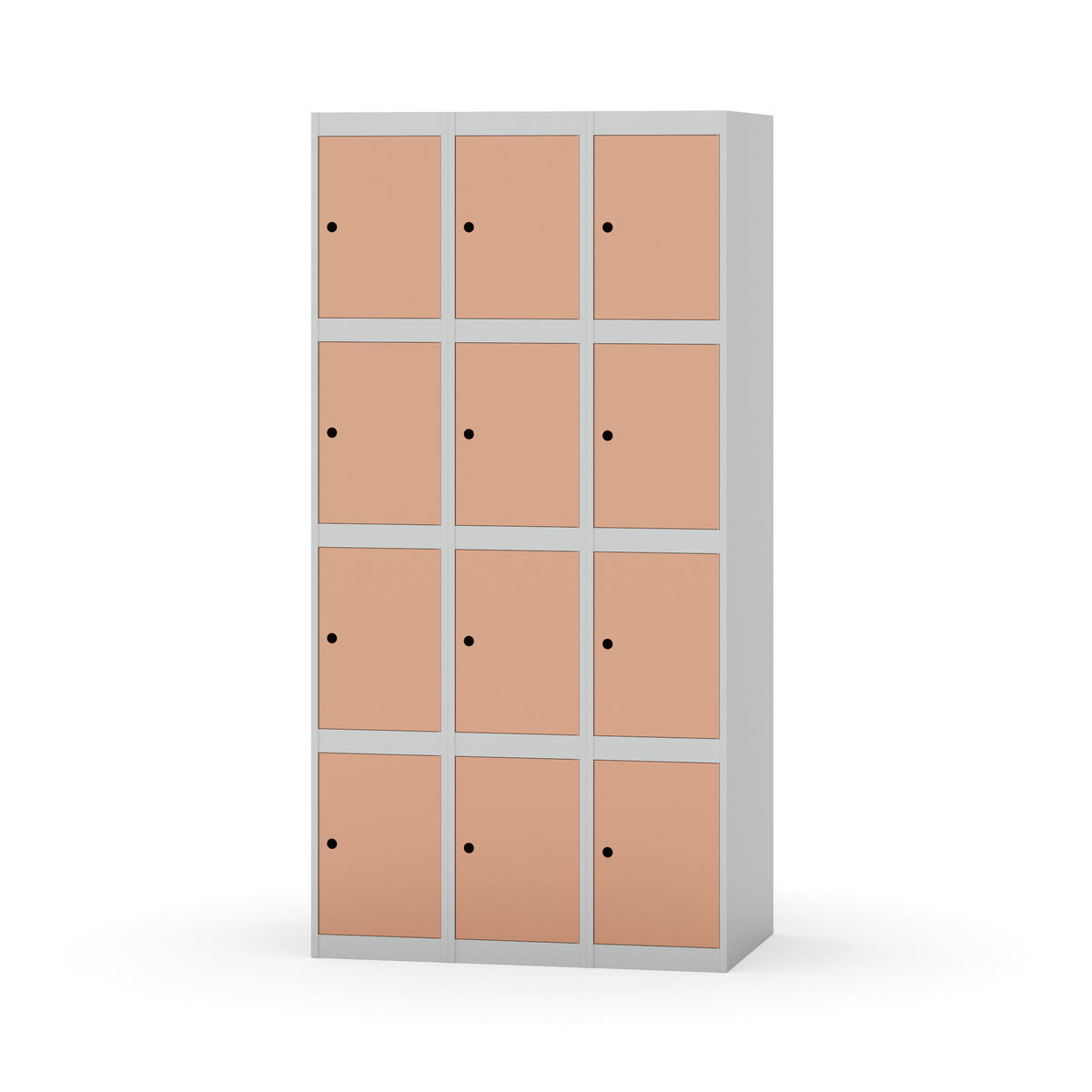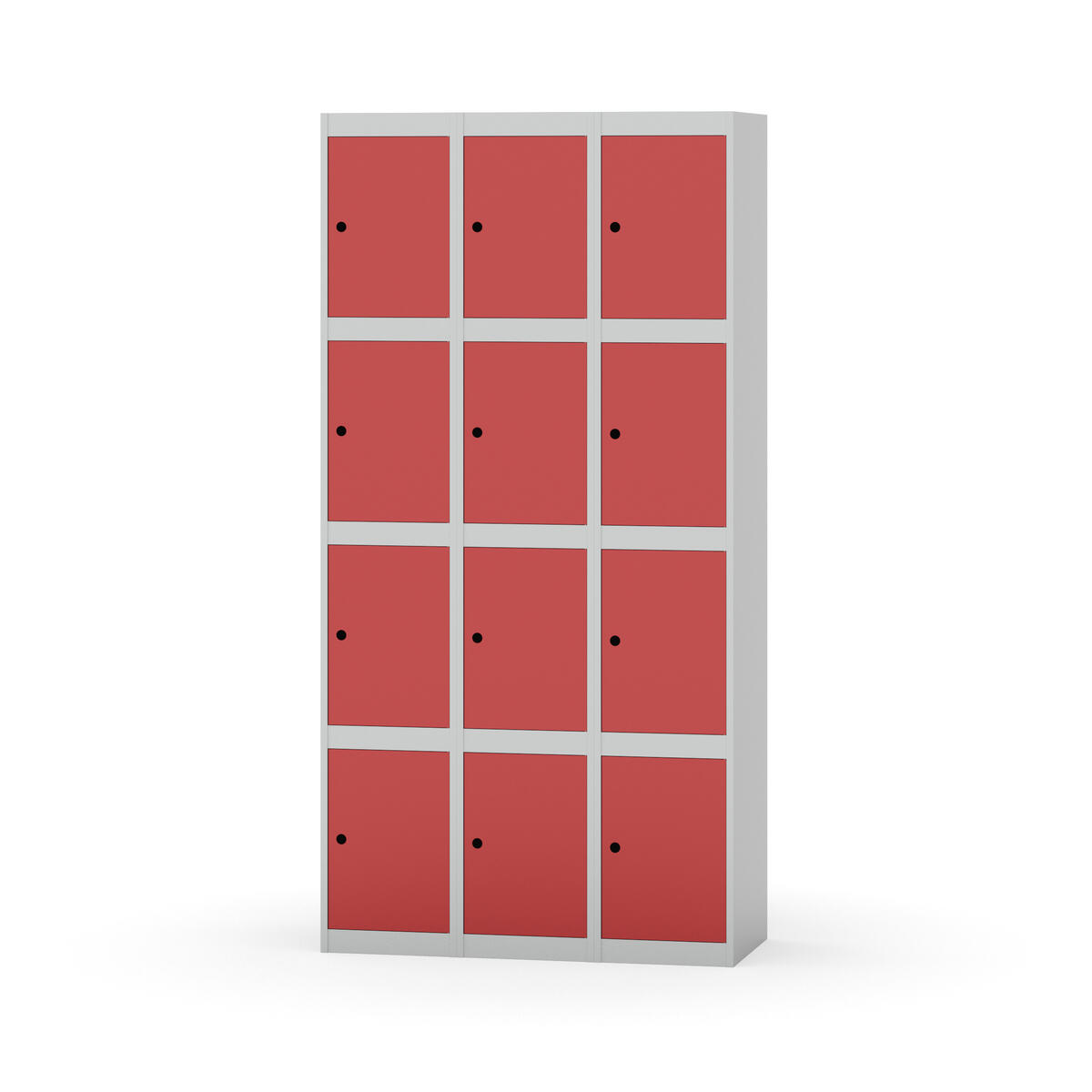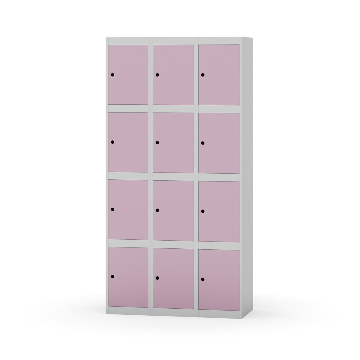Elevskap tilpasset krevende skolemiljøer. Skap med helsveiset stamme med forsterket rammeprofil. Velg mellom metall- eller laminatdør. Metalldøren er utstyrt med dørstopper i stål og innfelt forsterkning rundt låsehullet, doble stålplater og en ekstra forsterkning mellom platene. Laminatdøren er innfelt i stålramme utstyrt med dørstopper i stål. Dørene kan åpnes 90 grader. Innredning: Ingen. Glatt gulvflate uten terskel. Ventilasjon gjennom hull i tak/bunnplate. - Vær oppmerksom på at lås/hasp for hengelås og sokkel/ben bestilles på egne artikkelnummer. Lås/hasp for hengelås vil da være montert på skap ved levering. Valgt ben/sokkel monteres på stedet.