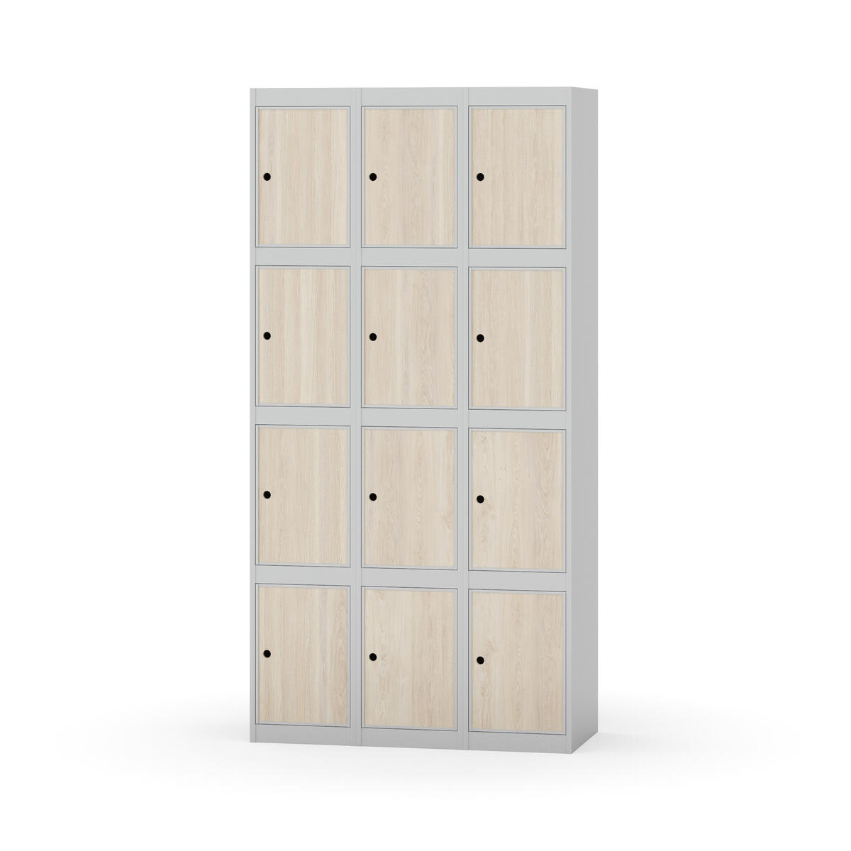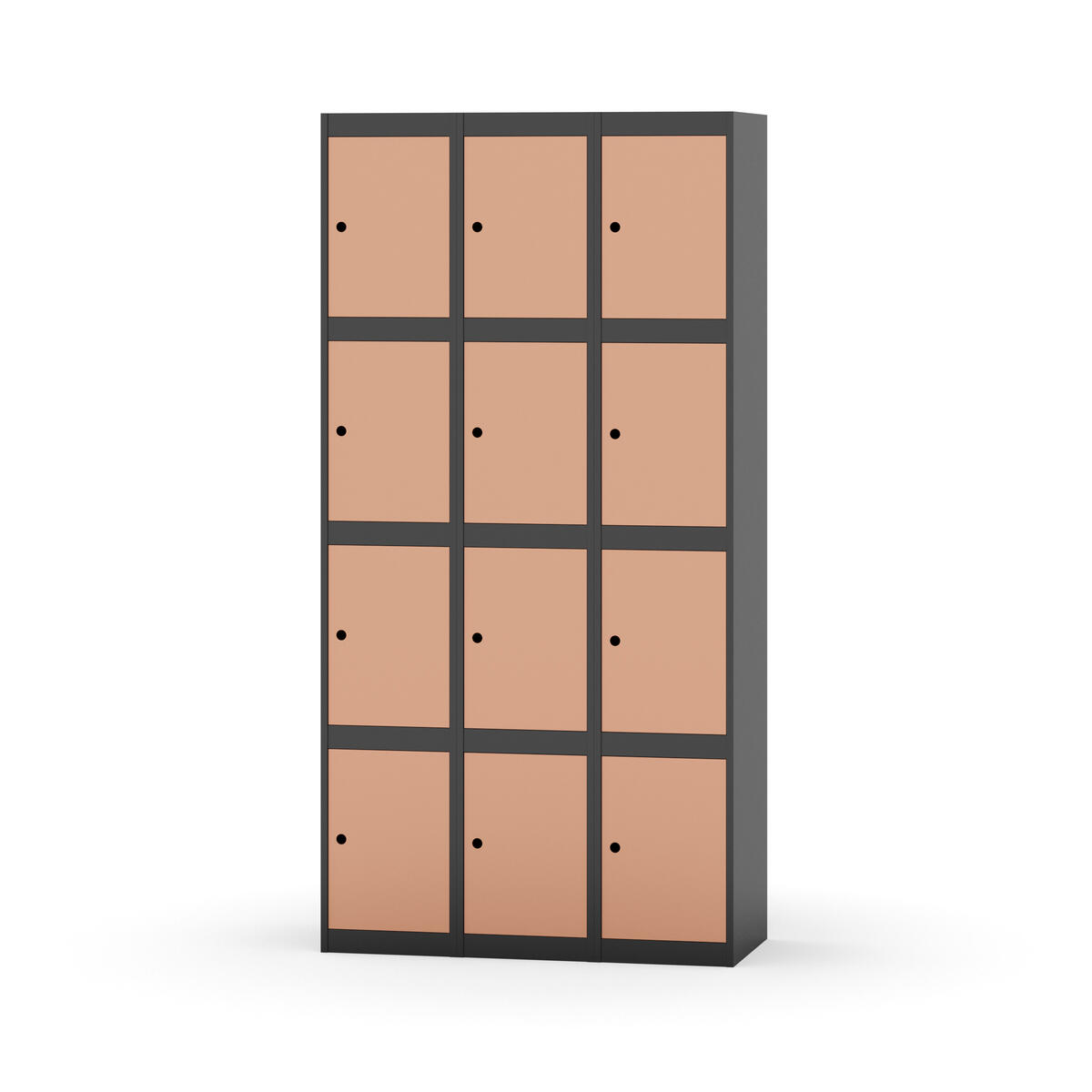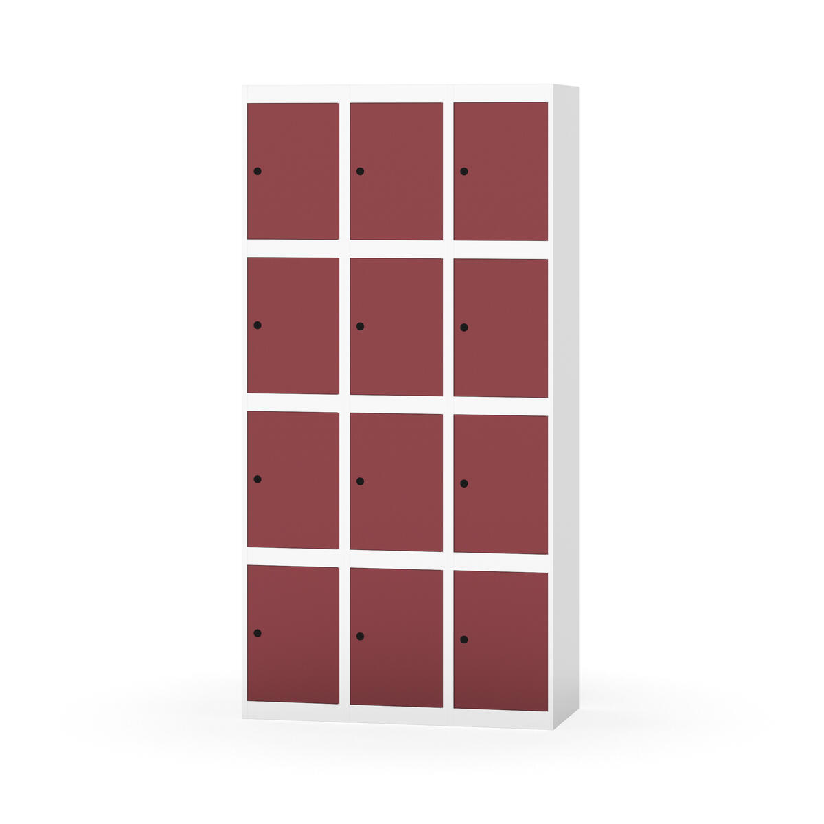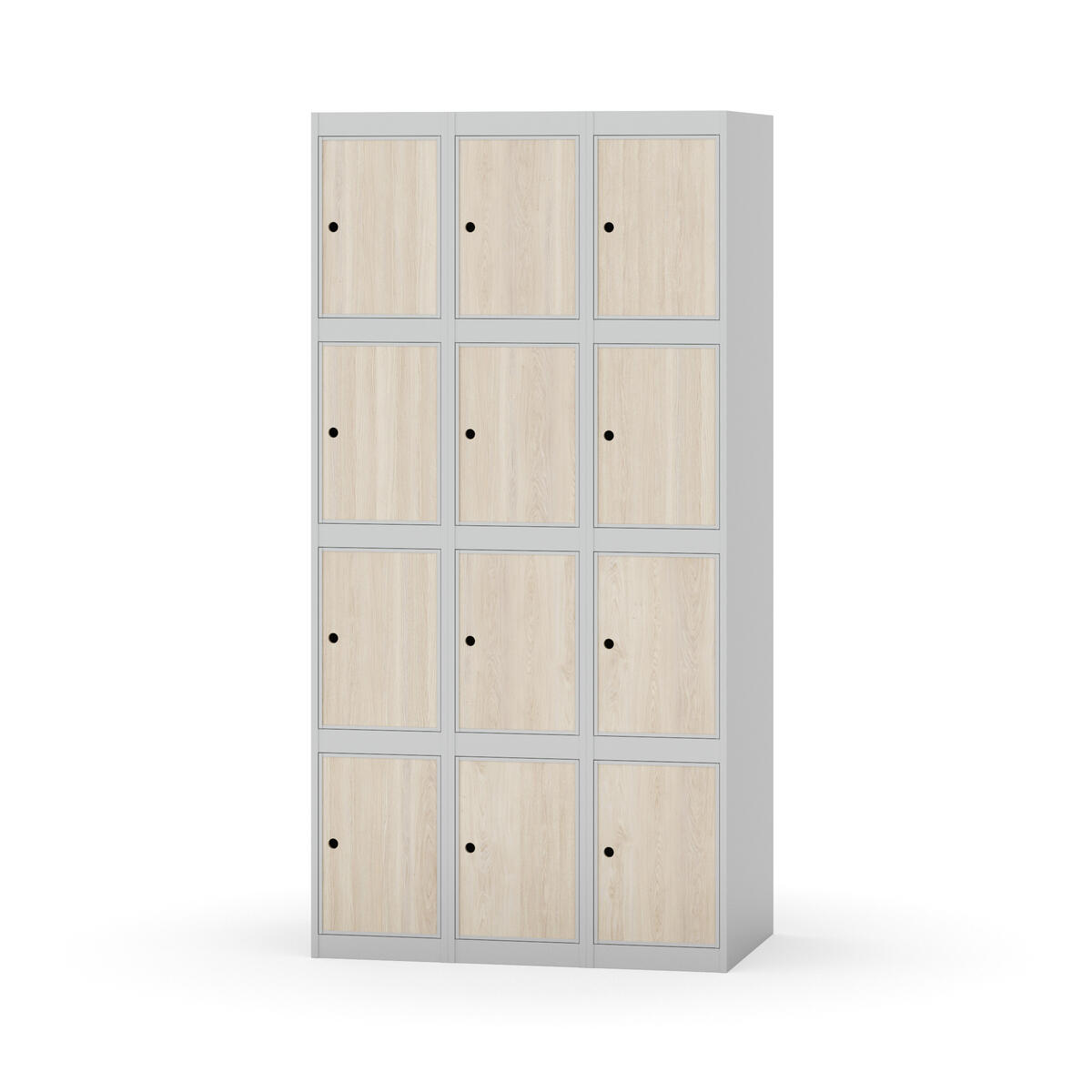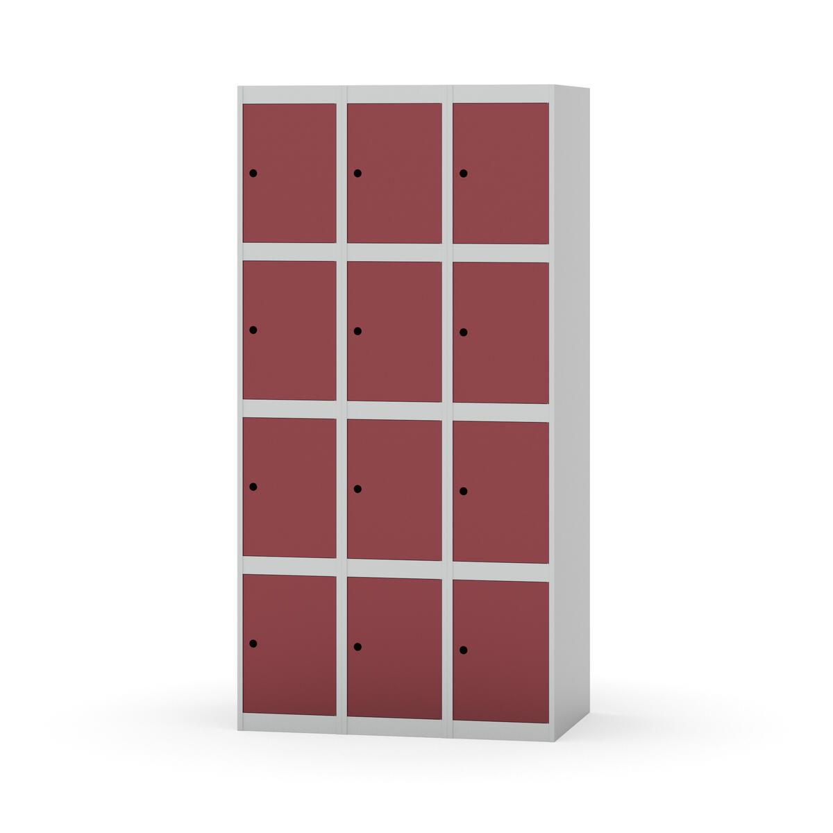 Elevskap tilpasset krevende skolemiljøer. Skap med helsveiset stamme med forsterket rammeprofil. Velg mellom metall- eller laminatdør. Metalldøren er utstyrt med dørstopper i stål og innfelt forsterkning rundt låsehullet, doble stålplater og en ekstra forsterkning mellom platene. Laminatdøren er innfelt i stålramme utstyrt med dørstopper i stål. Dørene kan åpnes 90 grader. Innredning: Ingen. Glatt gulvflate uten terskel. Ventilasjon gjennom hull i tak/bunnplate. - Vær oppmerksom på at lås/hasp for hengelås og sokkel/ben bestilles på egne artikkelnummer. Lås/hasp for hengelås vil da være montert på skap ved levering. Valgt ben/sokkel monteres på stedet.
