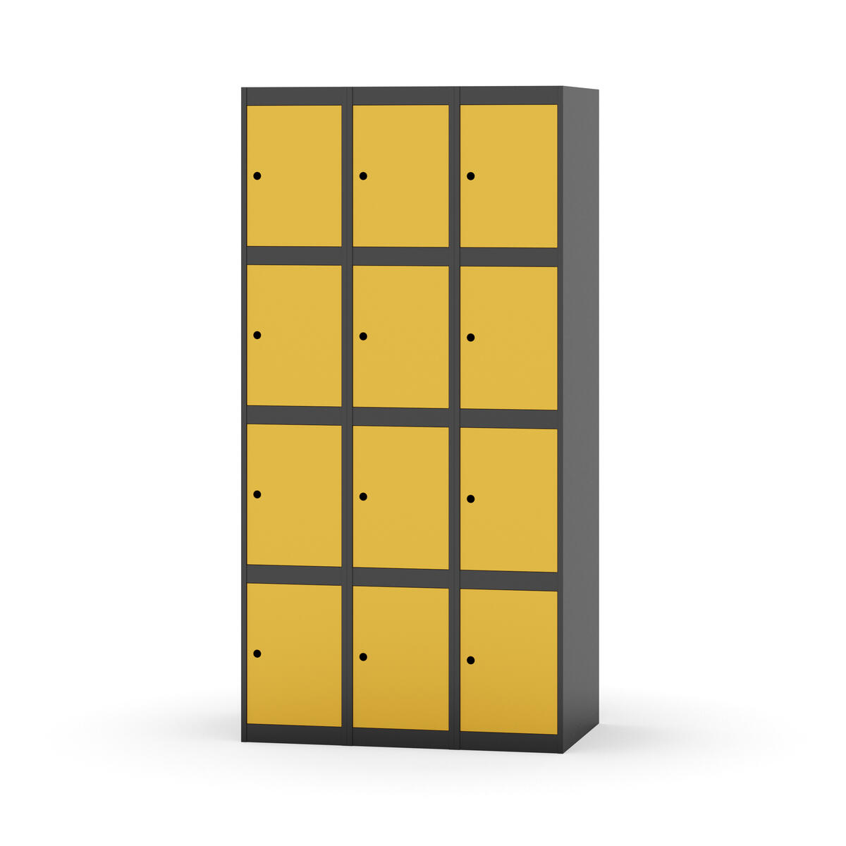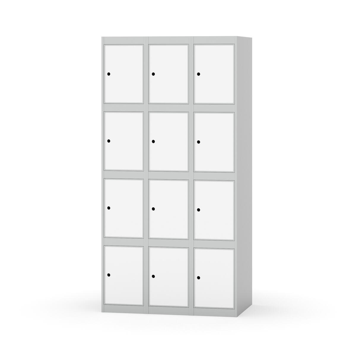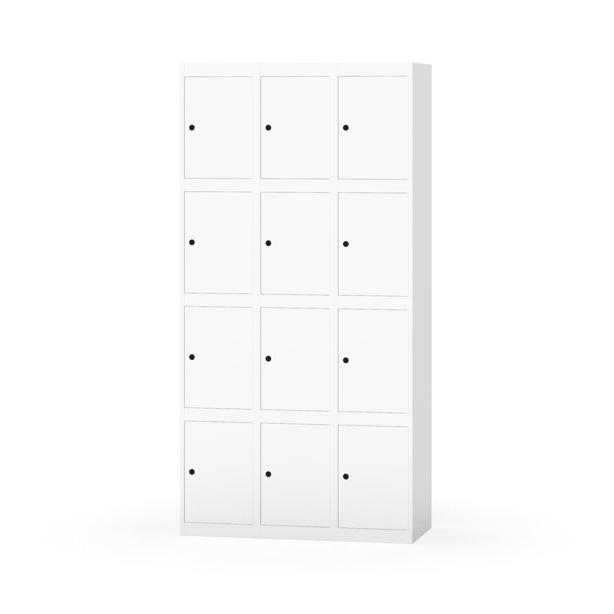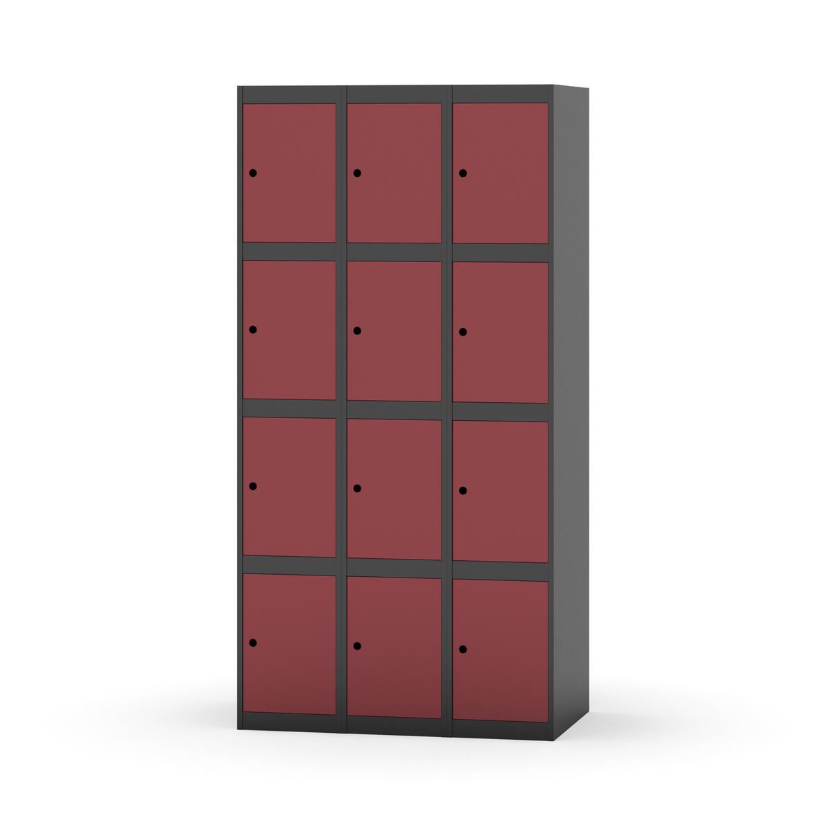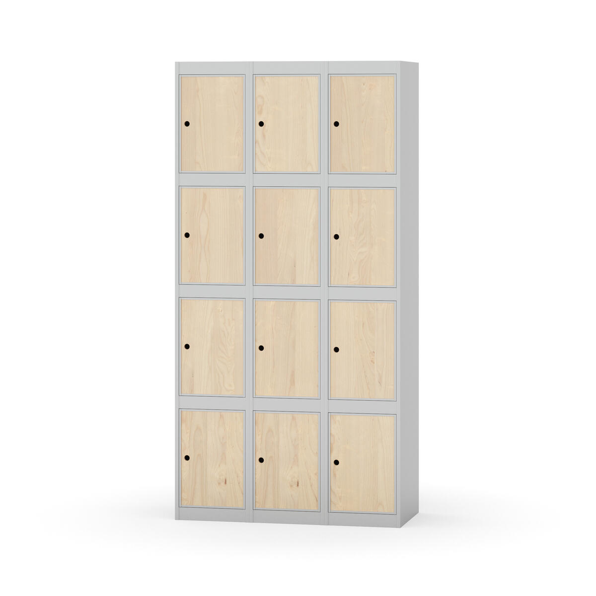 Elevskap tilpasset krevende skolemiljøer. Skap med helsveiset stamme med forsterket rammeprofil. Velg mellom metall- eller laminatdør. Metalldøren er utstyrt med dørstopper i stål og innfelt forsterkning rundt låsehullet, doble stålplater og en ekstra forsterkning mellom platene. Laminatdøren er innfelt i stålramme utstyrt med dørstopper i stål. Dørene kan åpnes 90 grader. Innredning: Ingen. Glatt gulvflate uten terskel. Ventilasjon gjennom hull i tak/bunnplate. - Vær oppmerksom på at lås/hasp for hengelås og sokkel/ben bestilles på egne artikkelnummer. Lås/hasp for hengelås vil da være montert på skap ved levering. Valgt ben/sokkel monteres på stedet.