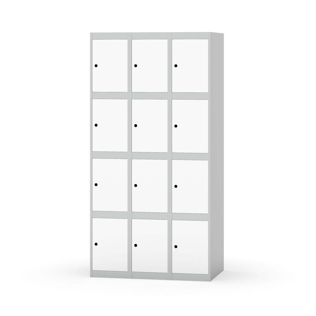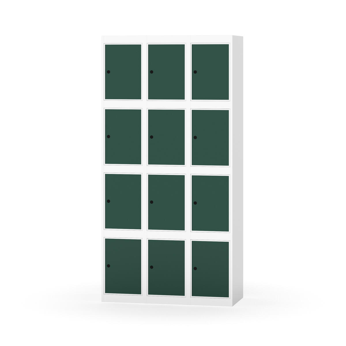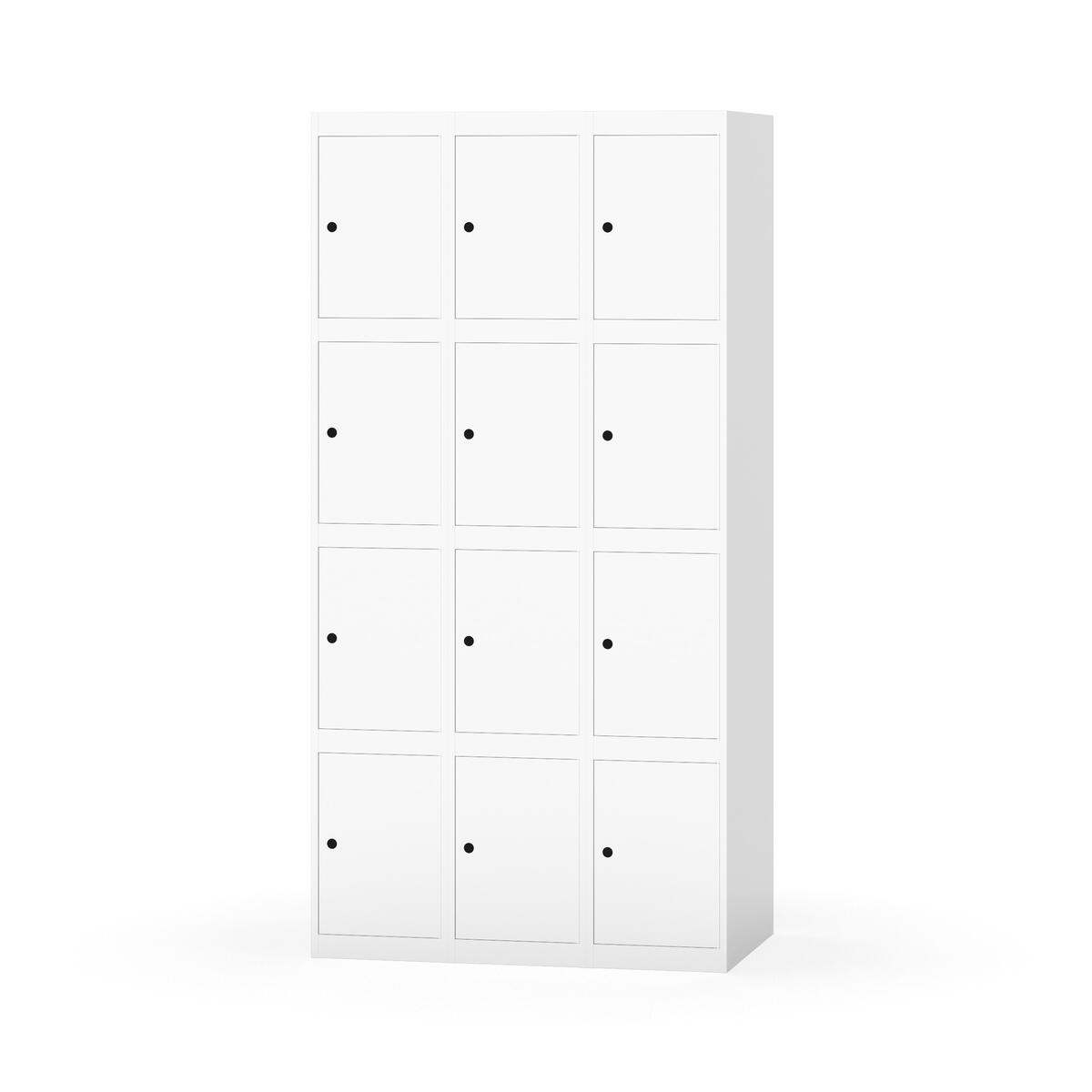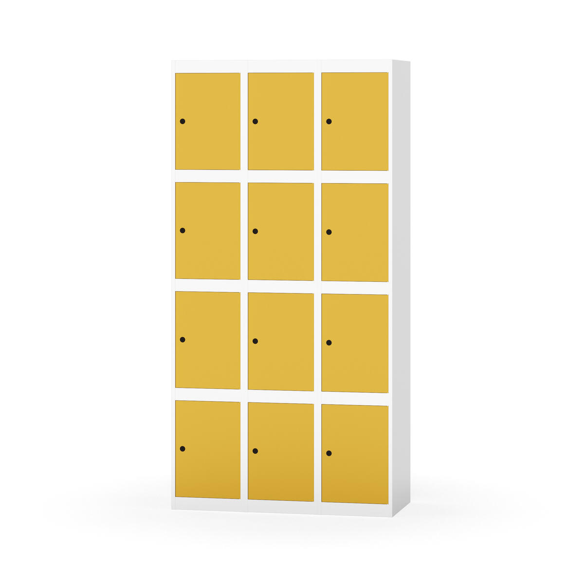 Elevskap tilpasset krevende skolemiljøer. Skap med helsveiset stamme med forsterket rammeprofil. Velg mellom metall- eller laminatdør. Metalldøren er utstyrt med dørstopper i stål og innfelt forsterkning rundt låsehullet, doble stålplater og en ekstra forsterkning mellom platene. Laminatdøren er innfelt i stålramme utstyrt med dørstopper i stål. Dørene kan åpnes 90 grader. Innredning: Ingen. Glatt gulvflate uten terskel. Ventilasjon gjennom hull i tak/bunnplate. - Vær oppmerksom på at lås/hasp for hengelås og sokkel/ben bestilles på egne artikkelnummer. Lås/hasp for hengelås vil da være montert på skap ved levering. Valgt ben/sokkel monteres på stedet.