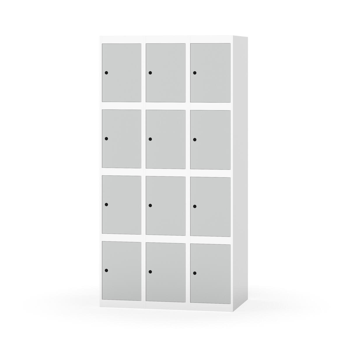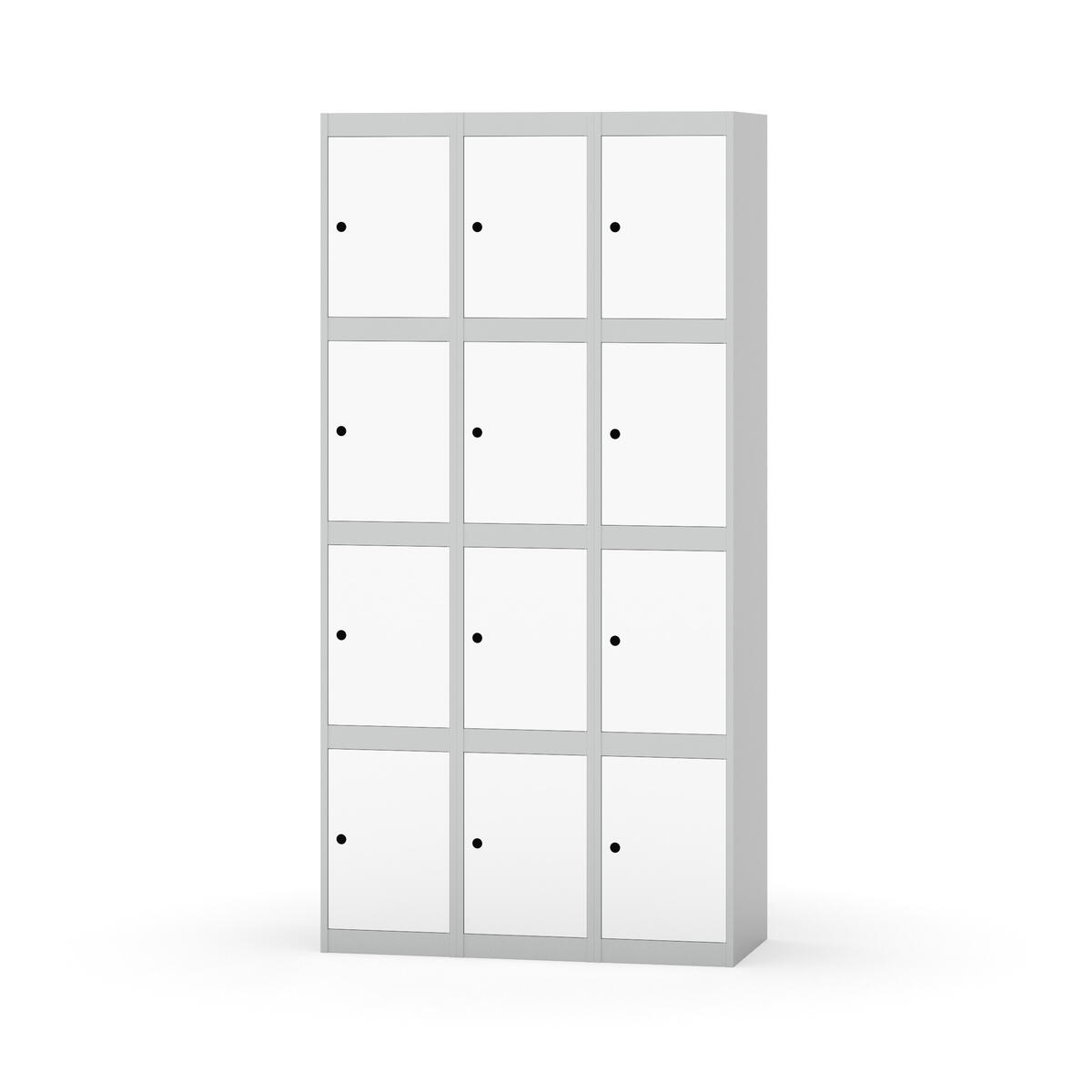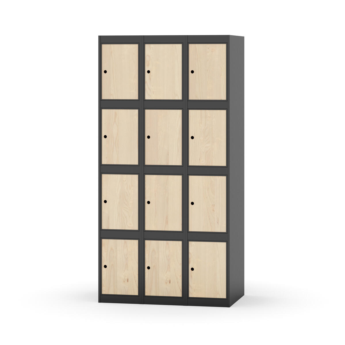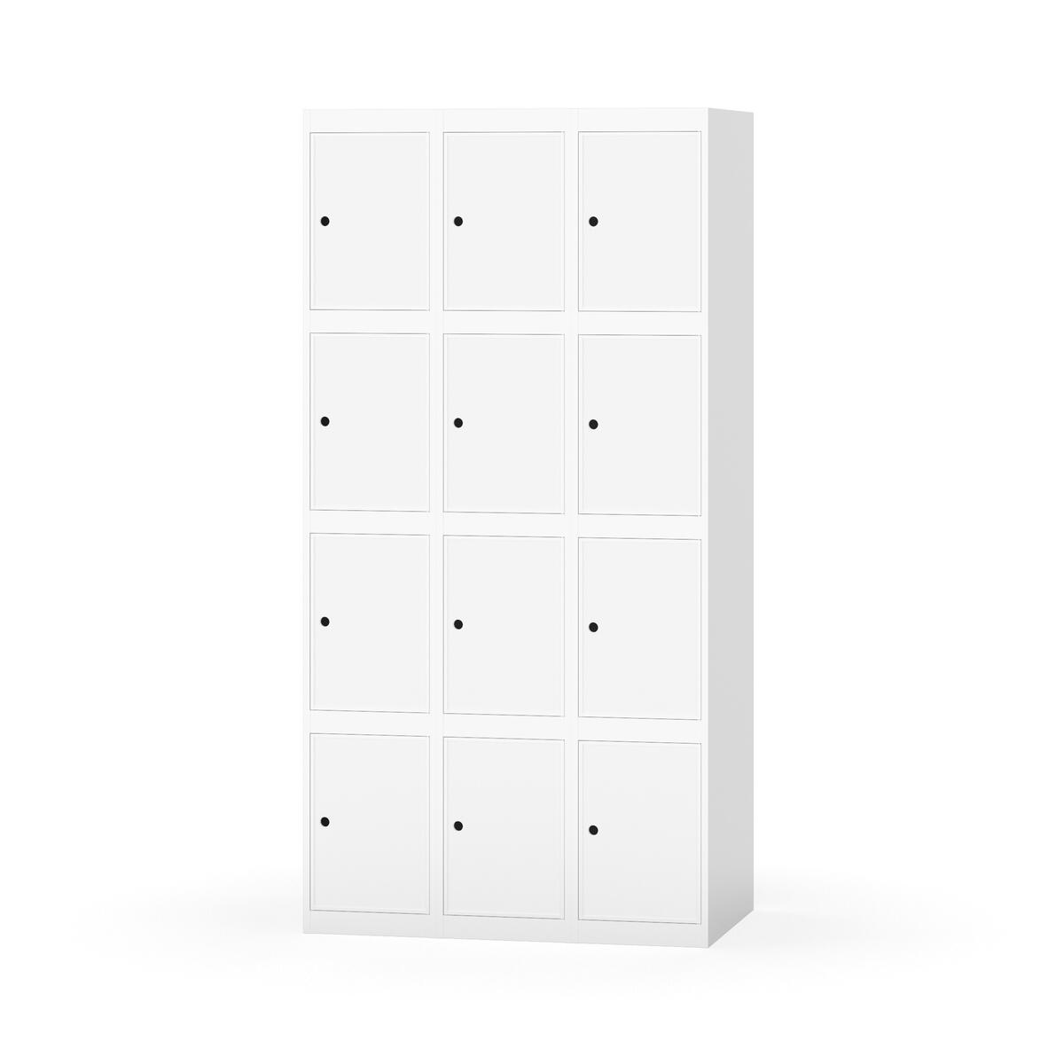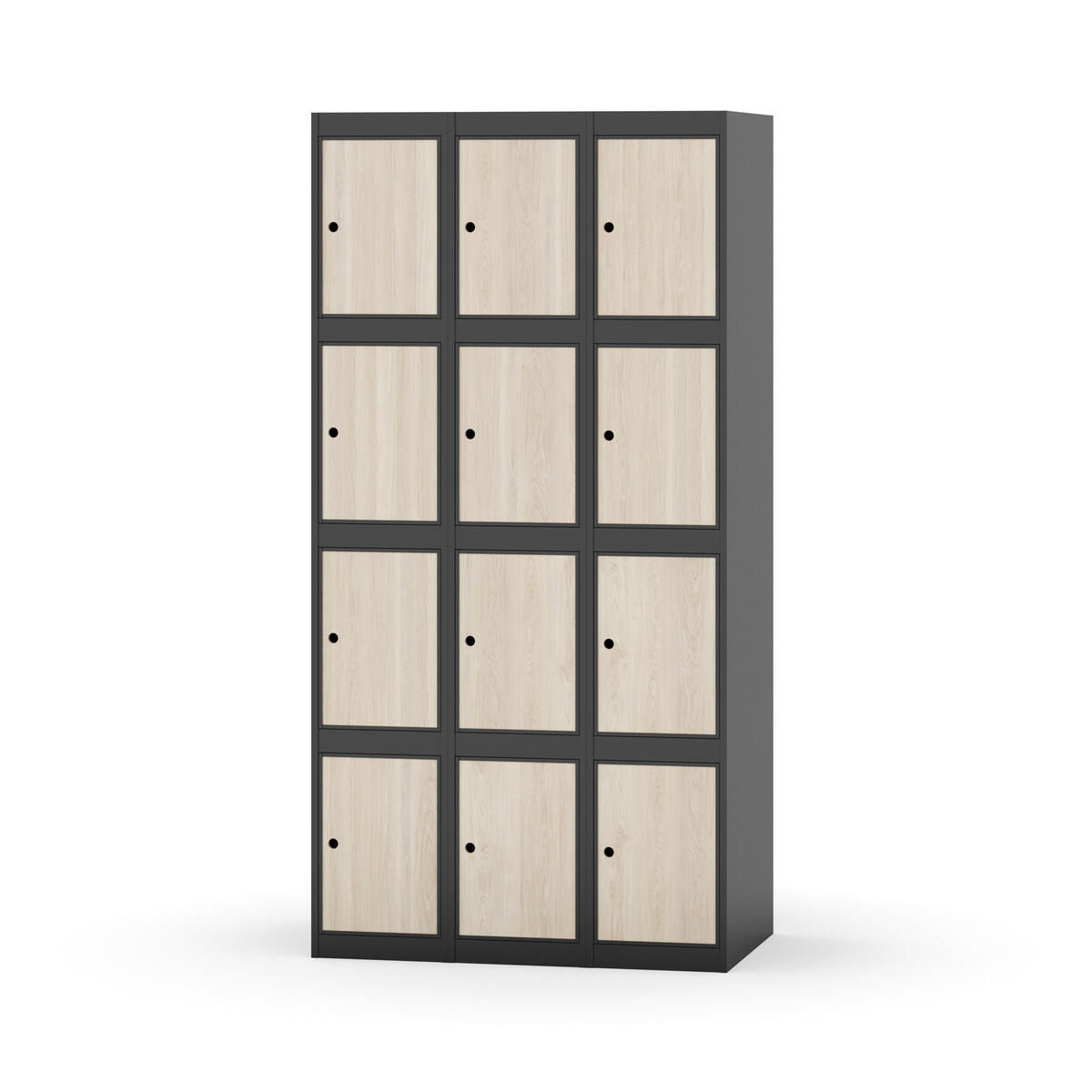 Elevskap tilpasset krevende skolemiljøer. Skap med helsveiset stamme med forsterket rammeprofil. Velg mellom metall- eller laminatdør. Metalldøren er utstyrt med dørstopper i stål og innfelt forsterkning rundt låsehullet, doble stålplater og en ekstra forsterkning mellom platene. Laminatdøren er innfelt i stålramme utstyrt med dørstopper i stål. Dørene kan åpnes 90 grader. Innredning: Ingen. Glatt gulvflate uten terskel. Ventilasjon gjennom hull i tak/bunnplate. - Vær oppmerksom på at lås/hasp for hengelås og sokkel/ben bestilles på egne artikkelnummer. Lås/hasp for hengelås vil da være montert på skap ved levering. Valgt ben/sokkel monteres på stedet.