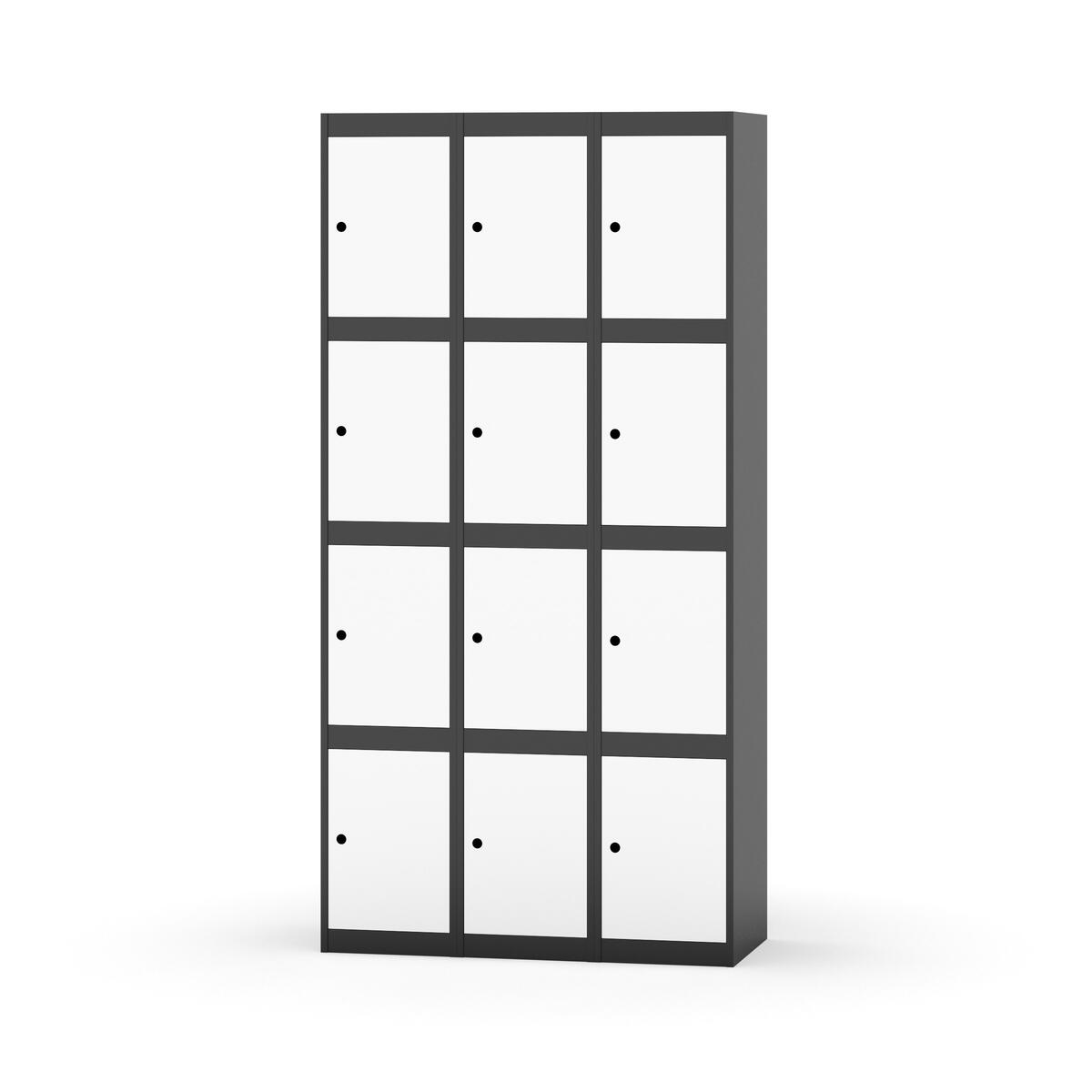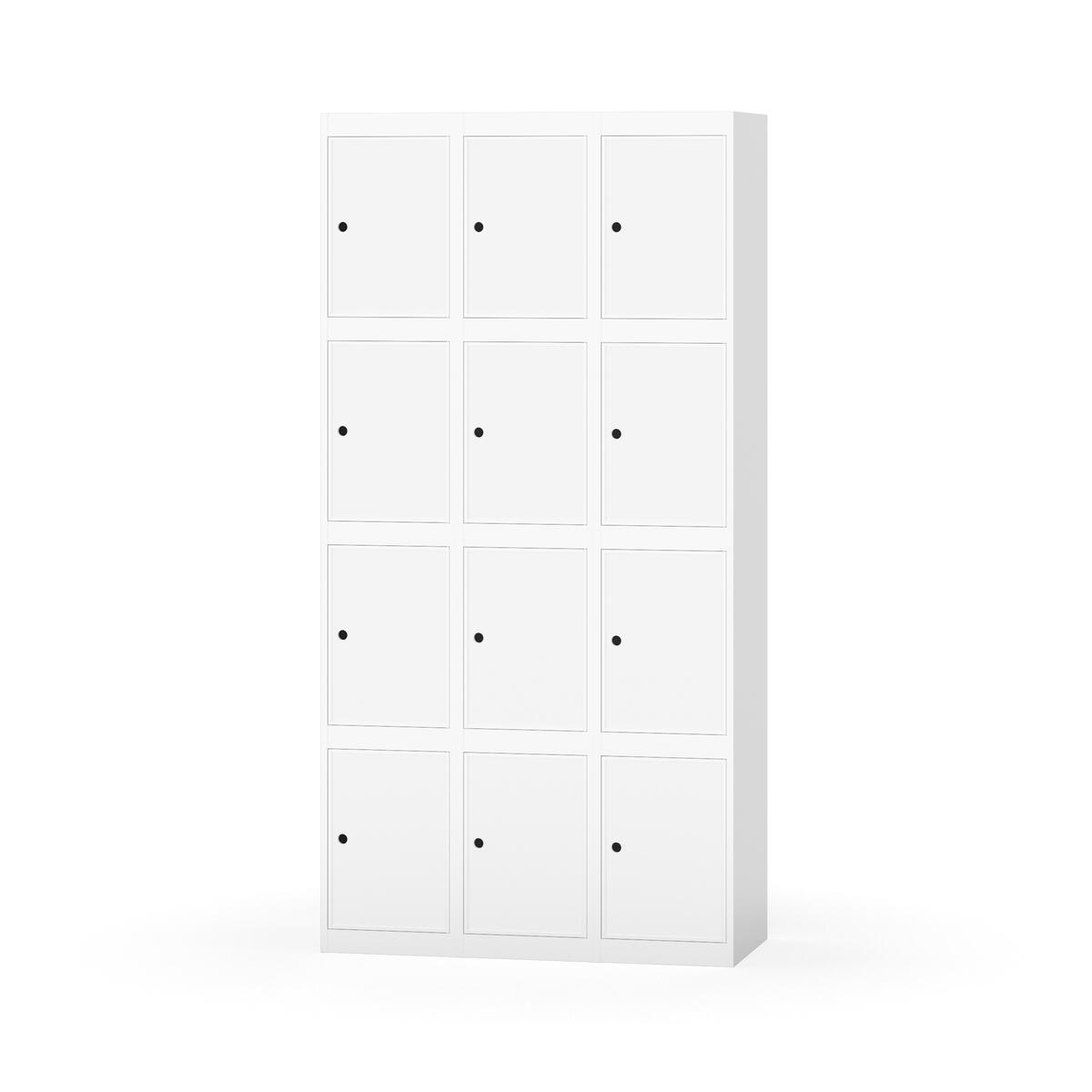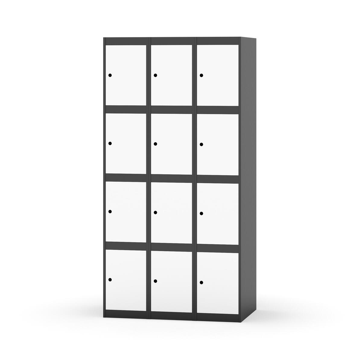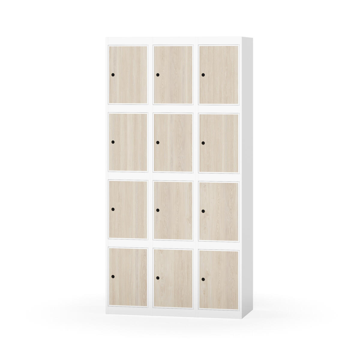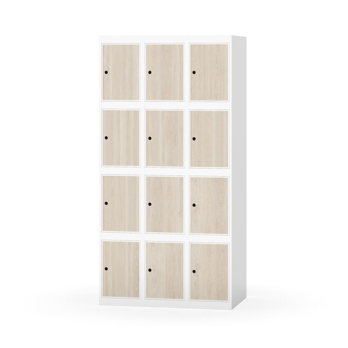 Elevskap tilpasset krevende skolemiljøer. Skap med helsveiset stamme med forsterket rammeprofil. Velg mellom metall- eller laminatdør. Metalldøren er utstyrt med dørstopper i stål og innfelt forsterkning rundt låsehullet, doble stålplater og en ekstra forsterkning mellom platene. Laminatdøren er innfelt i stålramme utstyrt med dørstopper i stål. Dørene kan åpnes 90 grader. Innredning: Ingen. Glatt gulvflate uten terskel. Ventilasjon gjennom hull i tak/bunnplate. - Vær oppmerksom på at lås/hasp for hengelås og sokkel/ben bestilles på egne artikkelnummer. Lås/hasp for hengelås vil da være montert på skap ved levering. Valgt ben/sokkel monteres på stedet.