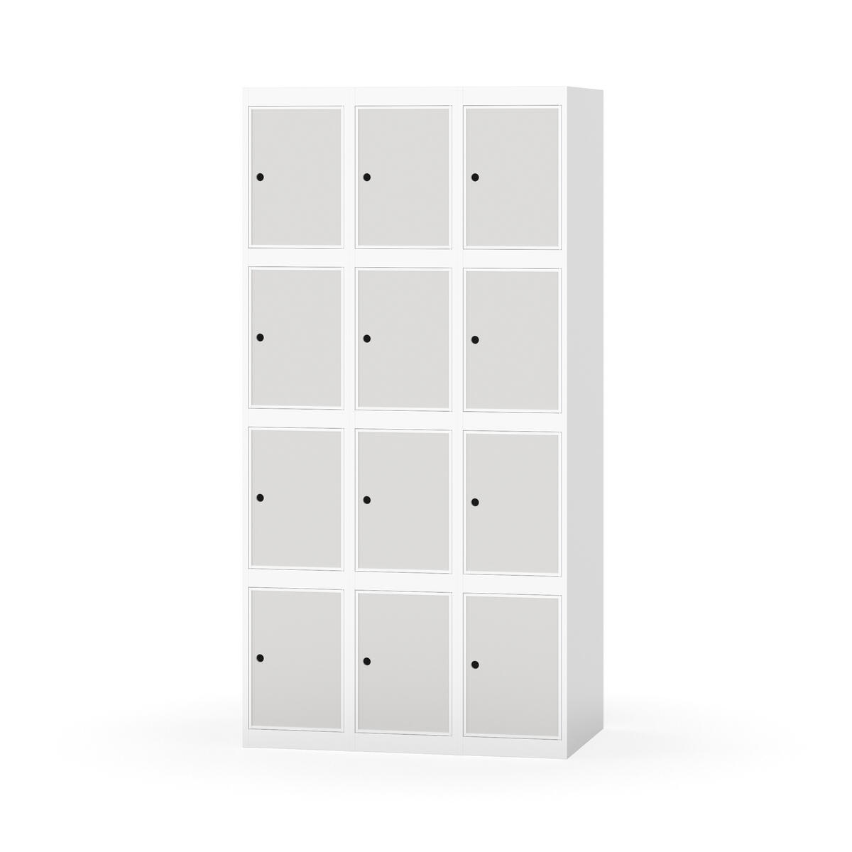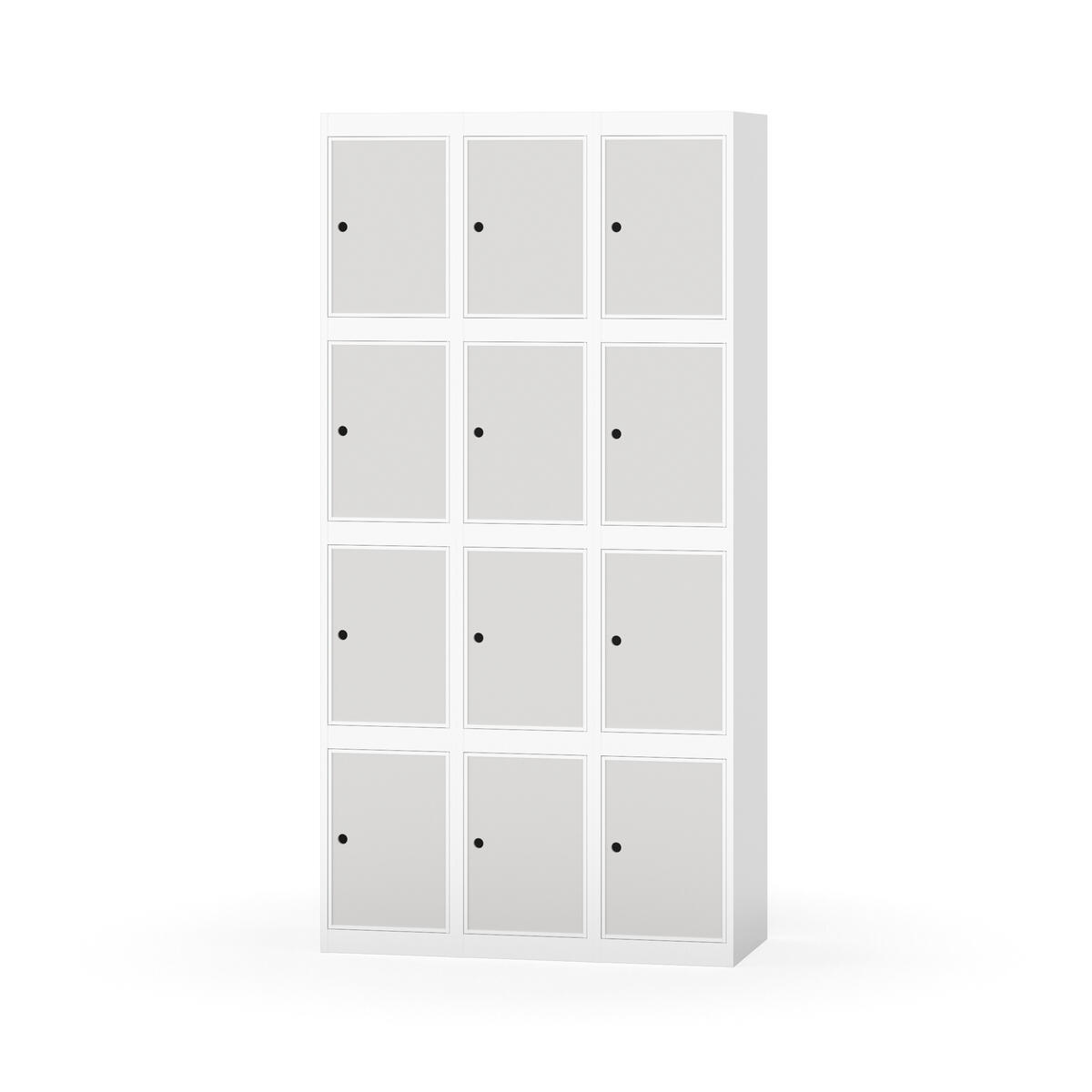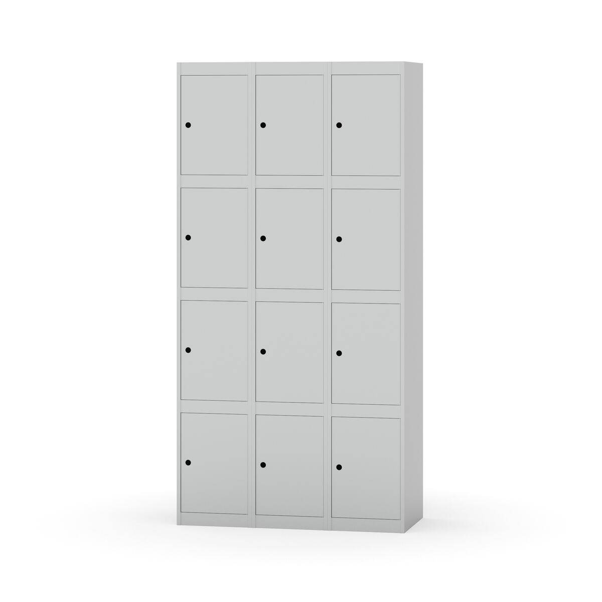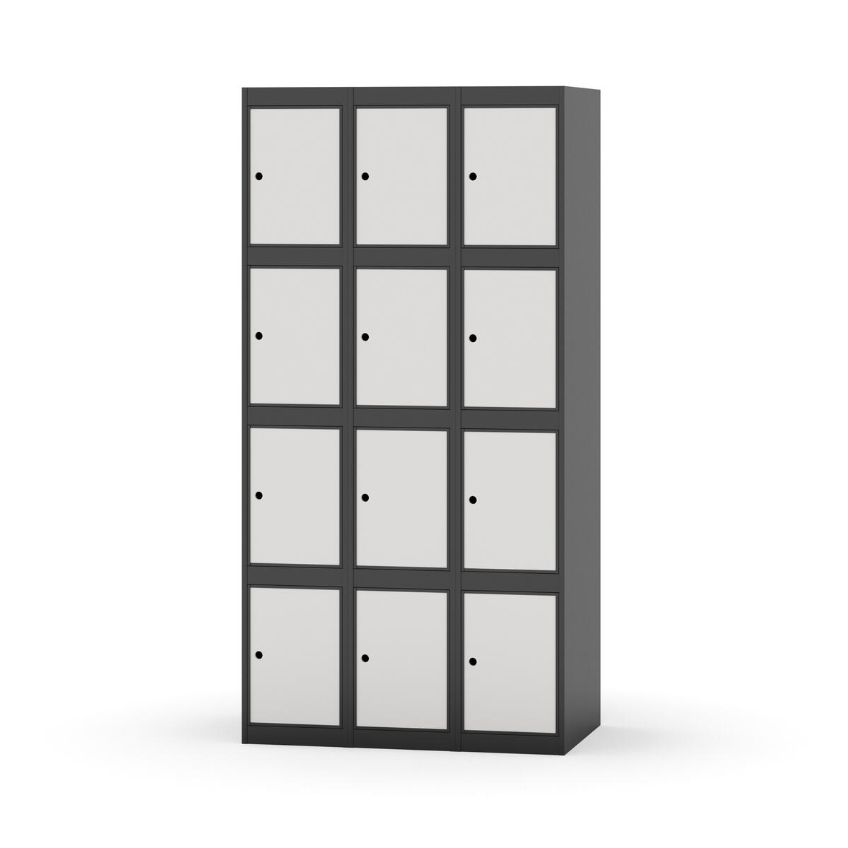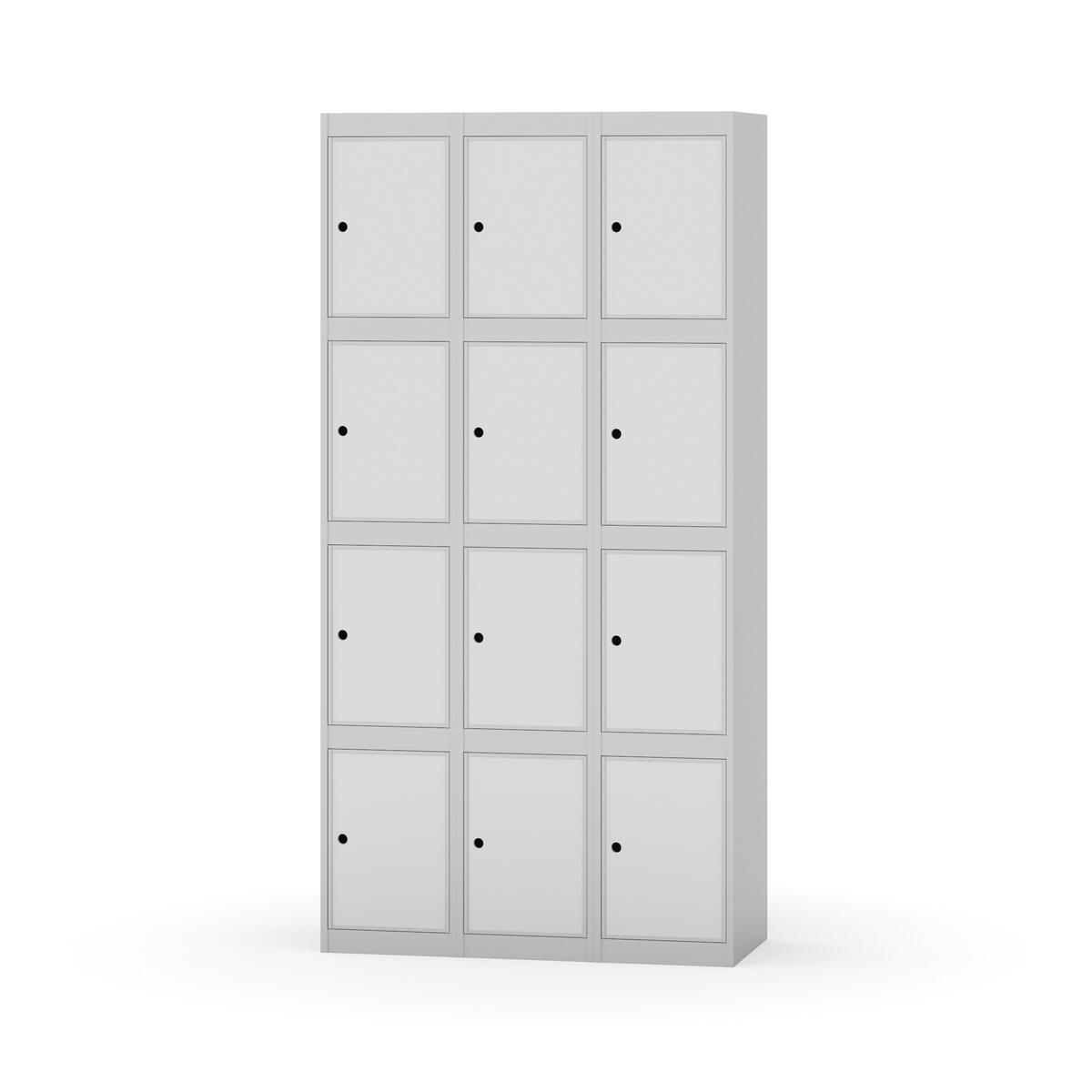 Elevskap tilpasset krevende skolemiljøer. Skap med helsveiset stamme med forsterket rammeprofil. Velg mellom metall- eller laminatdør. Metalldøren er utstyrt med dørstopper i stål og innfelt forsterkning rundt låsehullet, doble stålplater og en ekstra forsterkning mellom platene. Laminatdøren er innfelt i stålramme utstyrt med dørstopper i stål. Dørene kan åpnes 90 grader. Innredning: Ingen. Glatt gulvflate uten terskel. Ventilasjon gjennom hull i tak/bunnplate. - Vær oppmerksom på at lås/hasp for hengelås og sokkel/ben bestilles på egne artikkelnummer. Lås/hasp for hengelås vil da være montert på skap ved levering. Valgt ben/sokkel monteres på stedet.