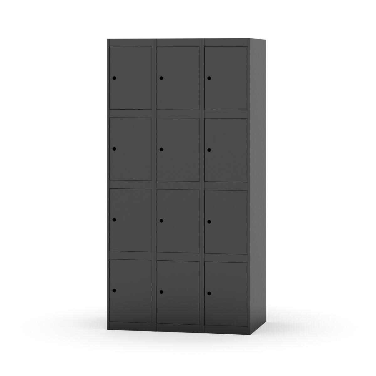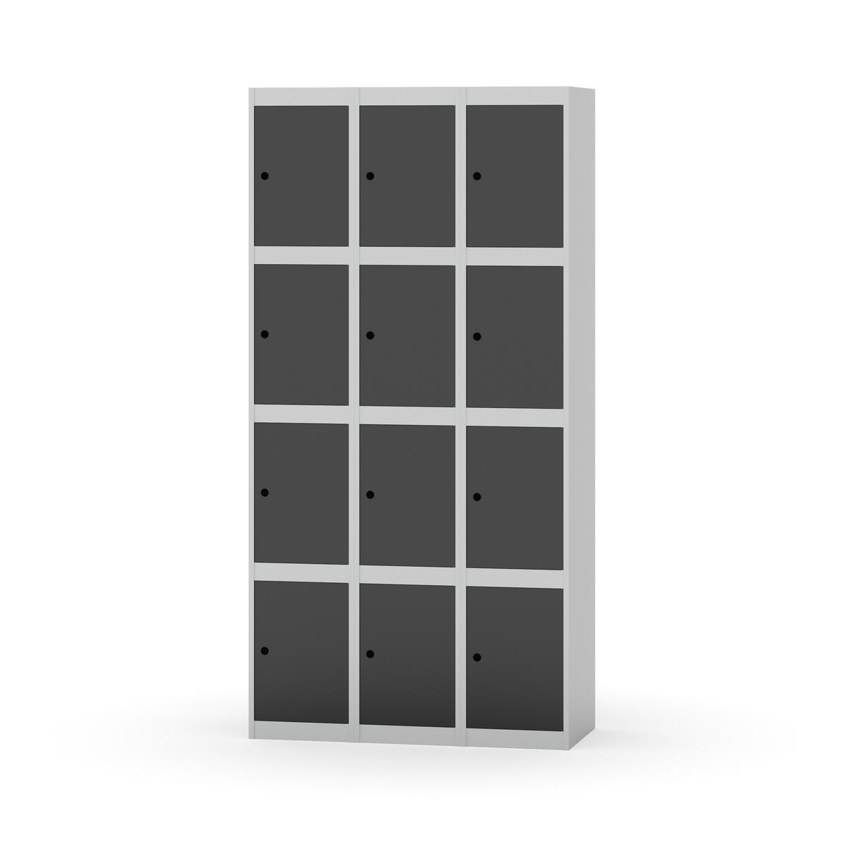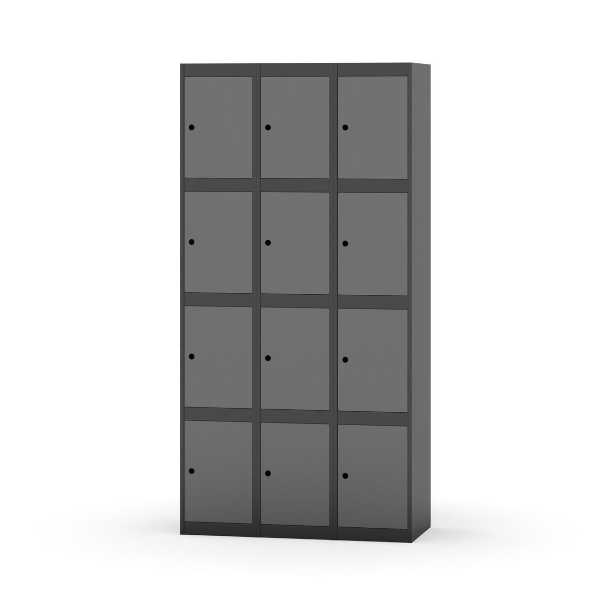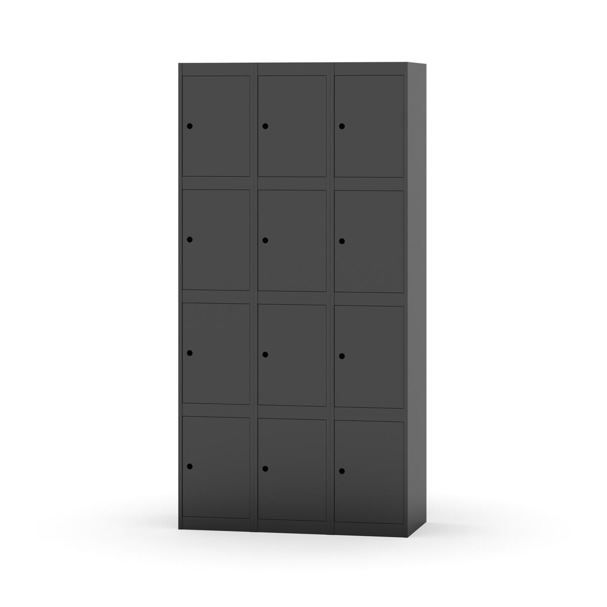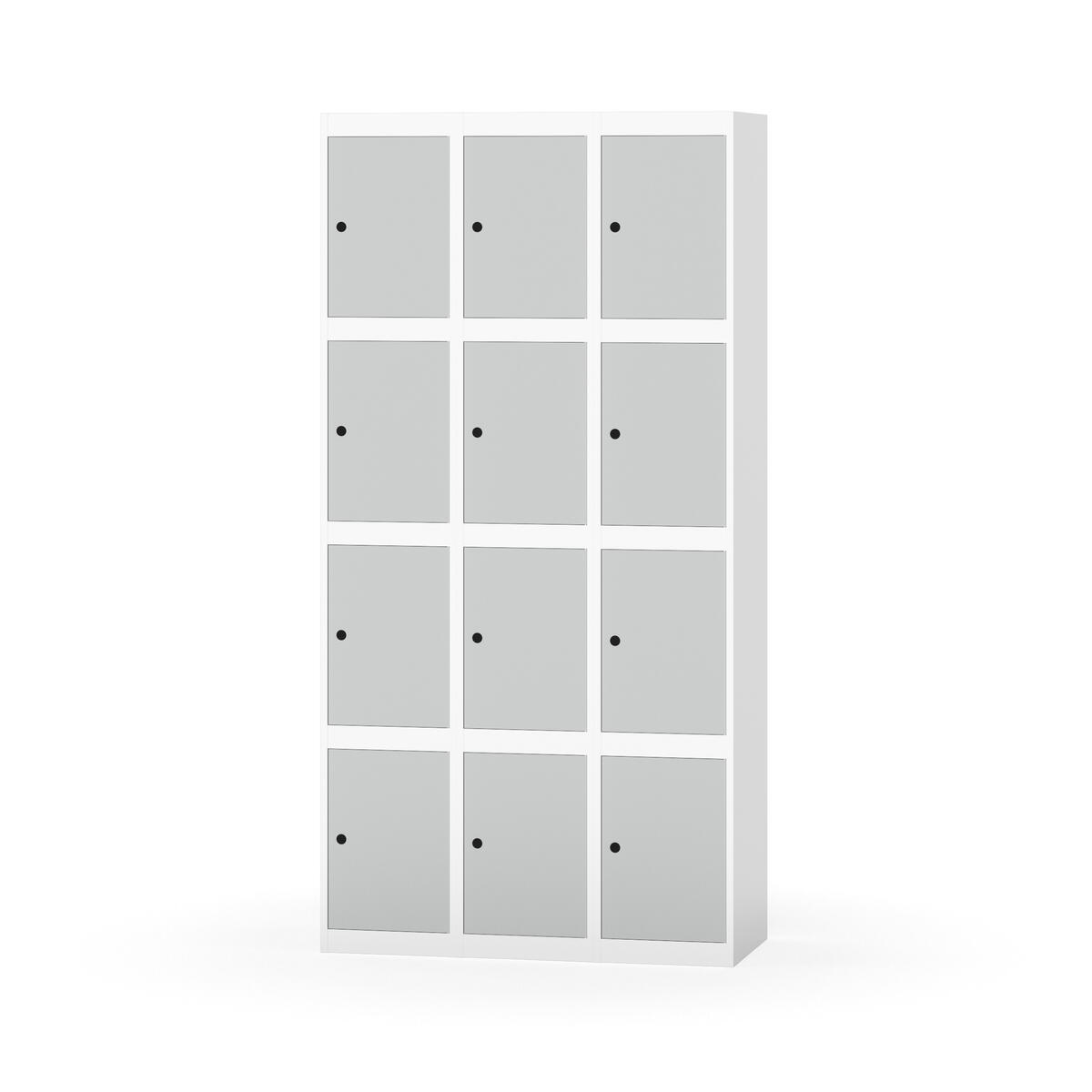 Elevskap tilpasset krevende skolemiljøer. Skap med helsveiset stamme med forsterket rammeprofil. Velg mellom metall- eller laminatdør. Metalldøren er utstyrt med dørstopper i stål og innfelt forsterkning rundt låsehullet, doble stålplater og en ekstra forsterkning mellom platene. Laminatdøren er innfelt i stålramme utstyrt med dørstopper i stål. Dørene kan åpnes 90 grader. Innredning: Ingen. Glatt gulvflate uten terskel. Ventilasjon gjennom hull i tak/bunnplate. - Vær oppmerksom på at lås/hasp for hengelås og sokkel/ben bestilles på egne artikkelnummer. Lås/hasp for hengelås vil da være montert på skap ved levering. Valgt ben/sokkel monteres på stedet.