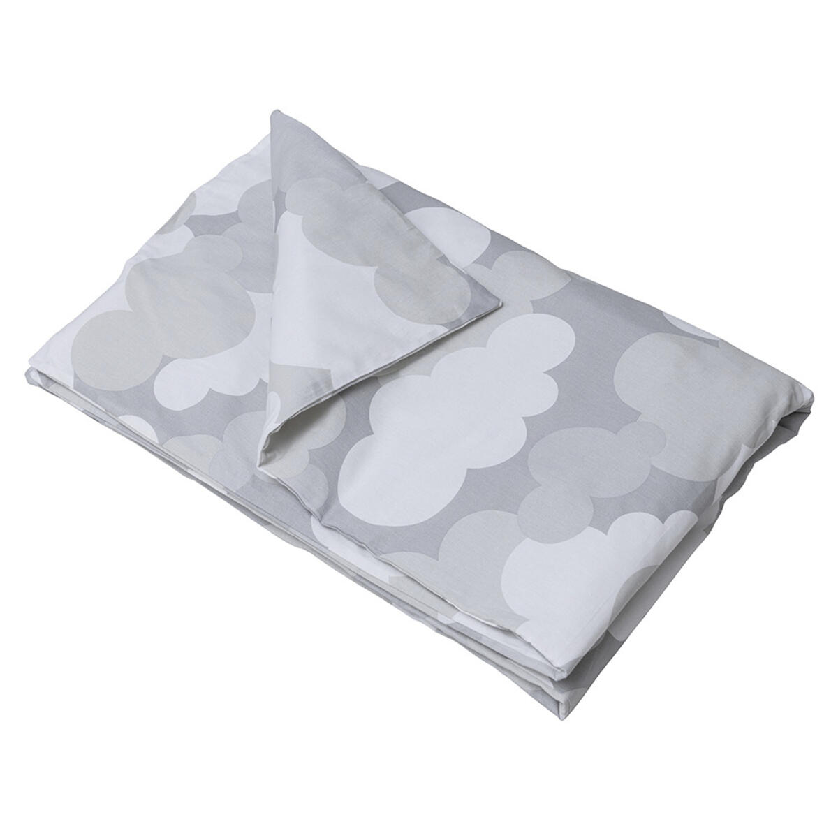 Inneholder: 1 putetrekk i glatt bomull, 1 laken og 1 teppe i jersey, 1 pute med polyesterfyll. Fargekoden beskriver laken og putetrekk. Teppet er stripete. Ikke tørketrommel.