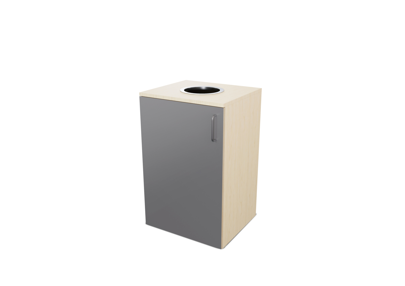 Miljøstasjon i laminat med dør og håndtak. Topplate med Ø20 cm hull for avfall. Velg laminat eller høytrykkslaminat på døren. Lag egne komninasjoner med flere skap og kanskje i forskjellige farger. Se våre Norden sekkevogner som passer i skapet.