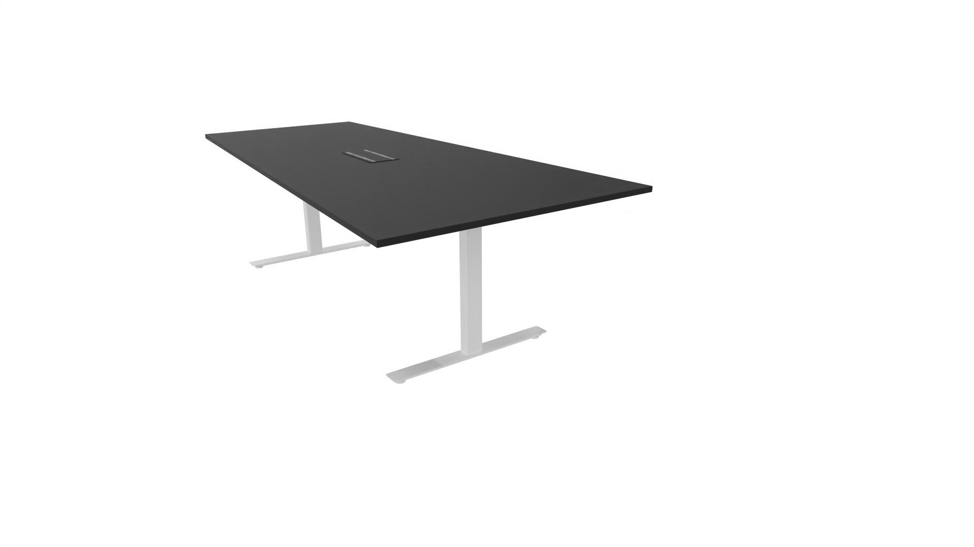 Et konferansebord med rektangulær plate, rett kant. Kjerne av sponplate dekket med laminat og ABS-kant. Understell T-stativ med 2 ben, fotlengde 90 cm. I tillegg til standard laminat, er bordet også tilgjengelig med et svart nanolaminat som har en overflate som er matt og motstandsdyktig mot fingeravtrykk. Som et tilvalg kan du også velge å ha en mediaboks (32x15 cm) innfelt i bordet. Medieboksen består av 2x 230V stikkontakter, 1x USB og 1x HDMI.