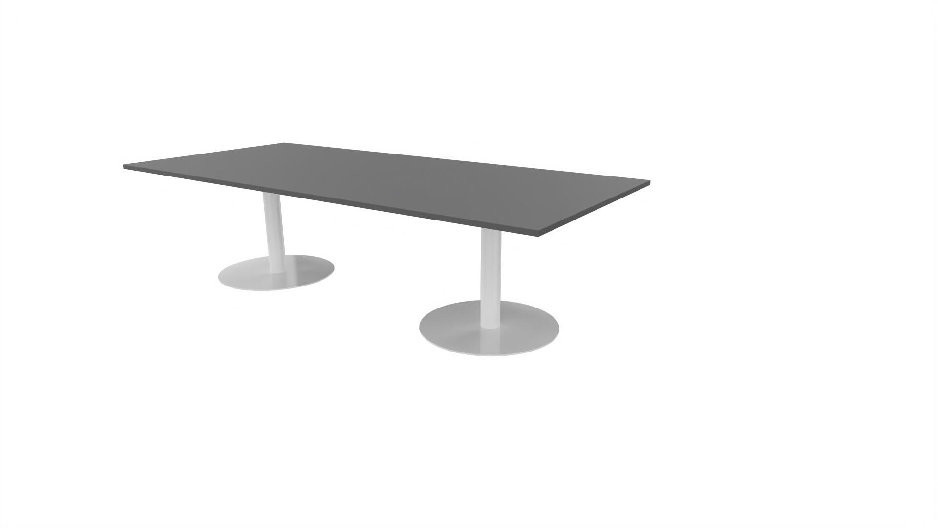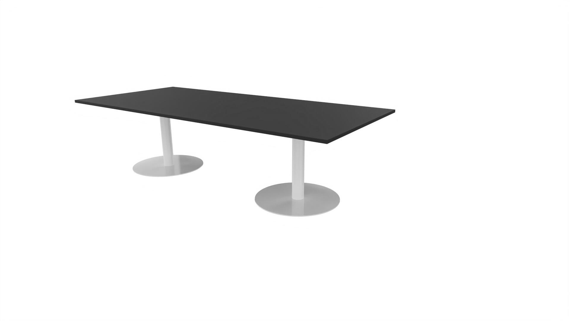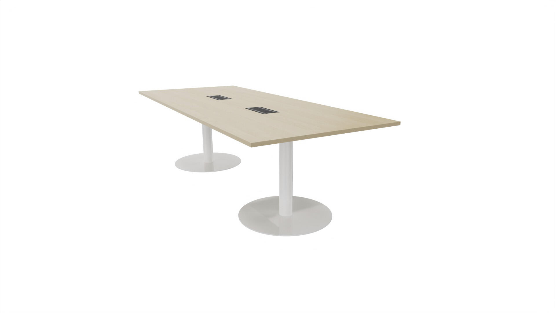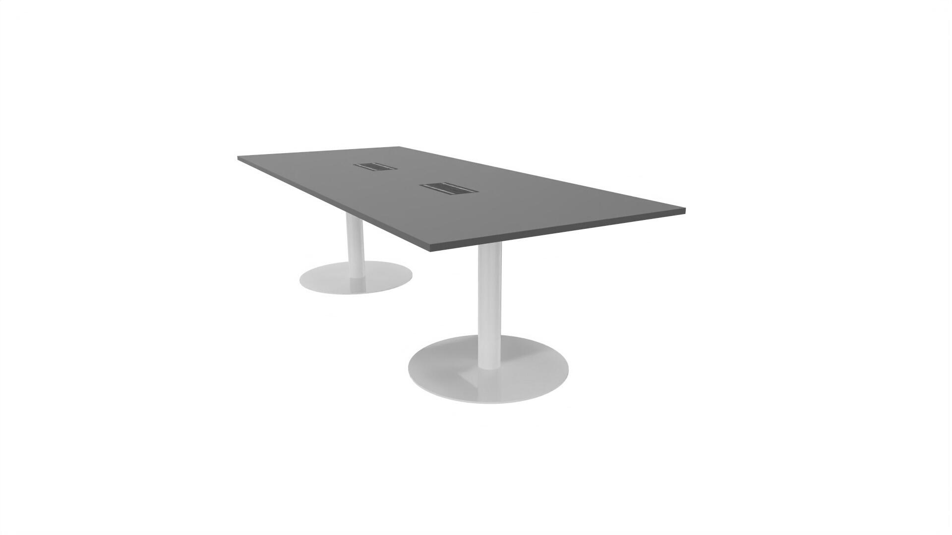 Et konferansebord med rektangulær bordplate, rett kant. Kjerne av sponplate dekket med laminat og ABS-kant. Søyleunderstell med 2 ben, søylediameter Ø10,2 cm, fotdiameter Ø72 cm. I tillegg til standard laminat, er bordet også tilgjengelig med et svart nanolaminat som har en overflate som er matt og motstandsdyktig mot fingeravtrykk. Som et tilvalg kan du velge å ha to mediabokser (32x15 cm) innfelt i bordet. Hver medieboks består av 2x 230V stikkontakter, 1x USB og 1x HDMI.