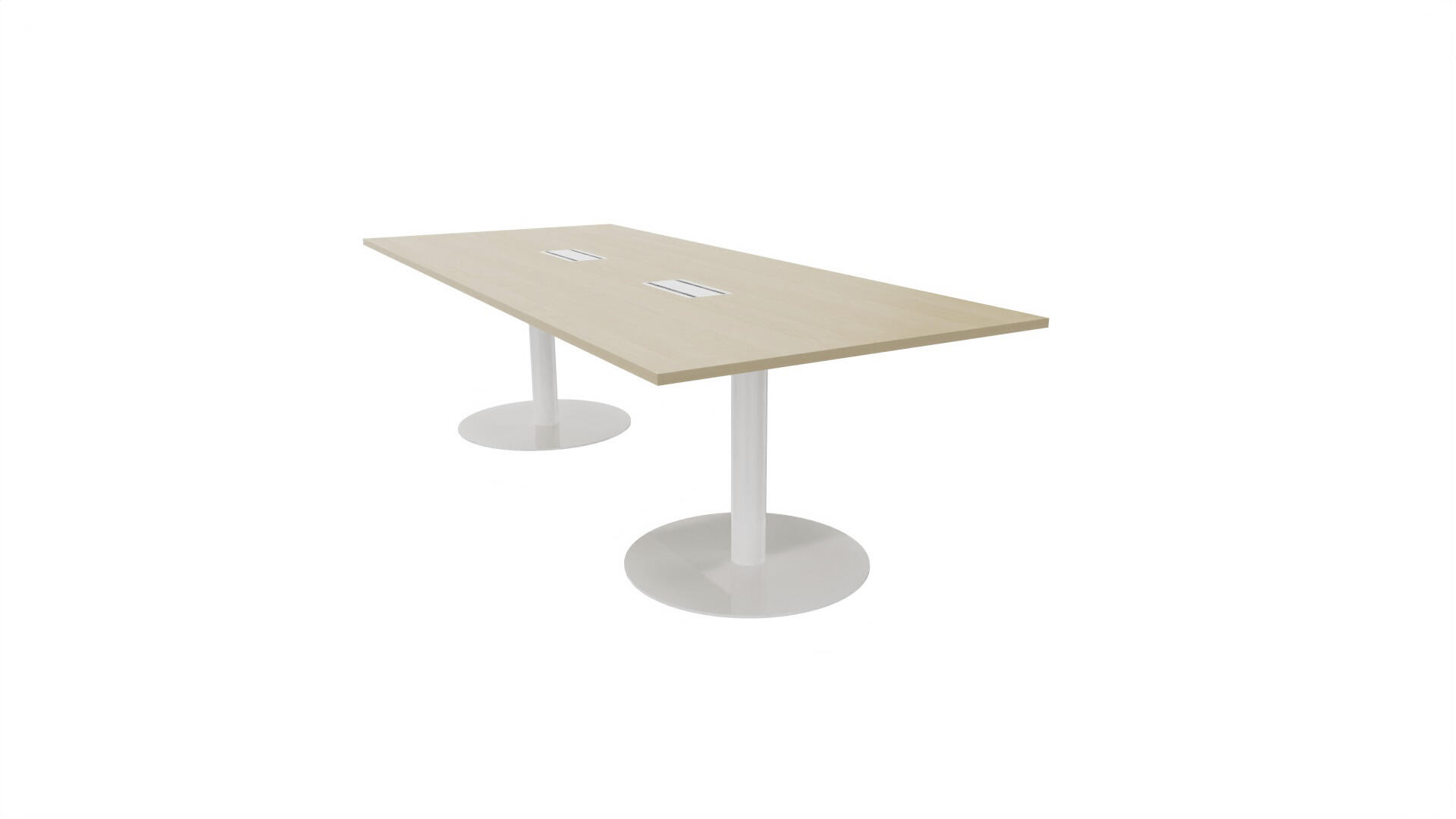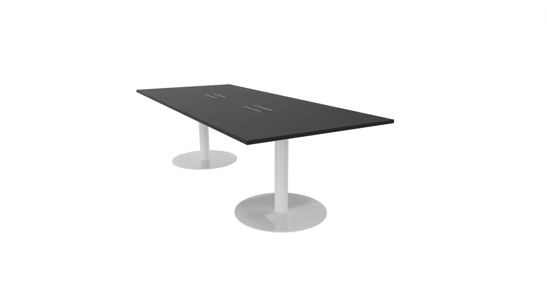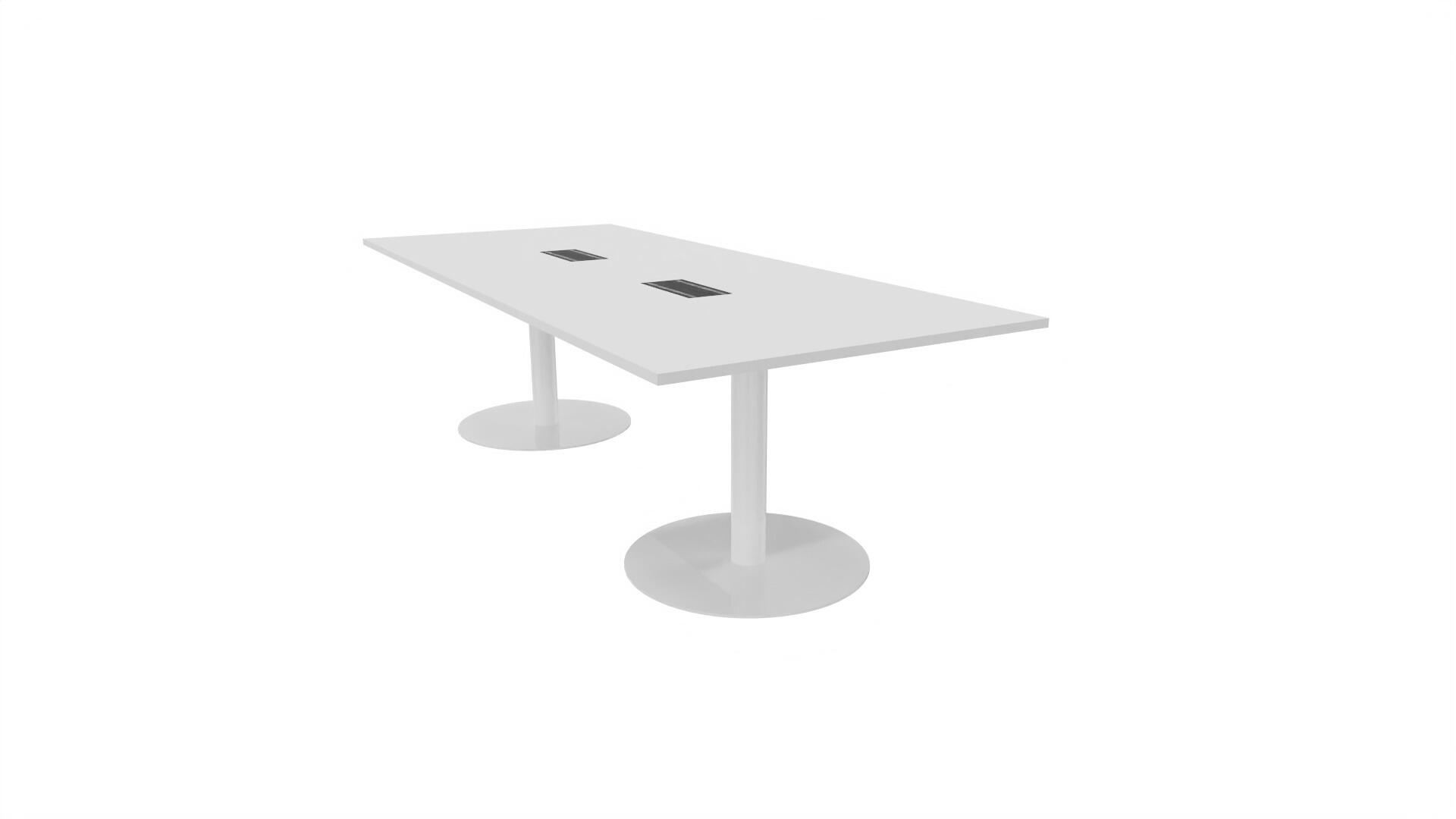 Et konferansebord med rektangulær bordplate, rett kant. Kjerne av sponplate dekket med laminat og ABS-kant. Søyleunderstell med 2 ben, søylediameter Ø10,2 cm, fotdiameter Ø72 cm. I tillegg til standard laminat, er bordet også tilgjengelig med et svart nanolaminat som har en overflate som er matt og motstandsdyktig mot fingeravtrykk. Som et tilvalg kan du velge å ha to mediabokser (32x15 cm) innfelt i bordet. Hver medieboks består av 2x 230V stikkontakter, 1x USB og 1x HDMI.