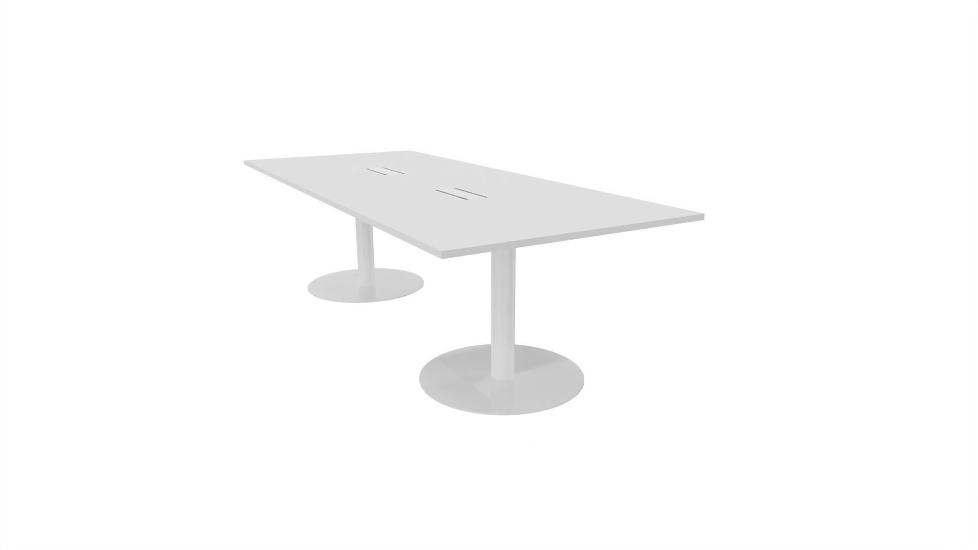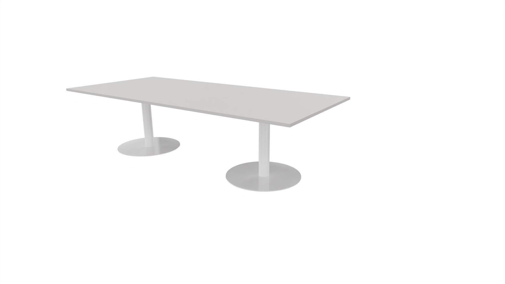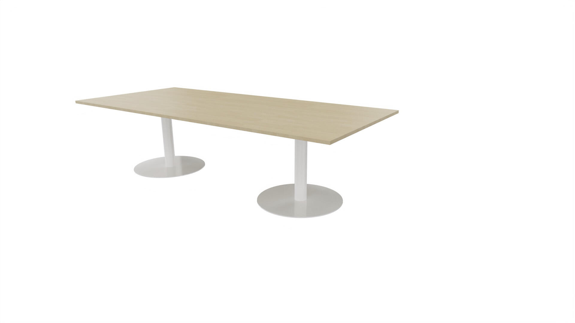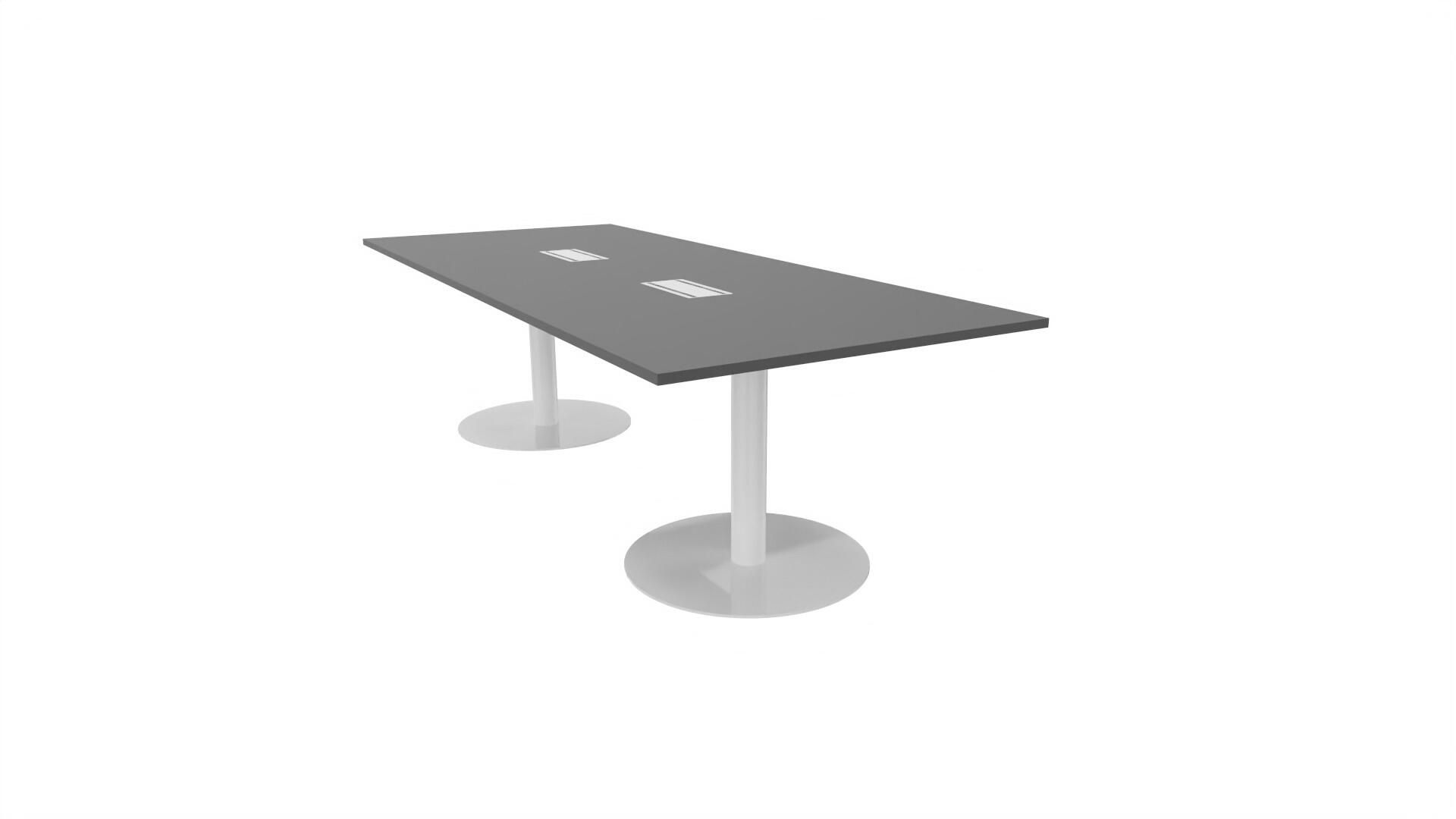 Et konferansebord med rektangulær bordplate, rett kant. Kjerne av sponplate dekket med laminat og ABS-kant. Søyleunderstell med 2 ben, søylediameter Ø10,2 cm, fotdiameter Ø72 cm. I tillegg til standard laminat, er bordet også tilgjengelig med et svart nanolaminat som har en overflate som er matt og motstandsdyktig mot fingeravtrykk. Som et tilvalg kan du velge å ha to mediabokser (32x15 cm) innfelt i bordet. Hver medieboks består av 2x 230V stikkontakter, 1x USB og 1x HDMI.