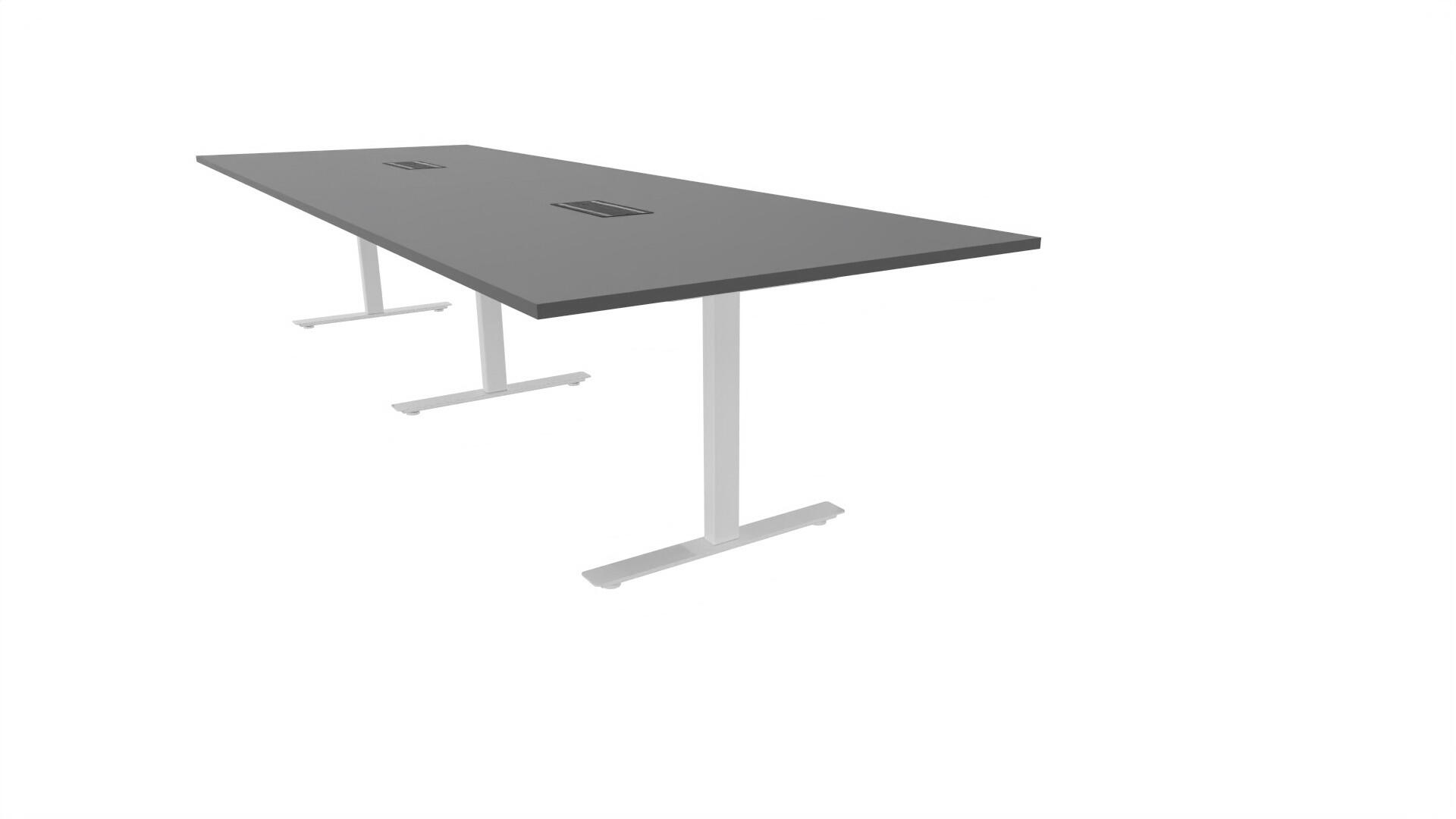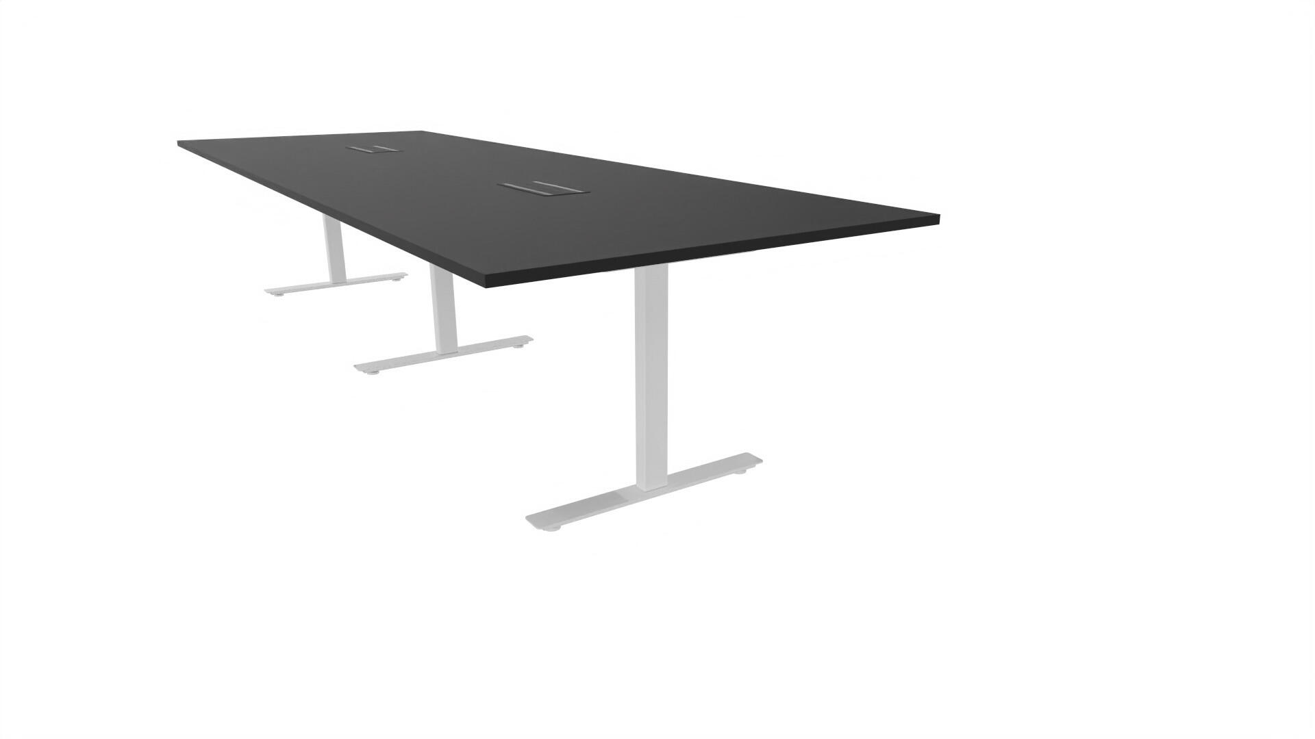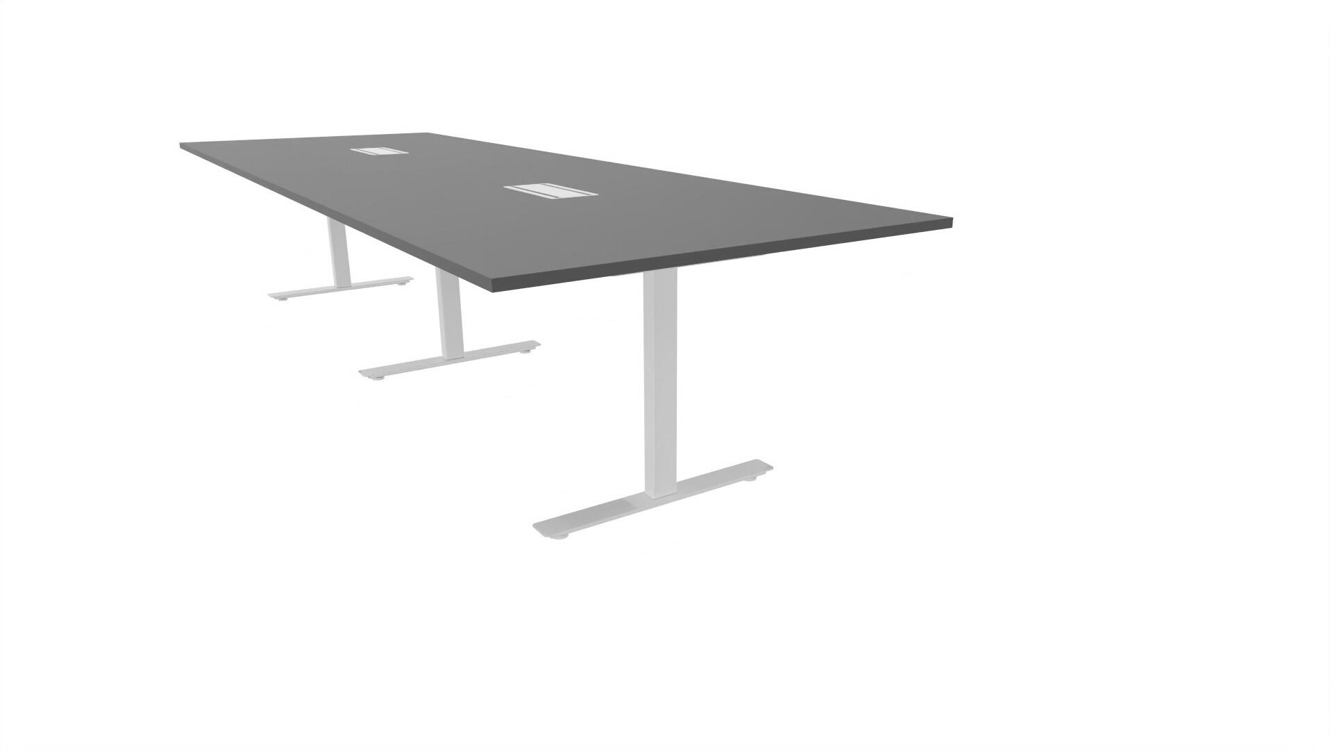 Et konferansebord med rektangulær plate, rett kant. Kjerne av sponplate dekket med laminat og ABS-kant. Understell T-stativ med 3 ben, fotlengde 90 cm. I tillegg til standard laminat, er bordet også tilgjengelig med et svart nanolaminat som har en overflate som er matt og motstandsdyktig mot fingeravtrykk. Som et tilvalg kan du også velge å ha to mediabokser (32x15 cm) innfelt i bordet. Hver medieboks består av 4x 230V stikkontakter, 2x USB og 2x HDMI.