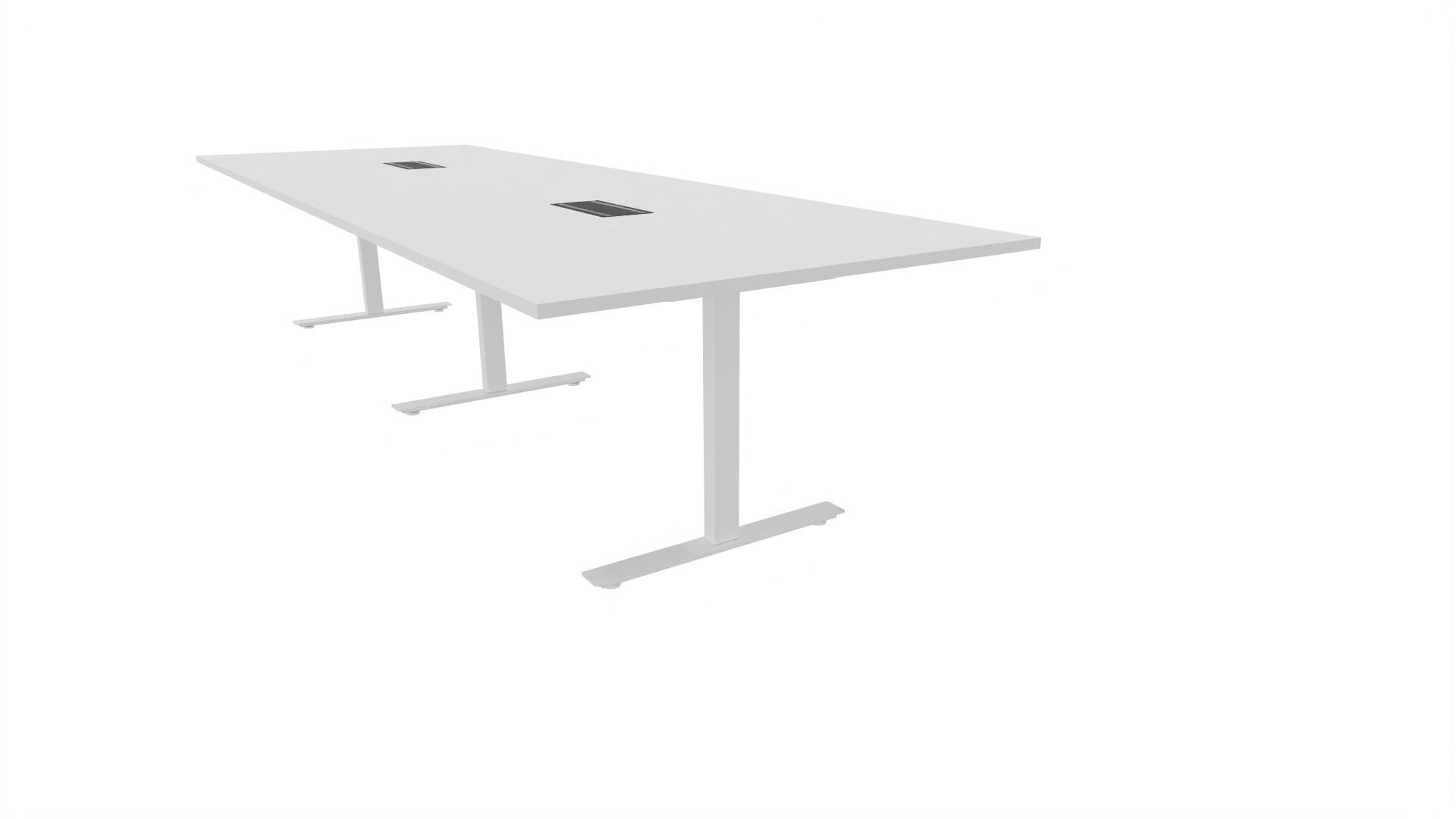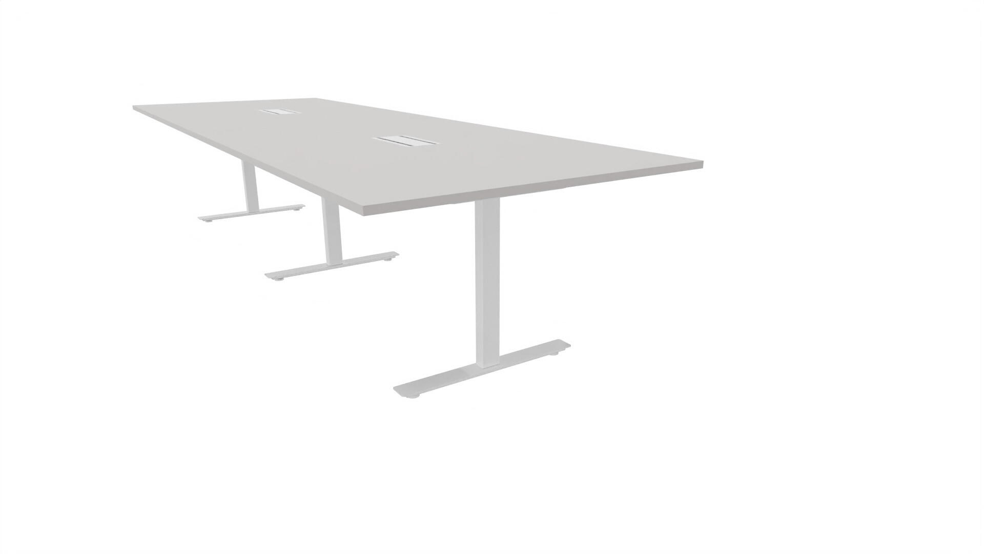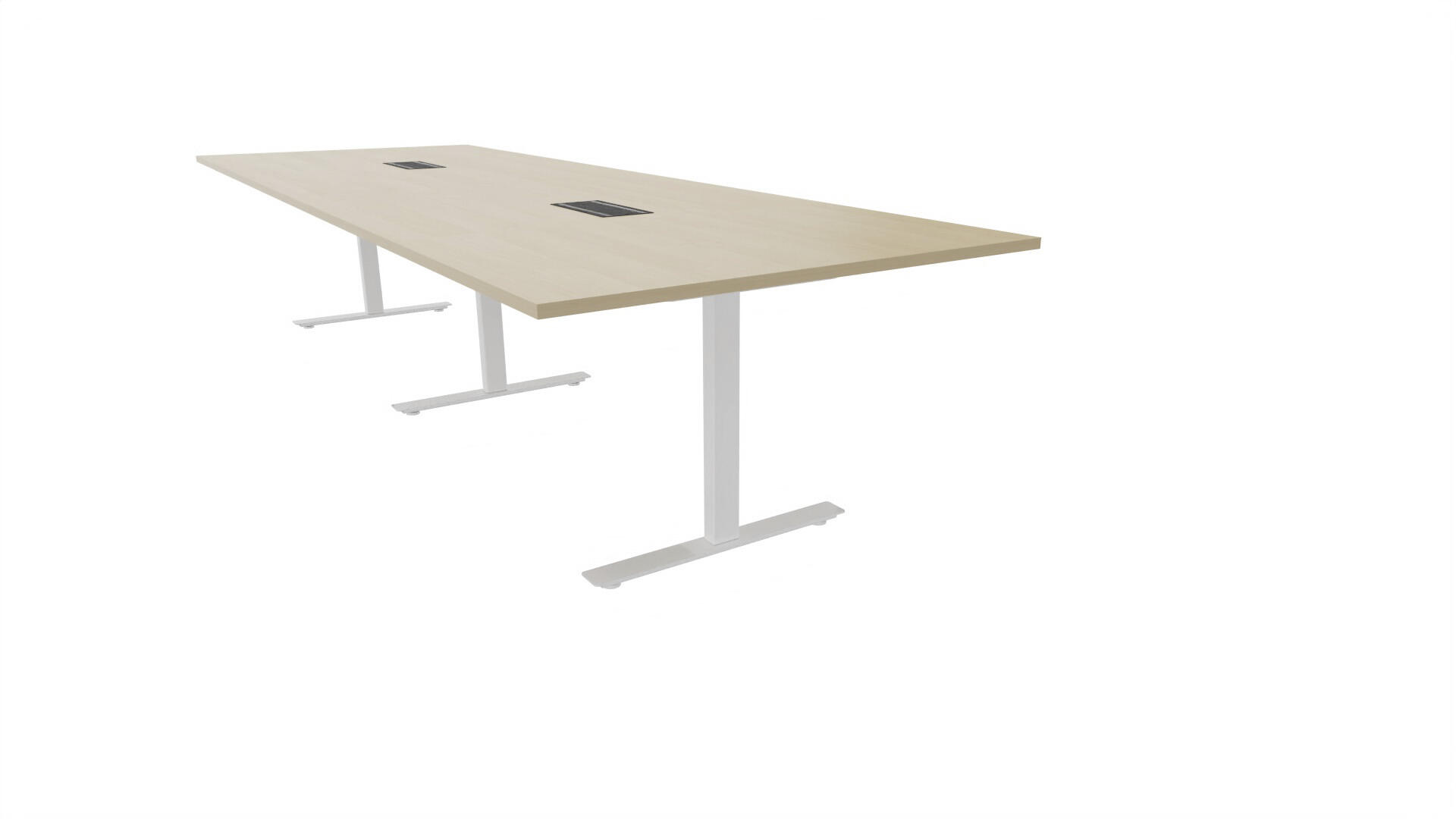 Et konferansebord med rektangulær plate, rett kant. Kjerne av sponplate dekket med laminat og ABS-kant. Understell T-stativ med 3 ben, fotlengde 90 cm. I tillegg til standard laminat, er bordet også tilgjengelig med et svart nanolaminat som har en overflate som er matt og motstandsdyktig mot fingeravtrykk. Som et tilvalg kan du også velge å ha to mediabokser (32x15 cm) innfelt i bordet. Hver medieboks består av 4x 230V stikkontakter, 2x USB og 2x HDMI.