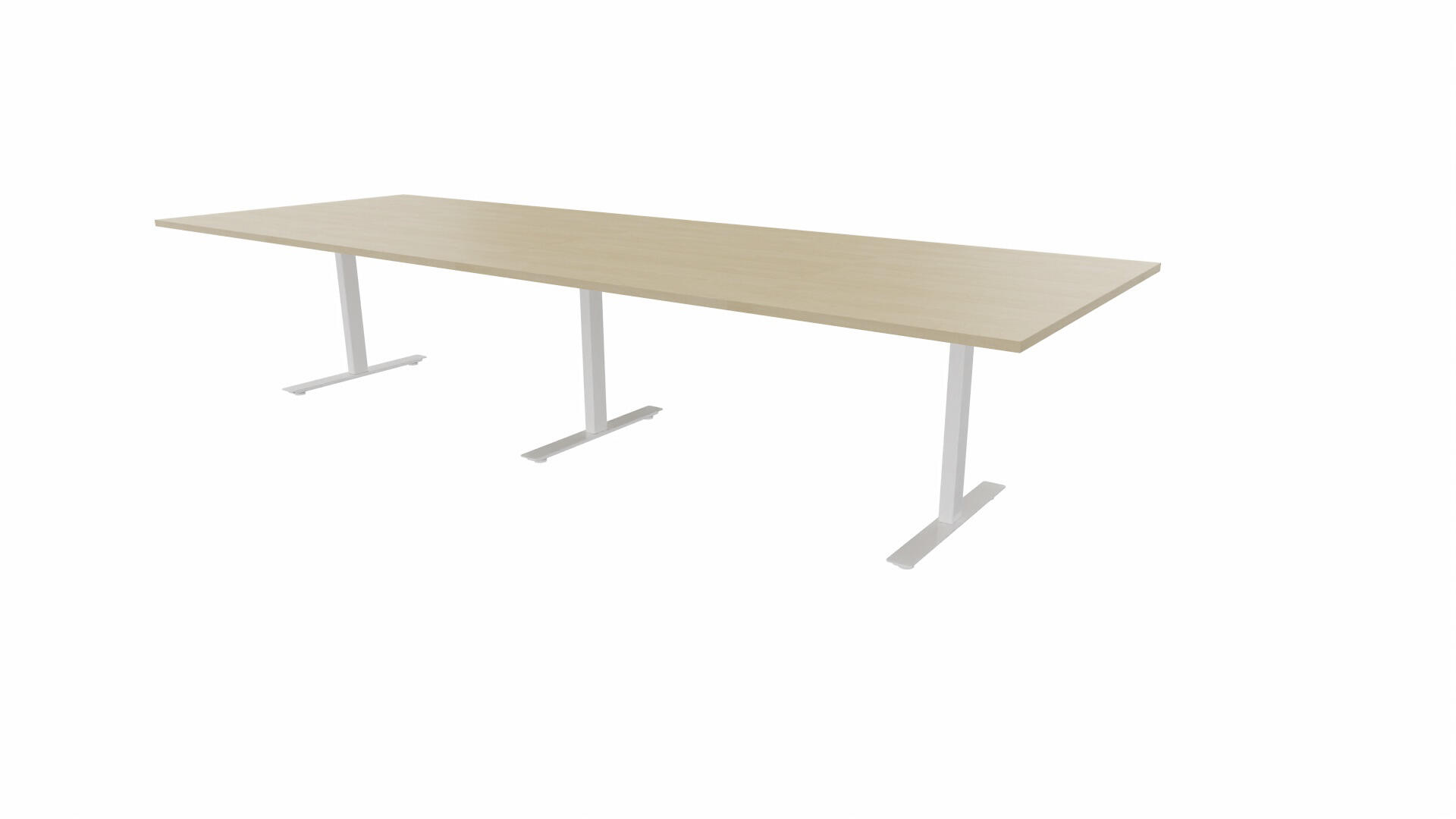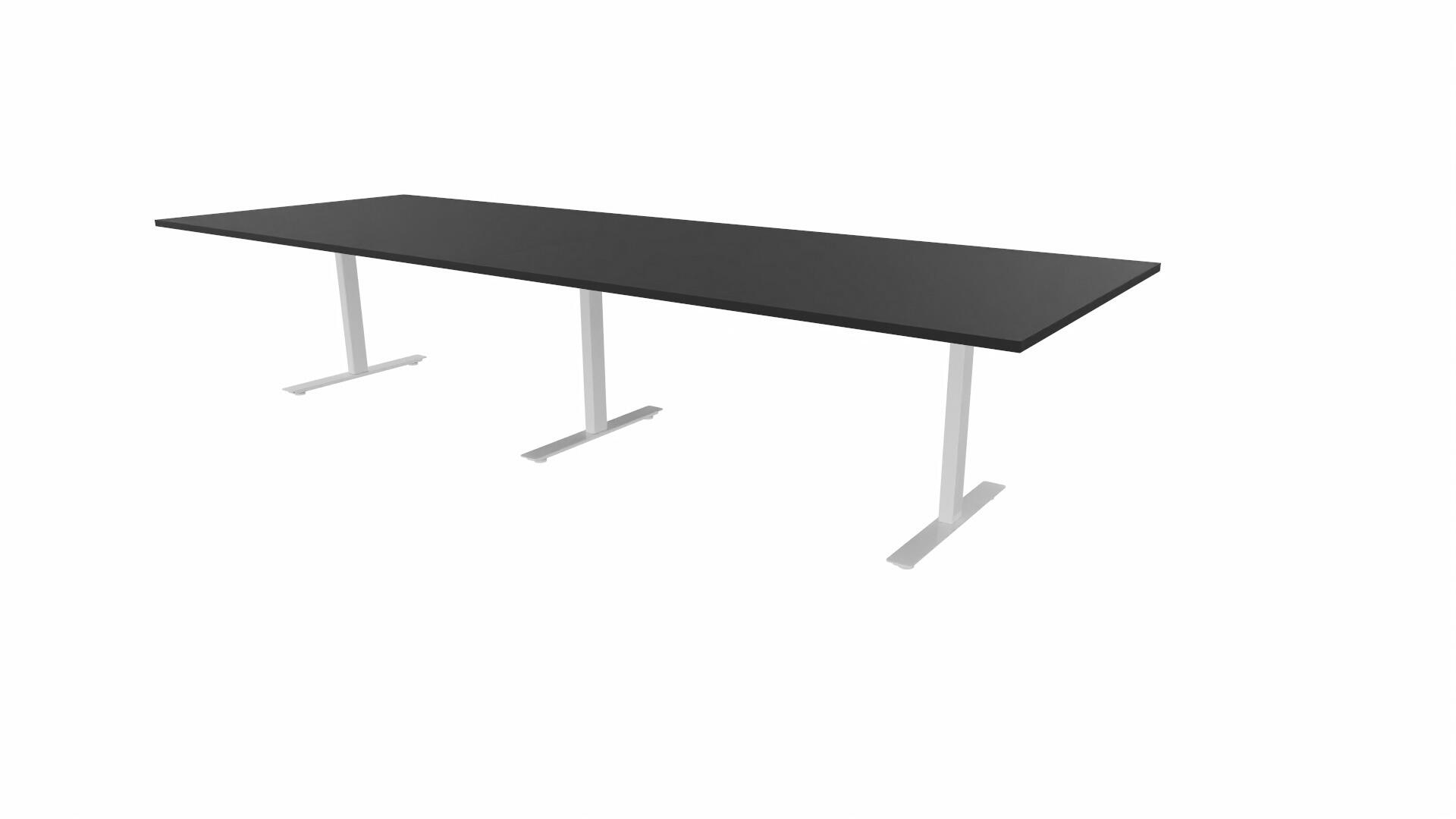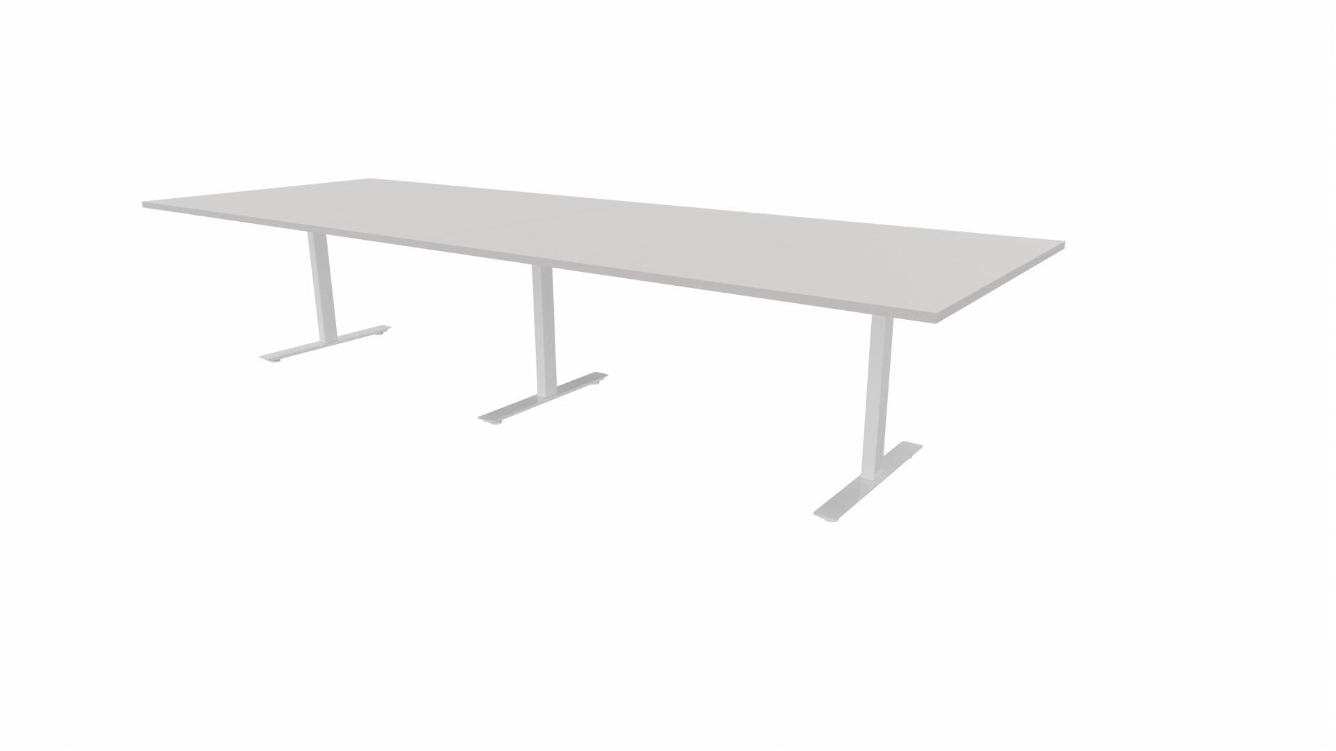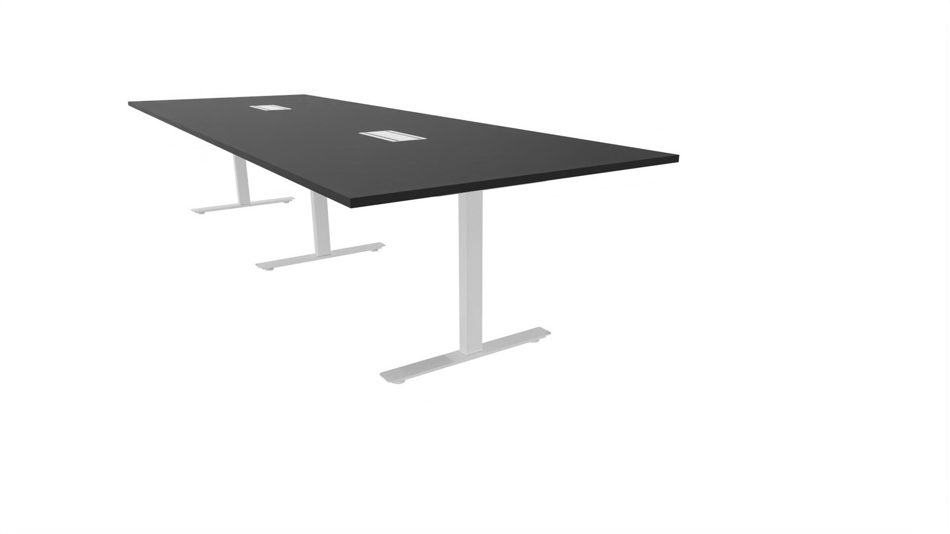 Et konferansebord med rektangulær plate, rett kant. Kjerne av sponplate dekket med laminat og ABS-kant. Understell T-stativ med 3 ben, fotlengde 90 cm. I tillegg til standard laminat, er bordet også tilgjengelig med et svart nanolaminat som har en overflate som er matt og motstandsdyktig mot fingeravtrykk. Som et tilvalg kan du også velge å ha to mediabokser (32x15 cm) innfelt i bordet. Hver medieboks består av 2x 230V stikkontakter, 1x USB og 1x HDMI.