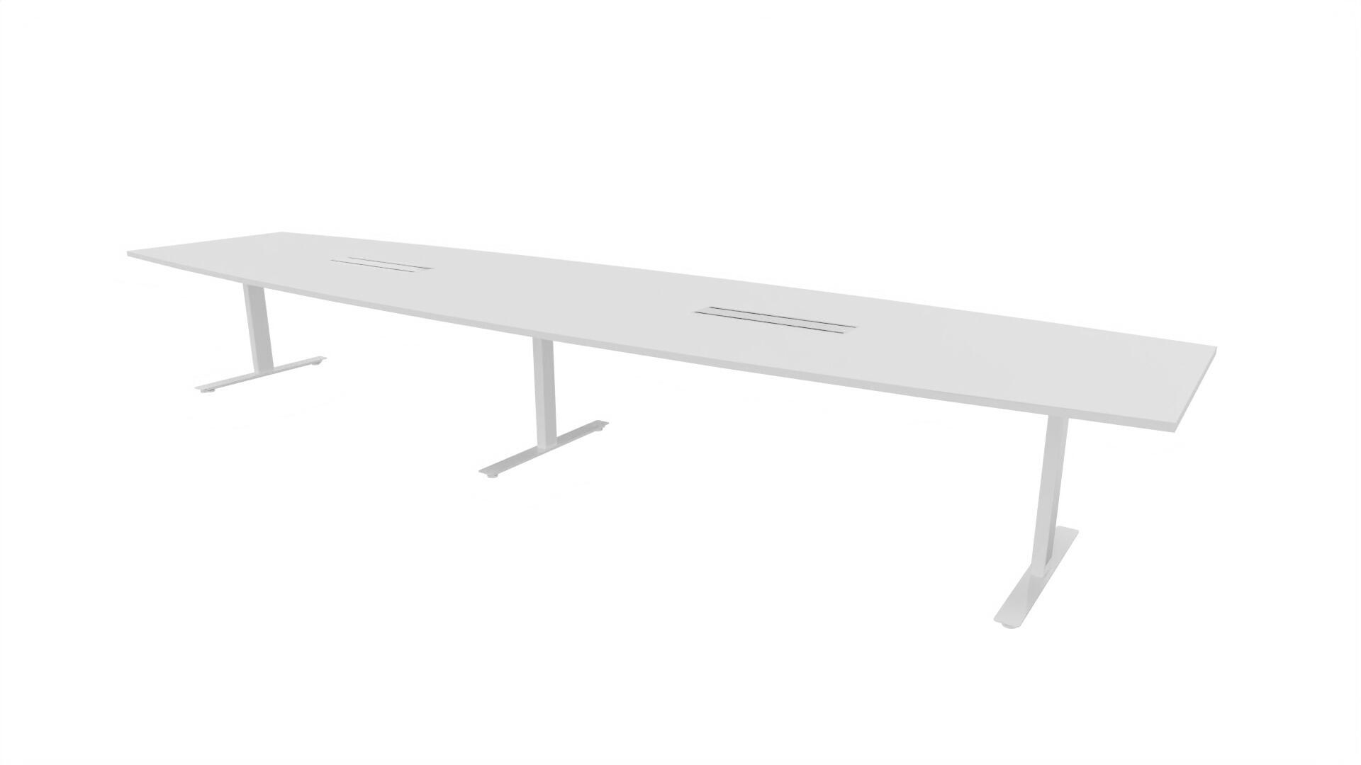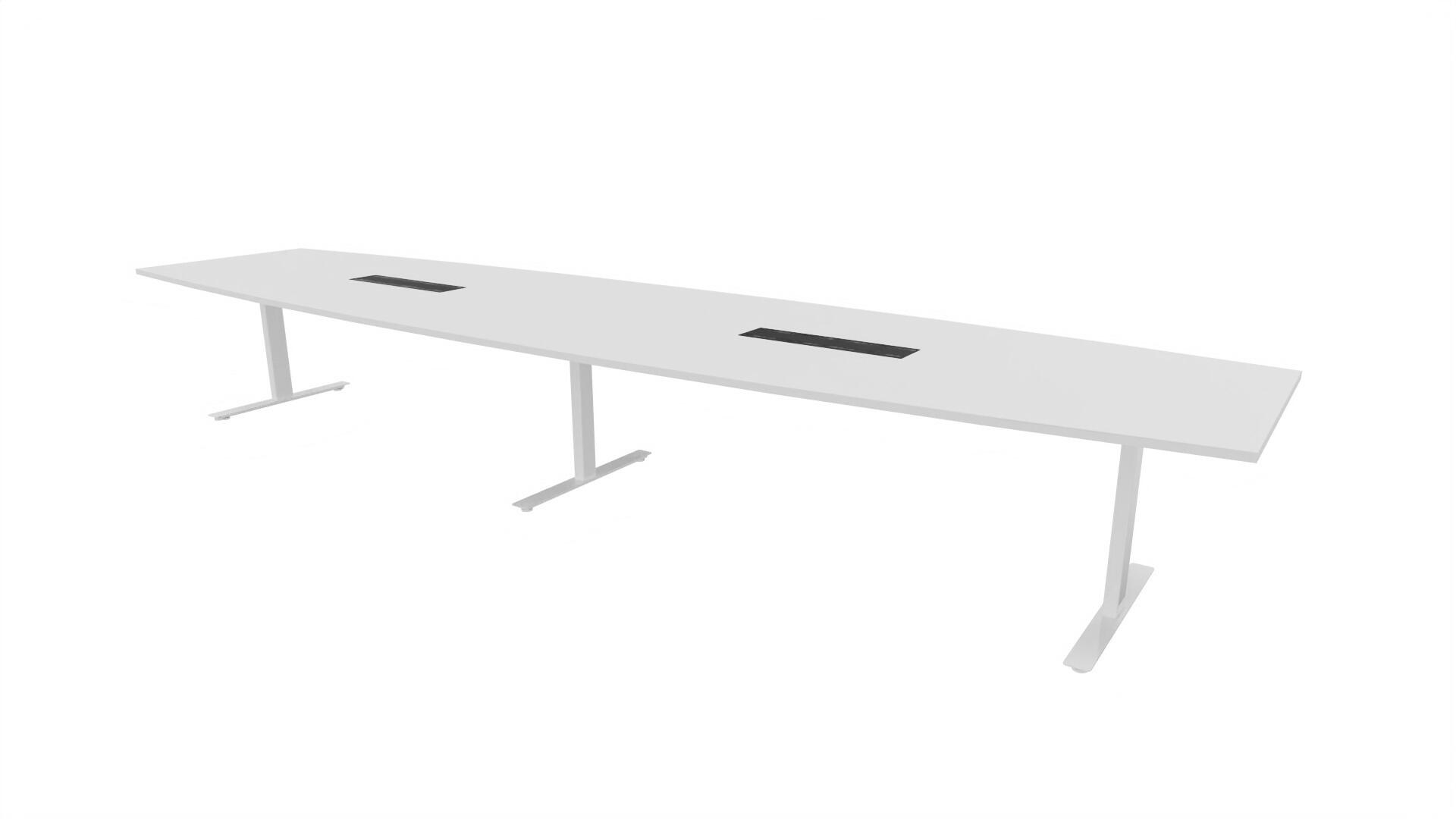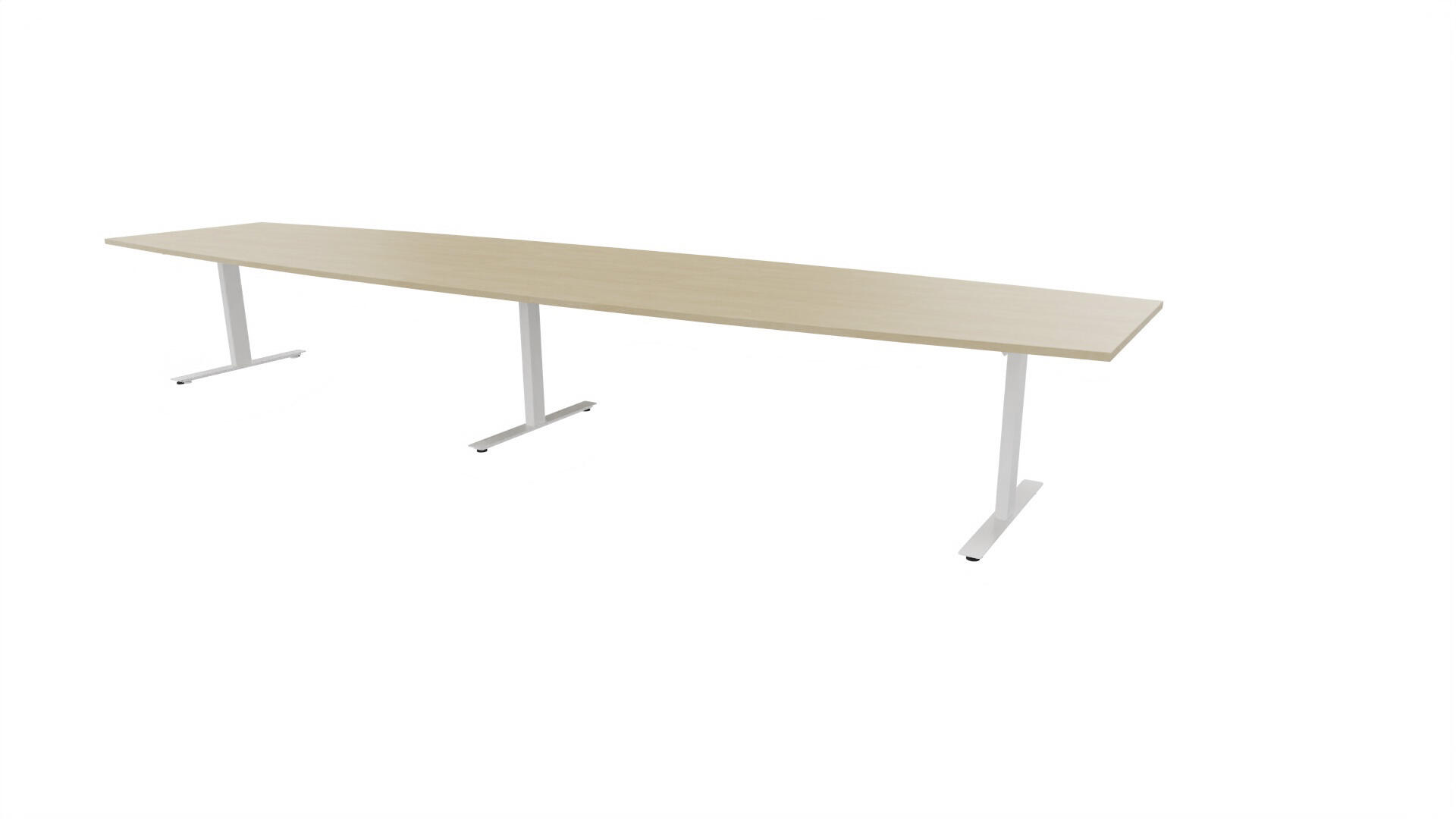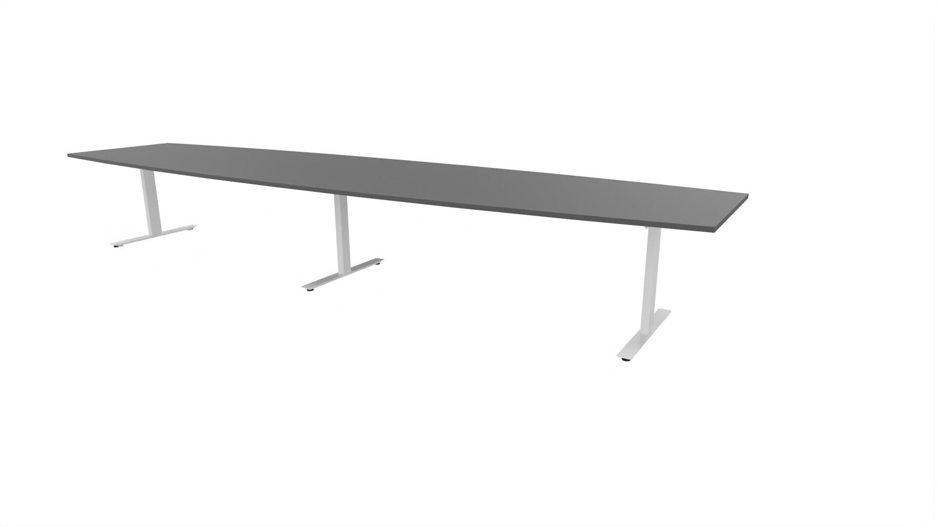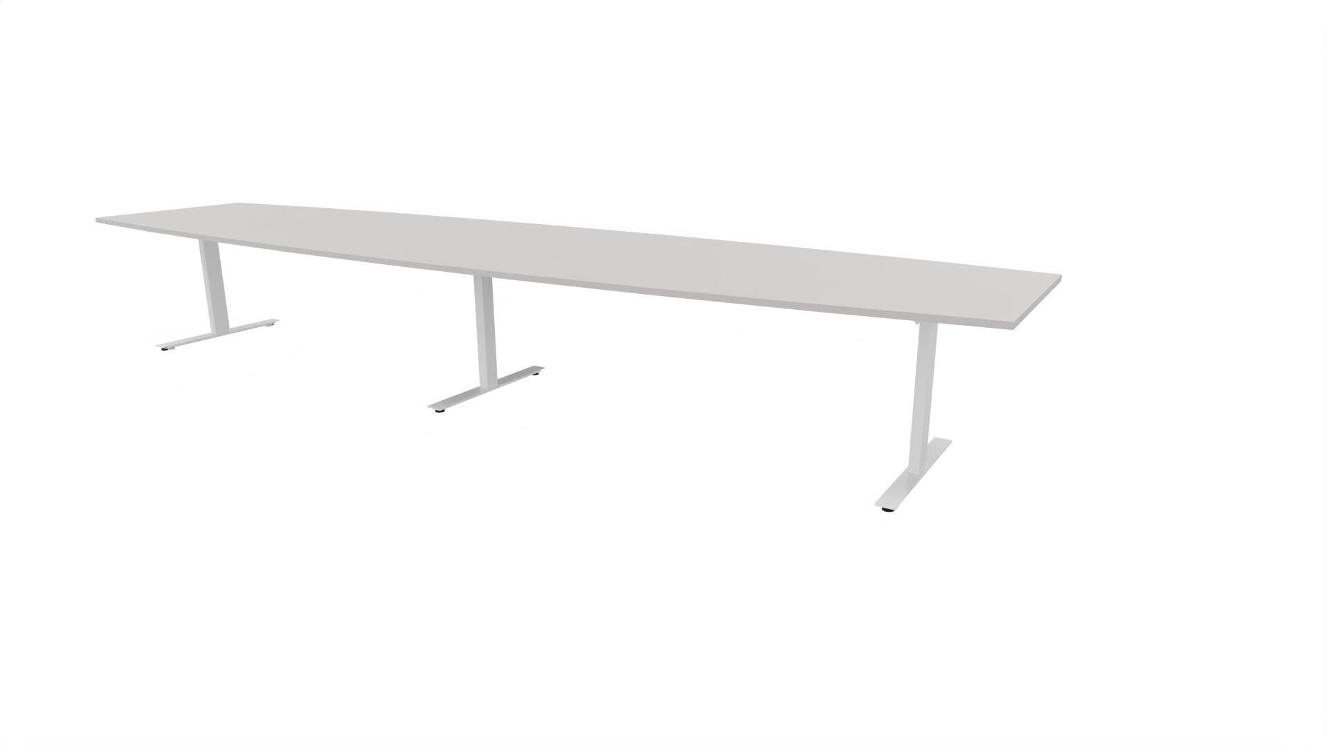 Et konferansebord med bordplate som er smalere i den ene enden for å gi alle fri sikt til skjermen/tavlen. Kjerne av sponplate dekket med laminat og ABS-kant. Understell T-stativ med 2 ben, fotlengde 90 cm. I tillegg til standard laminat, er bordet også tilgjengelig med et svart nanolaminat som har en overflate som er matt og motstandsdyktig mot fingeravtrykk. Som et tilvalg kan du velge å ha en mediabokser (32x15 cm) innfelt i bordet. Medieboksen består av 2x 230V stikkontakter, 1x USB og 1x HDMI.