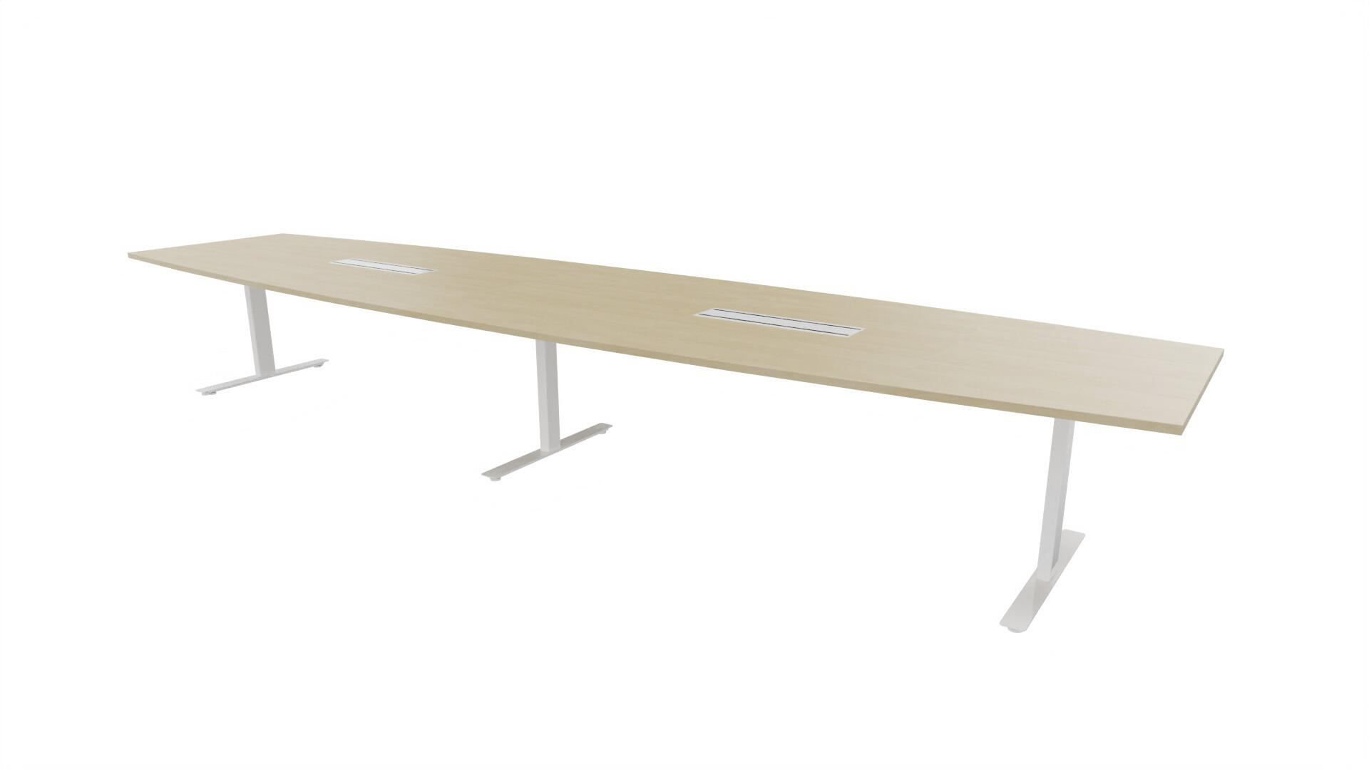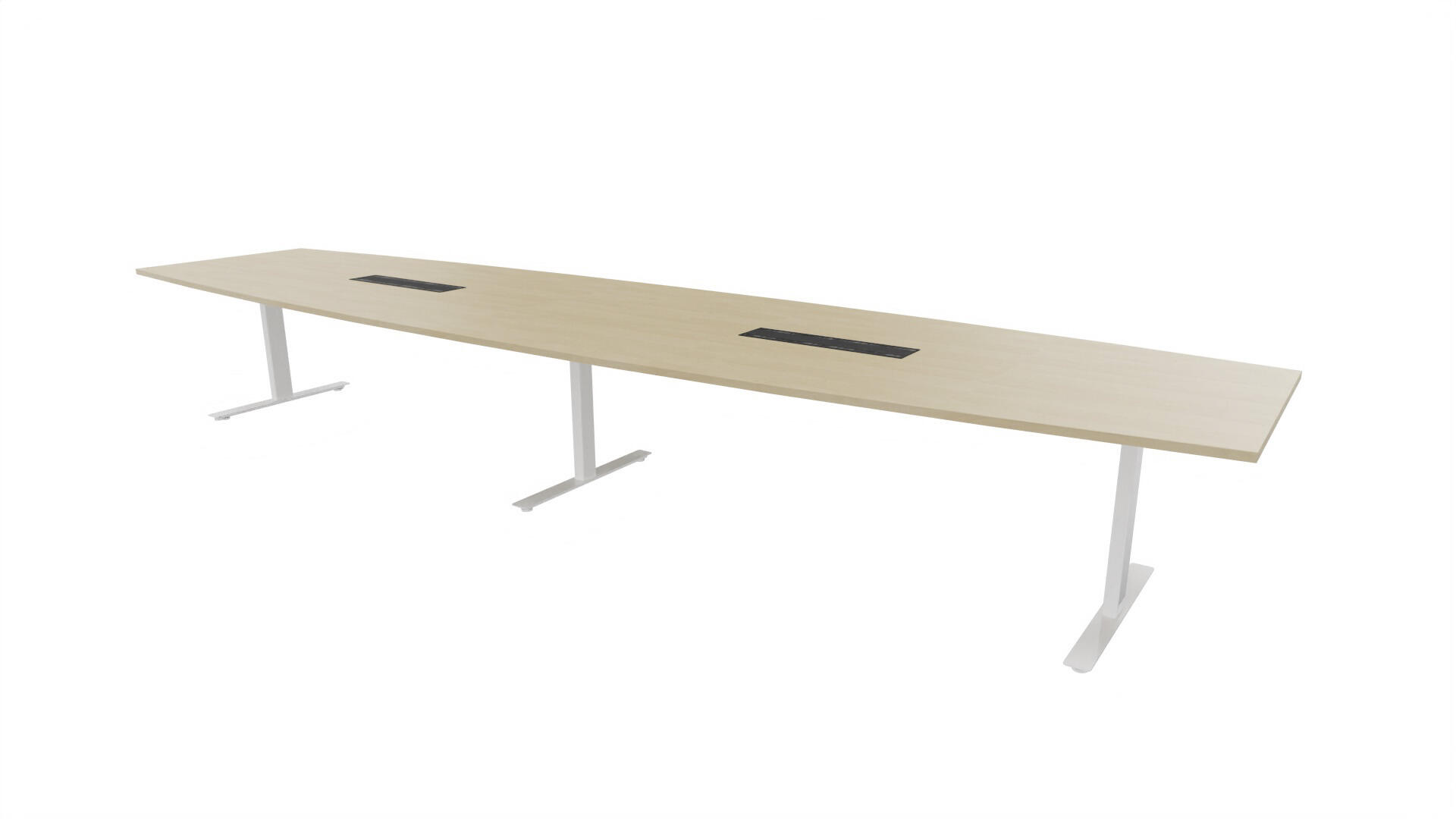 Et konferansebord med bordplate formet som en kappet elipse. Kjerne av sponplate dekket med laminat og ABS-kant. Understell T-stativ med 3 ben, fotlengde 90 cm. I tillegg til standard laminat, er bordet også tilgjengelig med et svart nanolaminat som har en overflate som er matt og motstandsdyktig mot fingeravtrykk. Som et tilvalg kan du også velge å ha to mediabokser (61x15 cm) innfelt i bordet. Hver medieboks består av 5x 230V stikkontakter, 2x USB og 1x HDMI.
