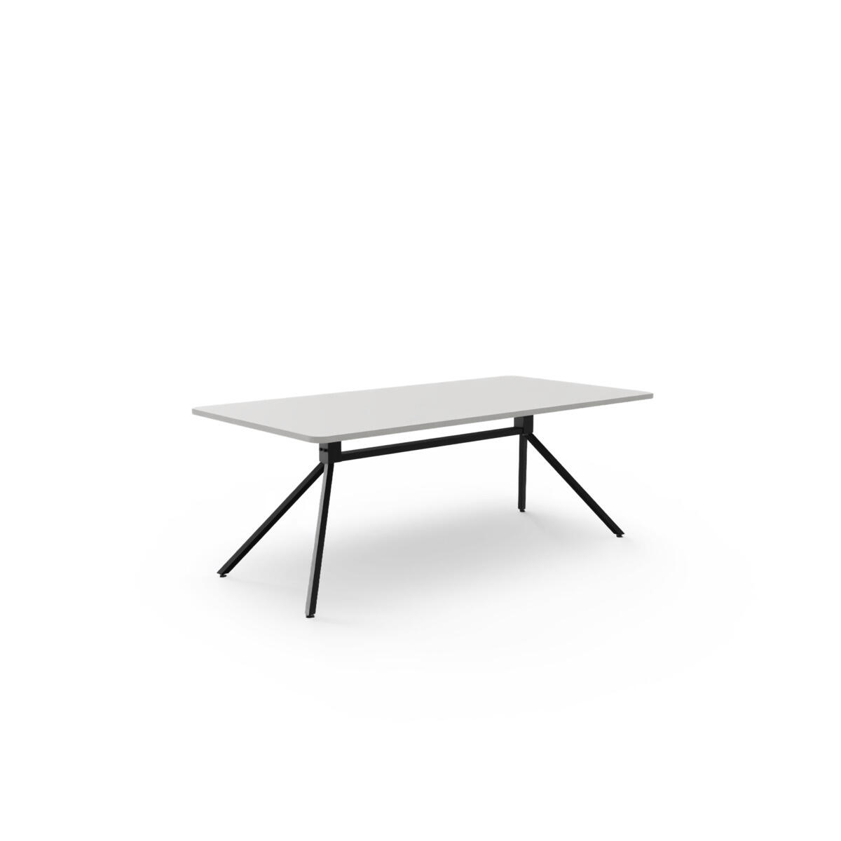 Et konferansebord med rektangulær plate, rett kant. Kjerne av sponplate dekket med laminat og ABS-kant. Understell T-stativ med 3 ben, fotlengde 90 cm. I tillegg til standard laminat, er bordet også tilgjengelig med et svart nanolaminat som har en overflate som er matt og motstandsdyktig mot fingeravtrykk. Som et tilvalg kan du også velge å ha to mediabokser (61x15 cm) innfelt i bordet. Hver medieboks består av 5x 230V stikkontakter, 3x USB og 1x HDMI.