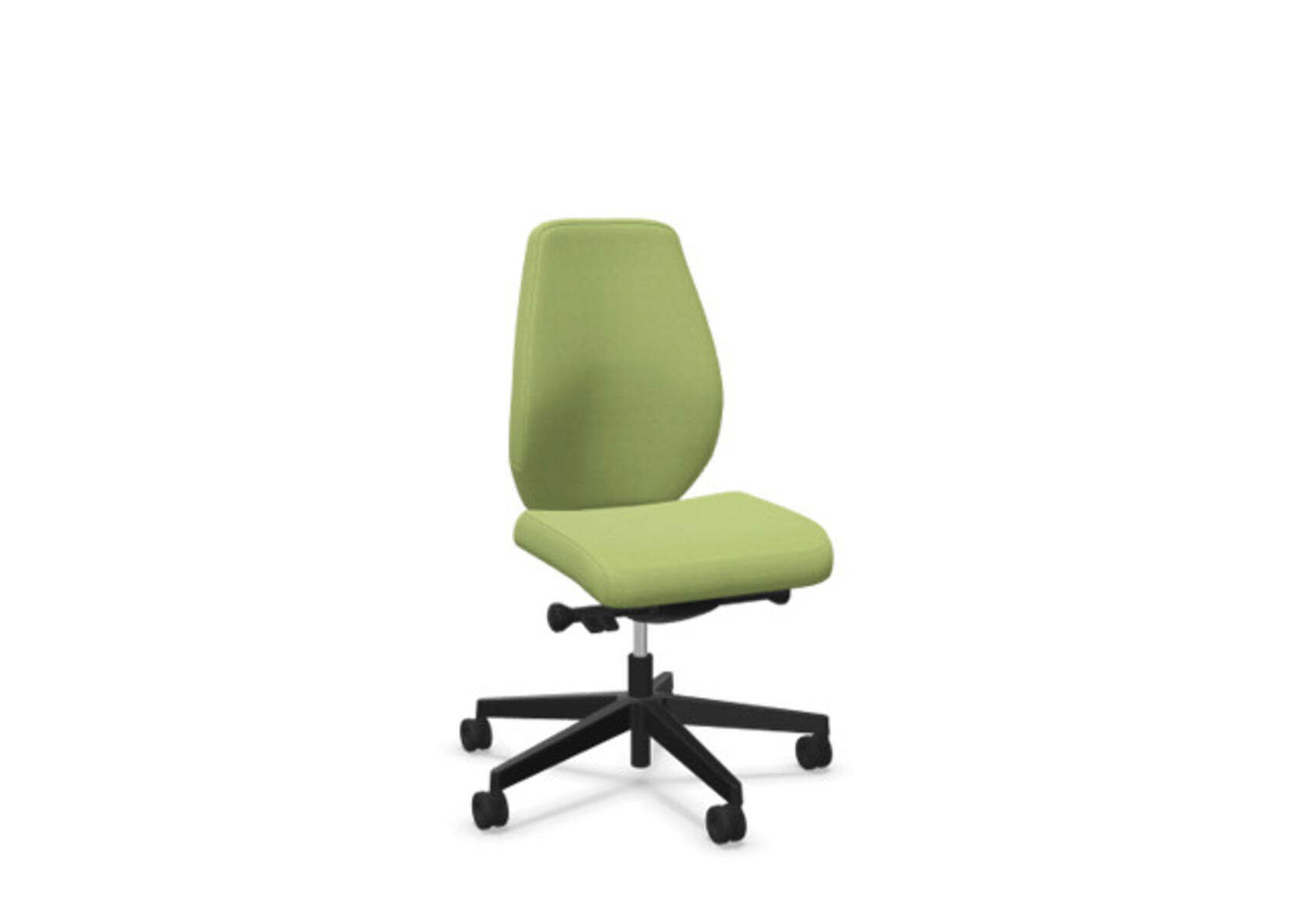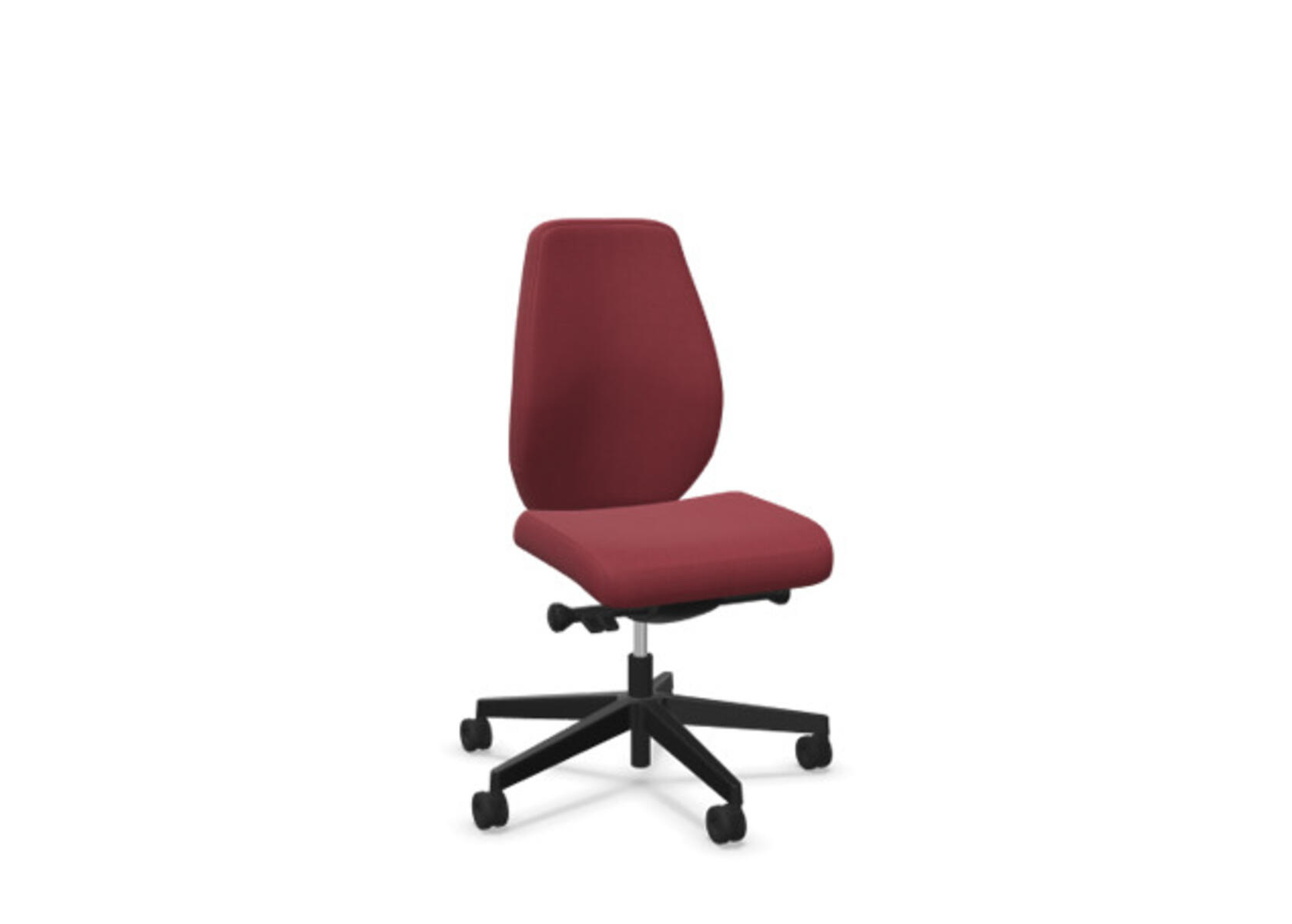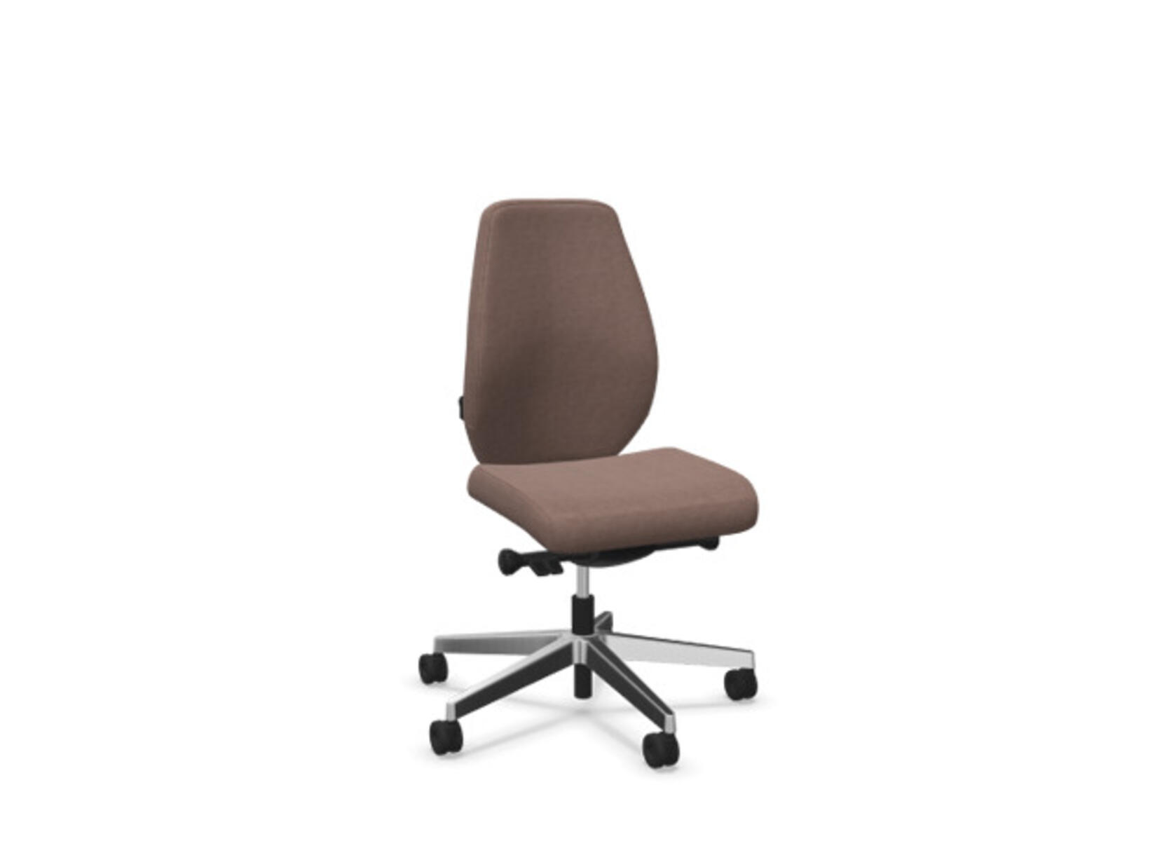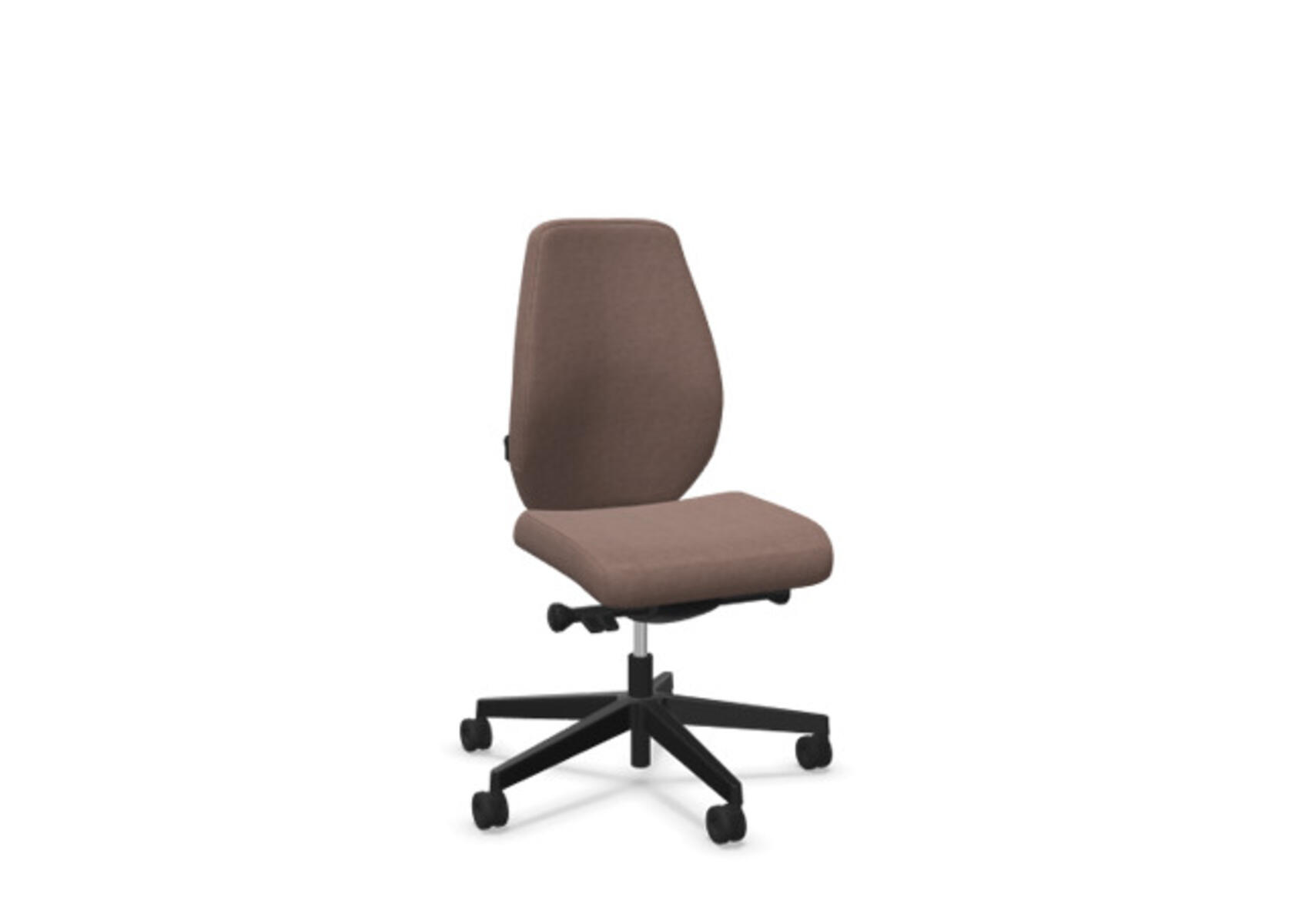 En stilren og ergonomisk kontorstol med heltrukket lav rygg og avansert synkronmekanisme samt justering av sittedybde, utformet for å gi støtte ved aktiv sitting gjennom hele arbeidsdagen. Den synkroniserte vippen mellom ryggstøtte og sete gir en aktiv og komfortabel sittestilling. Ryggstøttens vippevinkel er 23° synkronisert med setets vippevinkel på 10°. Ryggstøtten kan låses i 5 ulike posisjoner for individuell tilpasning, og motstanden i ryggstøtten justeres enkelt med et dreiehjul i 7 trinn. Ryggstøtten er høydejusterbar innenfor et område på 70 mm med 13 låseposisjoner. Sittedybden kan justeres innenfor et område på 60 mm. Negativ setevinkel på –2° synkronisert med ryggstøtte ved 5°, noe som sikrer optimalt ryggstøtte i alle vippeposisjoner. Stolen har også Anti-Shock-funksjon som hindrer ryggstøtten i å slå tilbake når vippen låses opp. Velg mellom kryss i svart polyamid eller polert aluminium samt selvbremsende hjul for myke eller harde gulv. Som tilvalg finnes også lumbalstøtte (Shukra-mekanisme), manuelt justerbar i dybden (20 mm) med et dreiehjul. Armlener i 1D, 2D, 3D eller 4D selges separat.