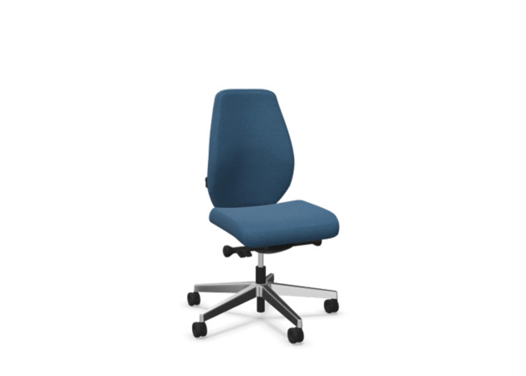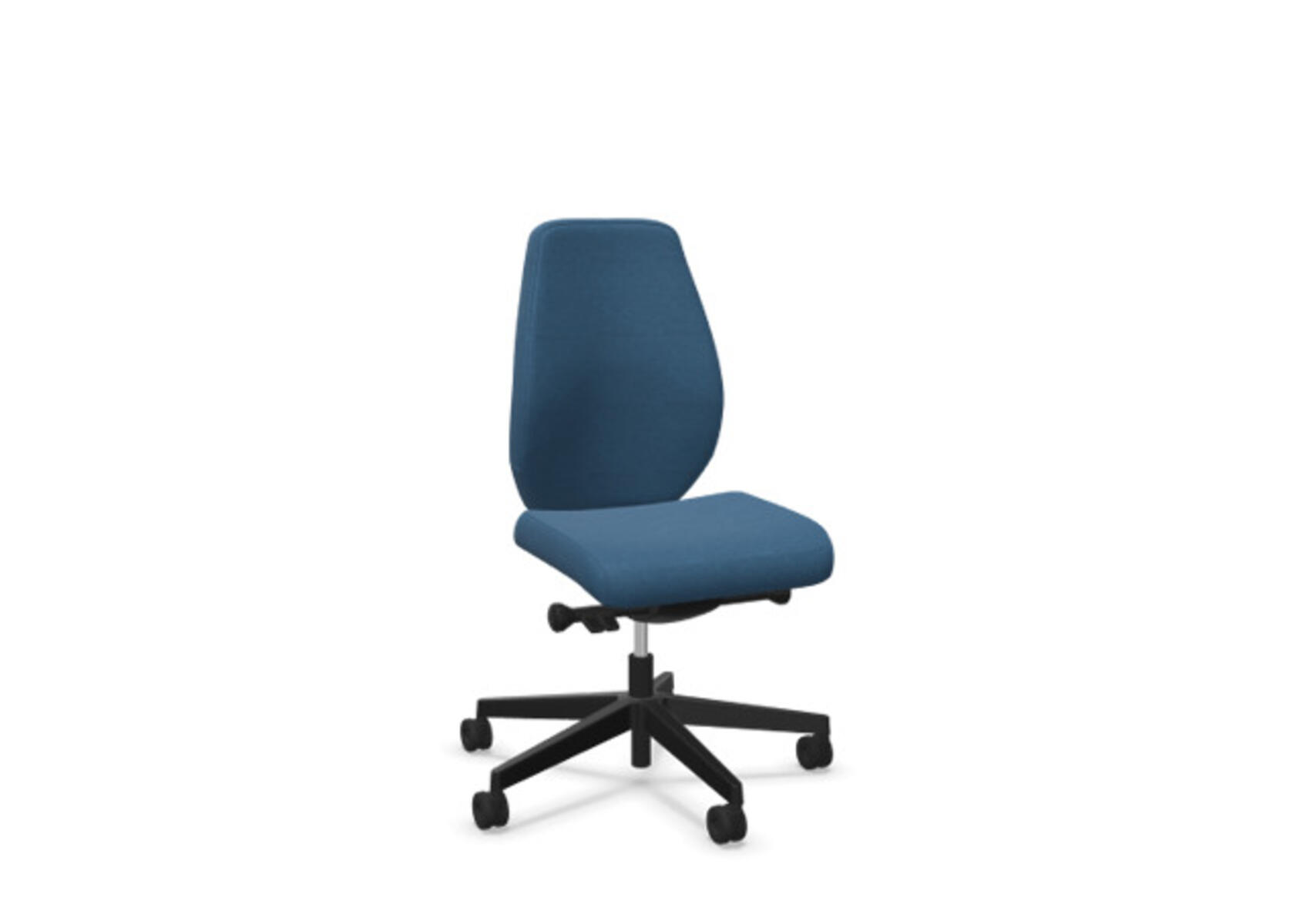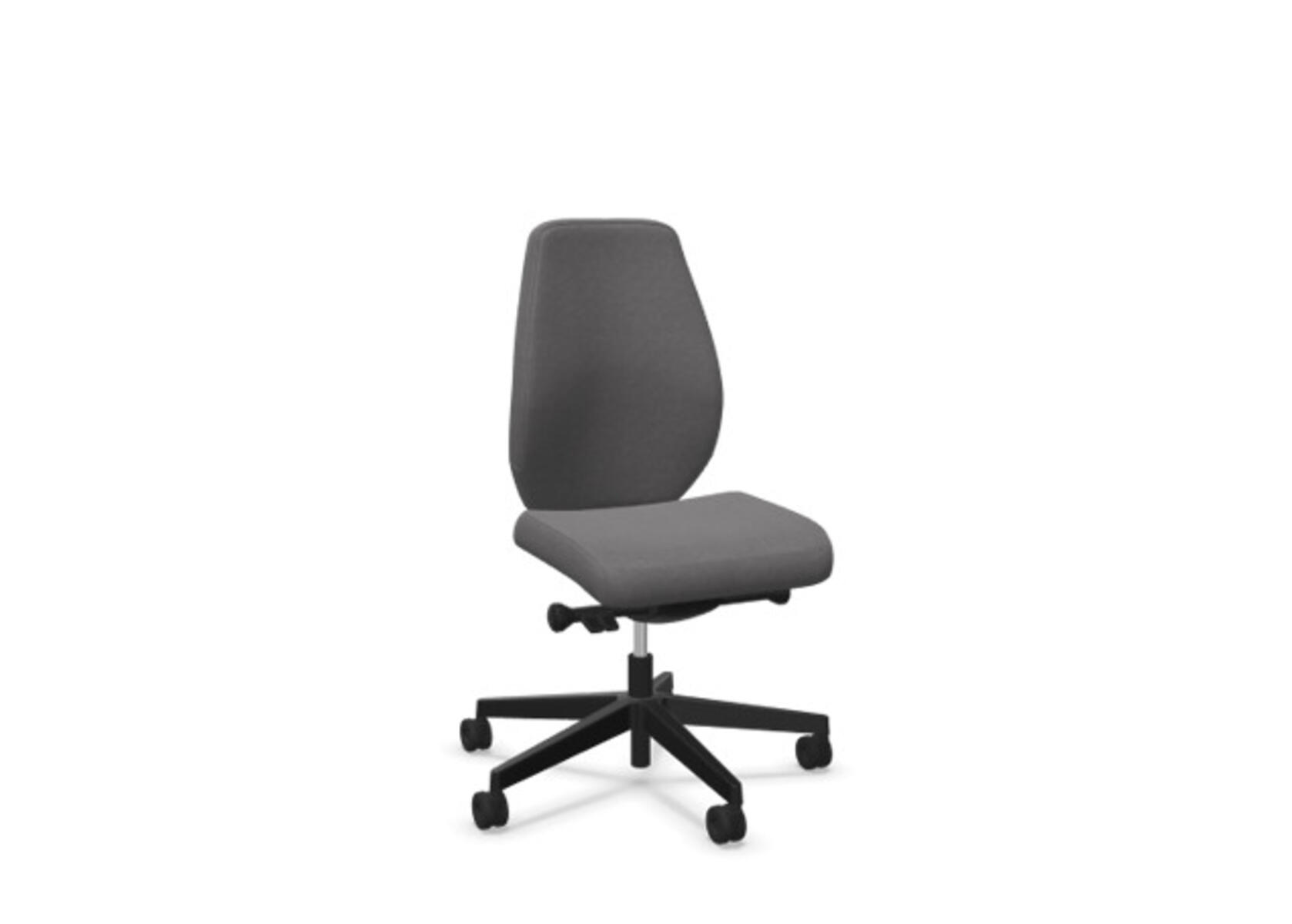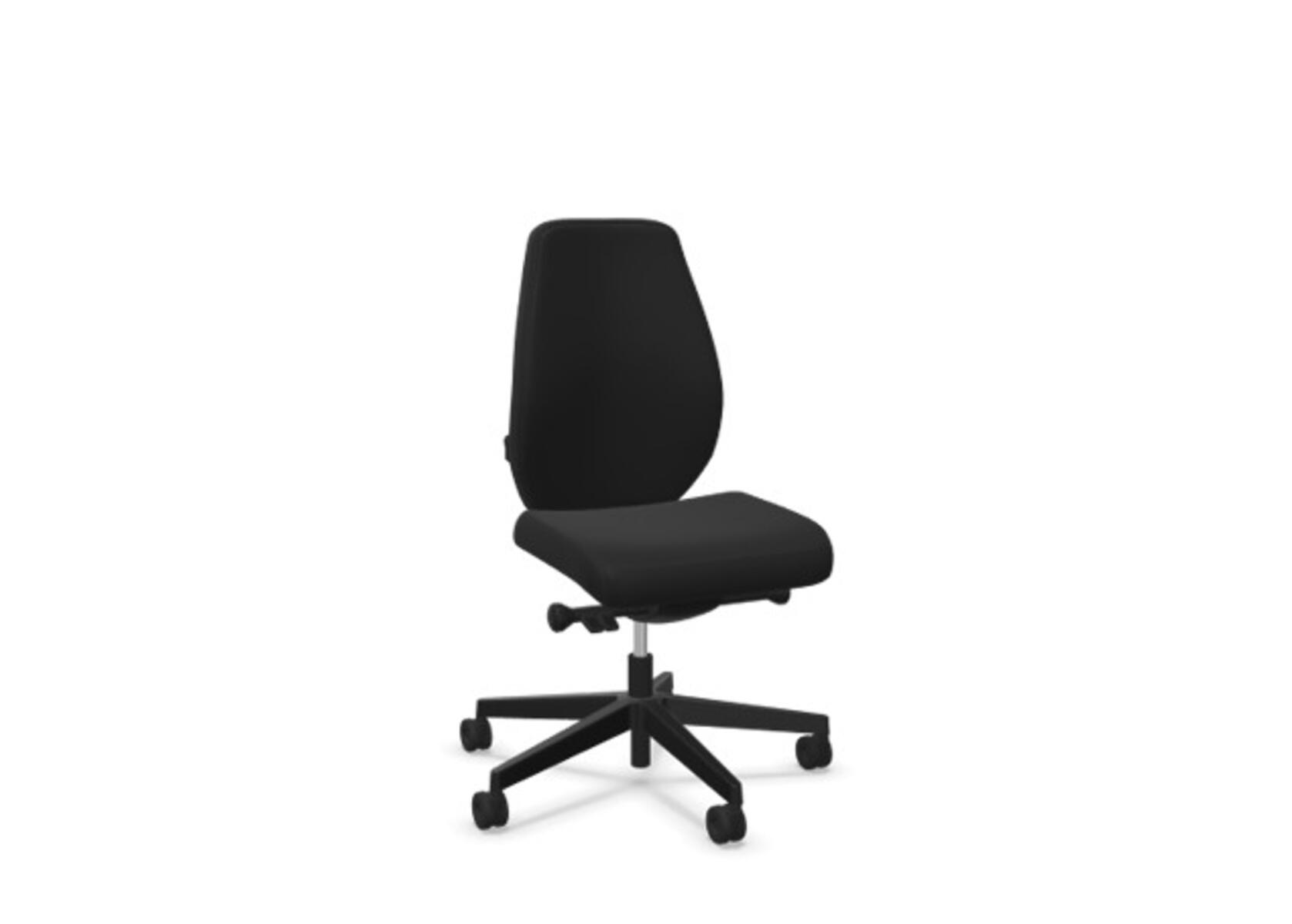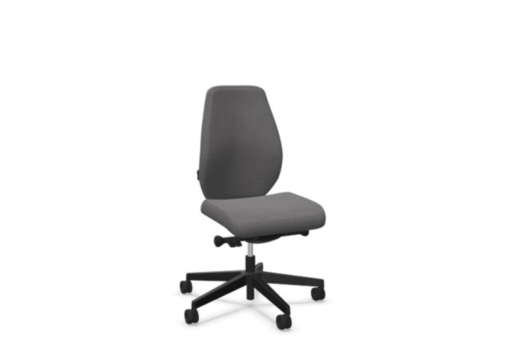 En stilren og ergonomisk kontorstol med heltrukket høy rygg og synkronmekanisme, utformet for å gi støtte ved aktiv sitting gjennom hele arbeidsdagen. Den synkroniserte vippen mellom ryggstøtte og sete gir en aktiv og komfortabel sittestilling. Ryggstøttens vippevinkel er 20° synkronisert med setets vippevinkel på 11°. Ryggstøtten kan låses i 5 ulike posisjoner for individuell tilpasning, og motstanden i ryggstøtten justeres enkelt med et dreiehjul. Ryggstøtten er høydejusterbar innenfor et område på 70 mm med 13 låseposisjoner. Justerbart, polstret nakkestøtte med vinkel- og høydejustering innenfor et område på 100 mm. Stolen har også Anti-Shock-funksjon som hindrer ryggstøtten i å slå tilbake når vippen låses opp. Velg mellom kryss i svart polyamid eller polert aluminium samt selvbremsende hjul for myke eller harde gulv. Som tilvalg finnes også lumbalstøtte (Shukra-mekanisme), manuelt justerbar i dybden (20 mm) med et dreiehjul. Armlener i 1D, 2D, 3D eller 4D selges separat.
