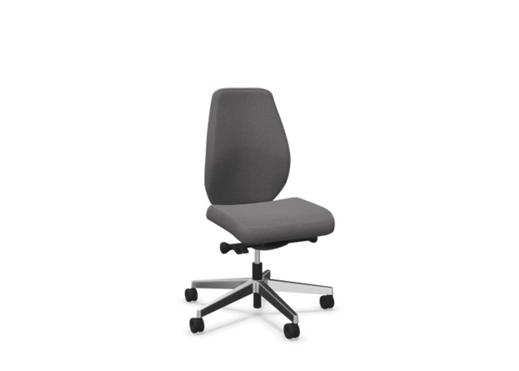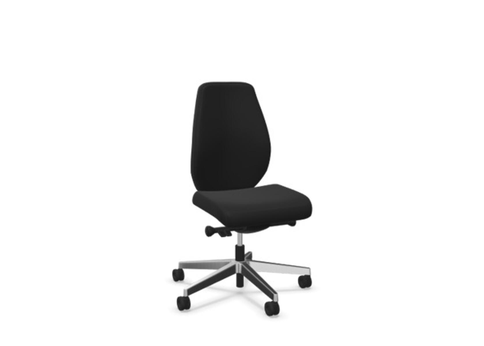 En stilren og ergonomisk kontorstol med heltrukket lav rygg og synkronmekanisme, utformet for å gi støtte ved aktiv sitting gjennom hele arbeidsdagen. Den synkroniserte bevegelsen mellom ryggstøtte og sete gir en aktiv og komfortabel sittestilling. Ryggstøttens vippevinkel er 20° synkronisert med setets vippevinkel på 11°. Ryggstøtten kan låses i 5 ulike posisjoner for individuell tilpasning, og motstanden i ryggstøtten justeres enkelt med et dreiehjul. Ryggstøtten er høydejusterbar innenfor et område på 70 mm med 13 låseposisjoner. Stolen har også Anti-Shock-funksjon som hindrer ryggstøtten i å slå tilbake når vippen låses opp. Velg mellom kryss i svart polyamid eller polert aluminium samt selvbremsende hjul for myke eller harde gulv. Som tilvalg finnes også lumbalstøtte (Shukra-mekanisme), manuelt justerbar i dybden (20 mm) med et dreiehjul. Armlener i 1D, 2D, 3D eller 4D selges separat.