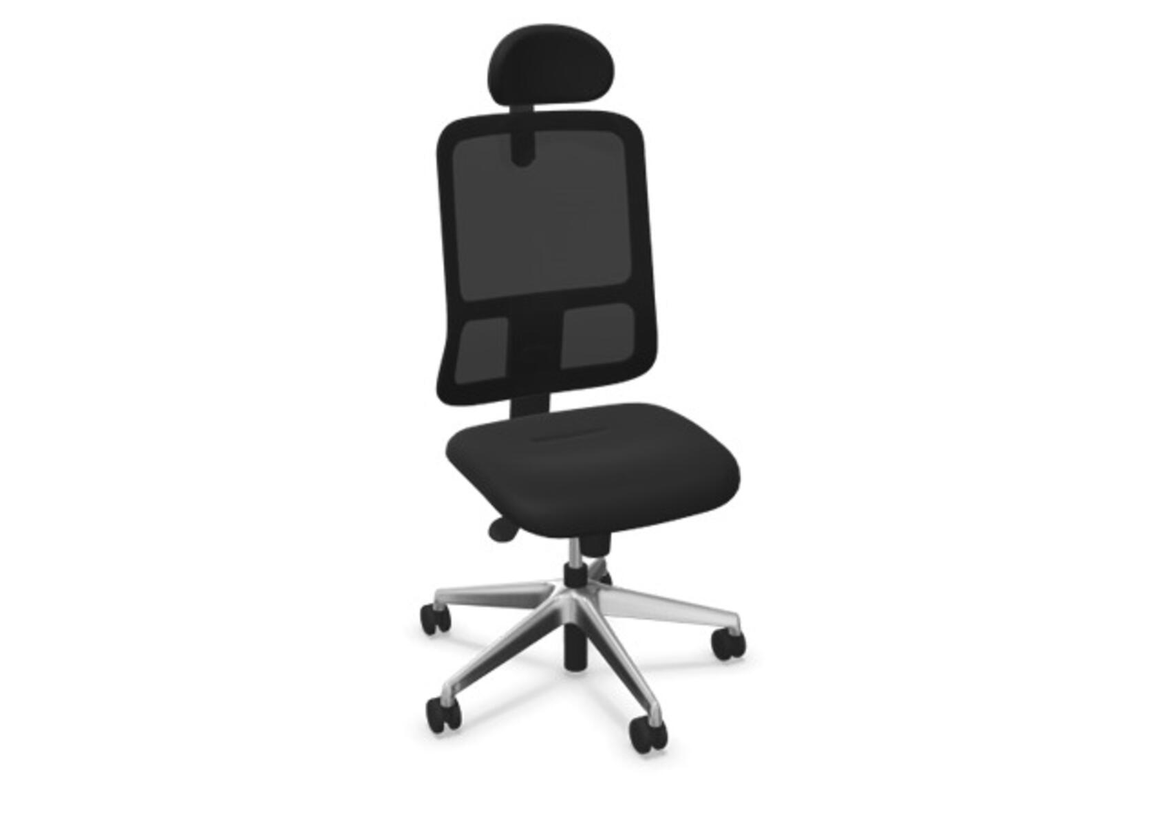 Ergonomisk kontorstol med mesh rygg og synkronmekanisme, utformet for å gi støtte ved aktiv sitting gjennom hele arbeidsdagen. Polyesterstoff. Den synkroniserte bevegelsen mellom ryggstøtte og sete gir en aktiv og komfortabel sittestilling. Ryggstøttens vippevinkel er 20° synkronisert med setets vippevinkel på 11°. Ryggstøtten kan låses i 5 ulike posisjoner for individuell tilpasning, og motstanden i ryggstøtten justeres enkelt med et dreiehjul. Polstret nakkestøtte, justerbar innenfor intervallene: dybde 20 mm, vinkel 70° og høyde 100 mm. Stolen har også Anti-Shock-funksjon som hindrer ryggstøtten i å slå tilbake når vippen låses opp. Velg mellom kryss i lysgrå polyamid eller polert aluminium samt selvbremsende hjul for myke eller harde gulv. Som tilvalg finnes også regulerbart korsryggstøtte, manuelt justerbart i dybde (15 mm) og høyde (20 mm). Armlener i 2D, 3D eller 4D selges separat.
