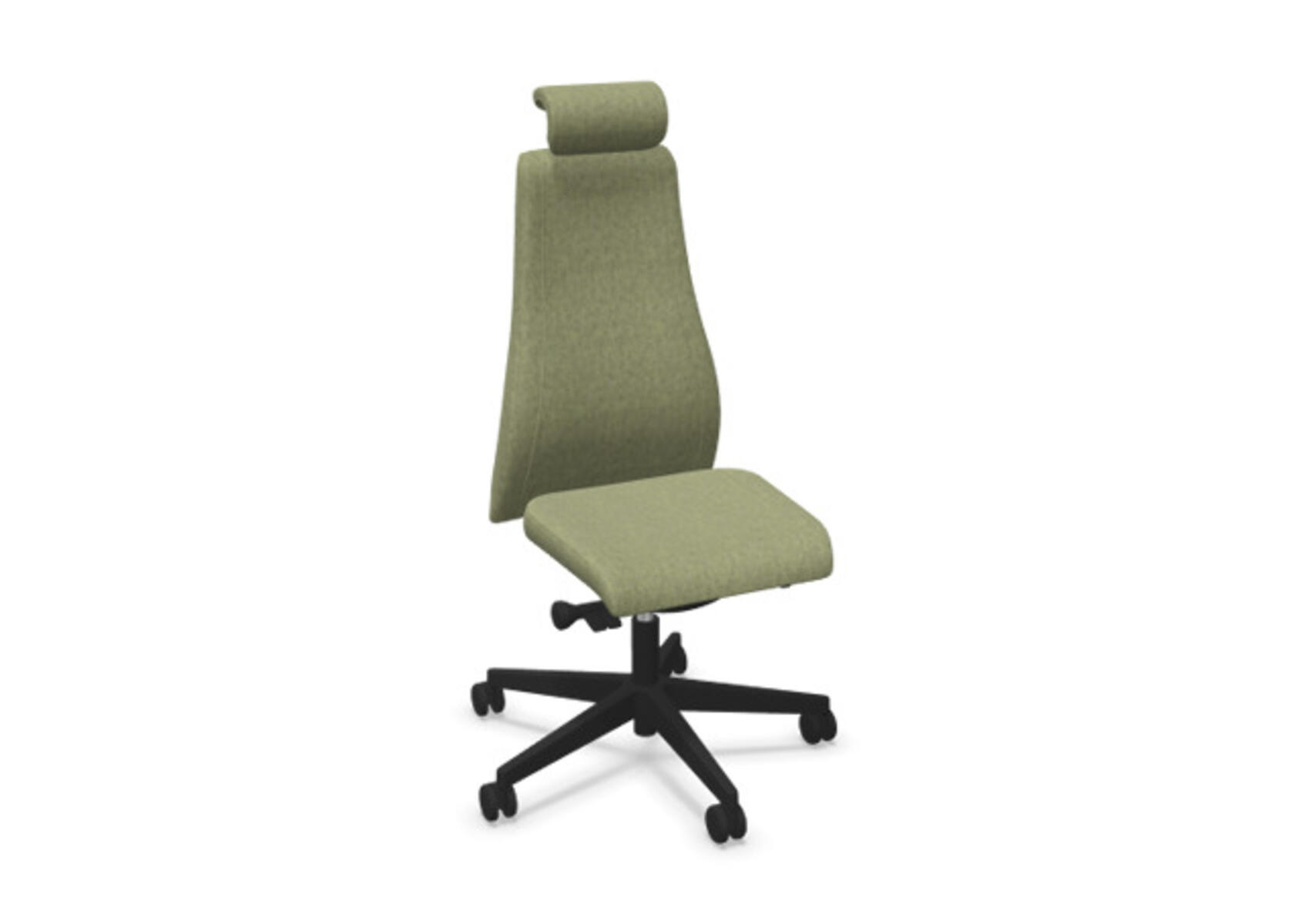 En stilren og ergonomisk kontorstol med heltrukket høy rygg og synkronmekanisme samt justering av sittedybde, utformet for å gi støtte ved aktiv sitting gjennom hele arbeidsdagen. Trukket i ullstoff. Den synkroniserte vippen mellom ryggstøtte og sete gir en aktiv og komfortabel sittestilling. Ryggstøttens vippevinkel er 20° synkronisert med setets vippevinkel på 11°. Ryggstøtten kan låses i 5 ulike posisjoner for individuell tilpasning, og motstanden i ryggstøtten justeres enkelt med et dreiehjul. Ryggstøtten er høydejusterbar innenfor et område på 70 mm med 13 låseposisjoner. Justerbart, polstret nakkestøtte med vinkel- og høydejustering innenfor et område på 75 mm. Sittedybden kan justeres innenfor et område på 50 mm. Stolen har også Anti-Shock-funksjon som hindrer ryggstøtten i å slå tilbake når vippen låses opp. Velg mellom kryss i svart polyamid eller polert aluminium samt selvbremsende hjul for myke eller harde gulv. Som tilvalg finnes også korsryggstøtte, manuelt justerbar i dybden (20 mm) med et dreiehjul. Armlener i 2D, 3D eller 4D selges separat.