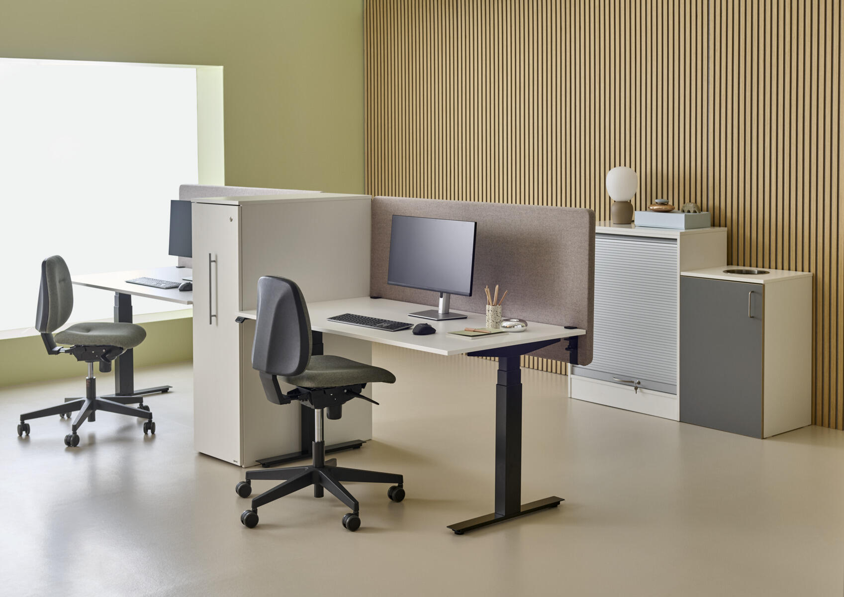 Skap orden under skrivebordet med Soft Concept – en innovativ løsning for kabler, kontakter og personlige eiendeler. Laget av lateksfri nålefilt som er 100 % resirkulerbar, bidrar Soft både til et stillere arbeidsmiljø og et mer bærekraftig kontor. Monteres enkelt med medfølgende beslag under bordplaten.