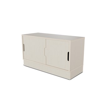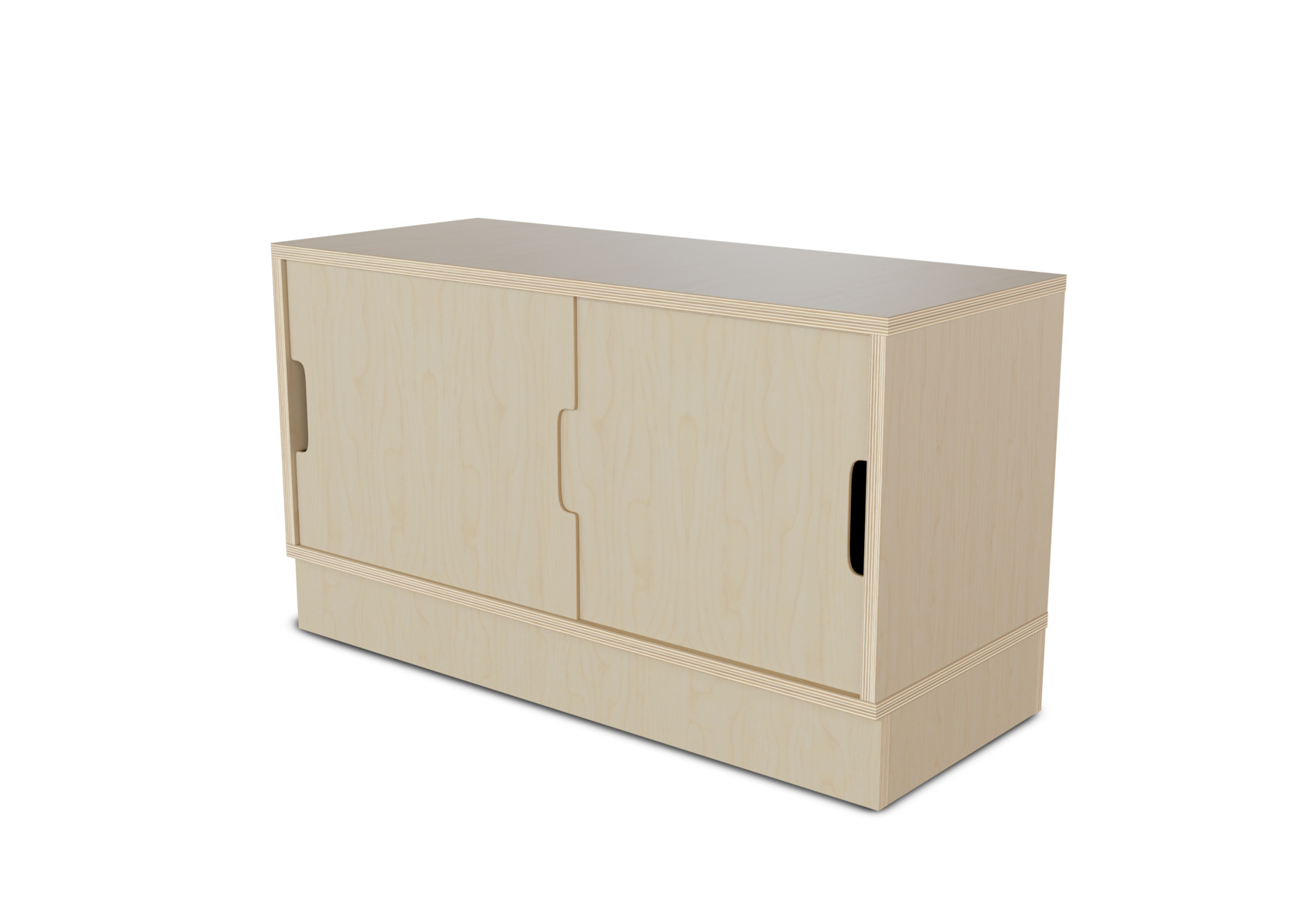 Komplett modul med valg av ben, hjul eller sokkel. Ved valg av ben og sokkel følger det med vinkelbeslag for å feste til veggen. Hjul inkluderer to faste og to bevegelige med låser. Ramme laget av 18 mm kryssfiner. Skyvedører med håndhull i 4 mm bjørkefiner.