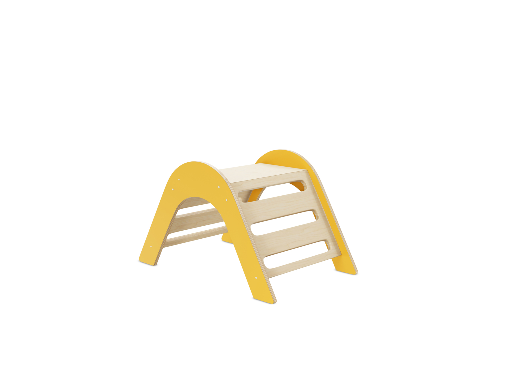 Et sett med tre klatrebukker, en i hver størrelse, liten, medium og stor. Solid konstruksjon i 18 mm bjørkekryssfiner. Bjørk og hvitpigmentert i kryssfiner, andre farger med høytrykkslaminat. Legg gjerne til en stige, sklie eller rampe. Med håndtakshull og plastføtter. Kan oppbevares under hverandre. Alder 3-6 år.