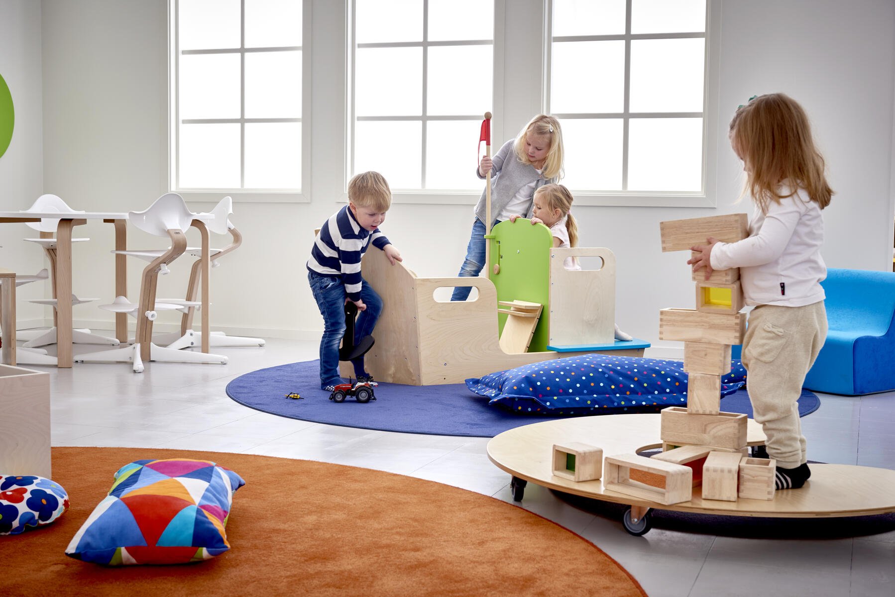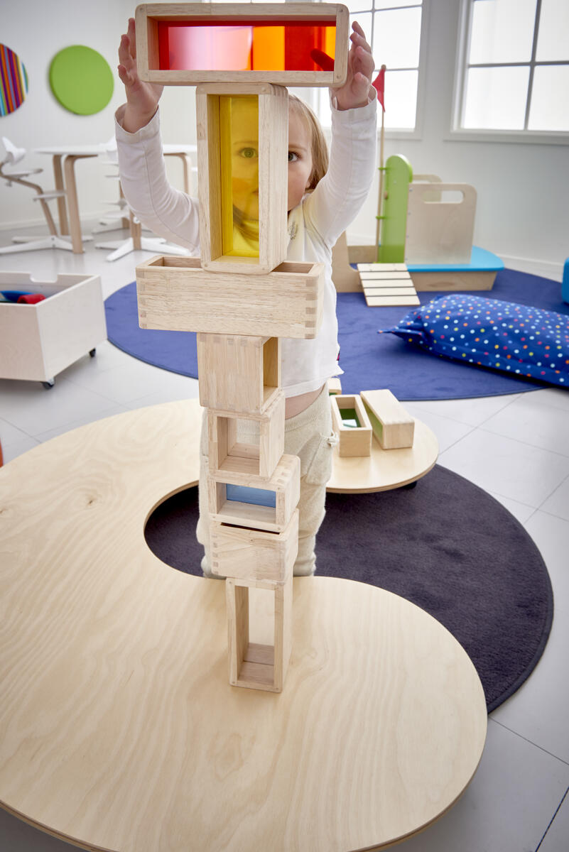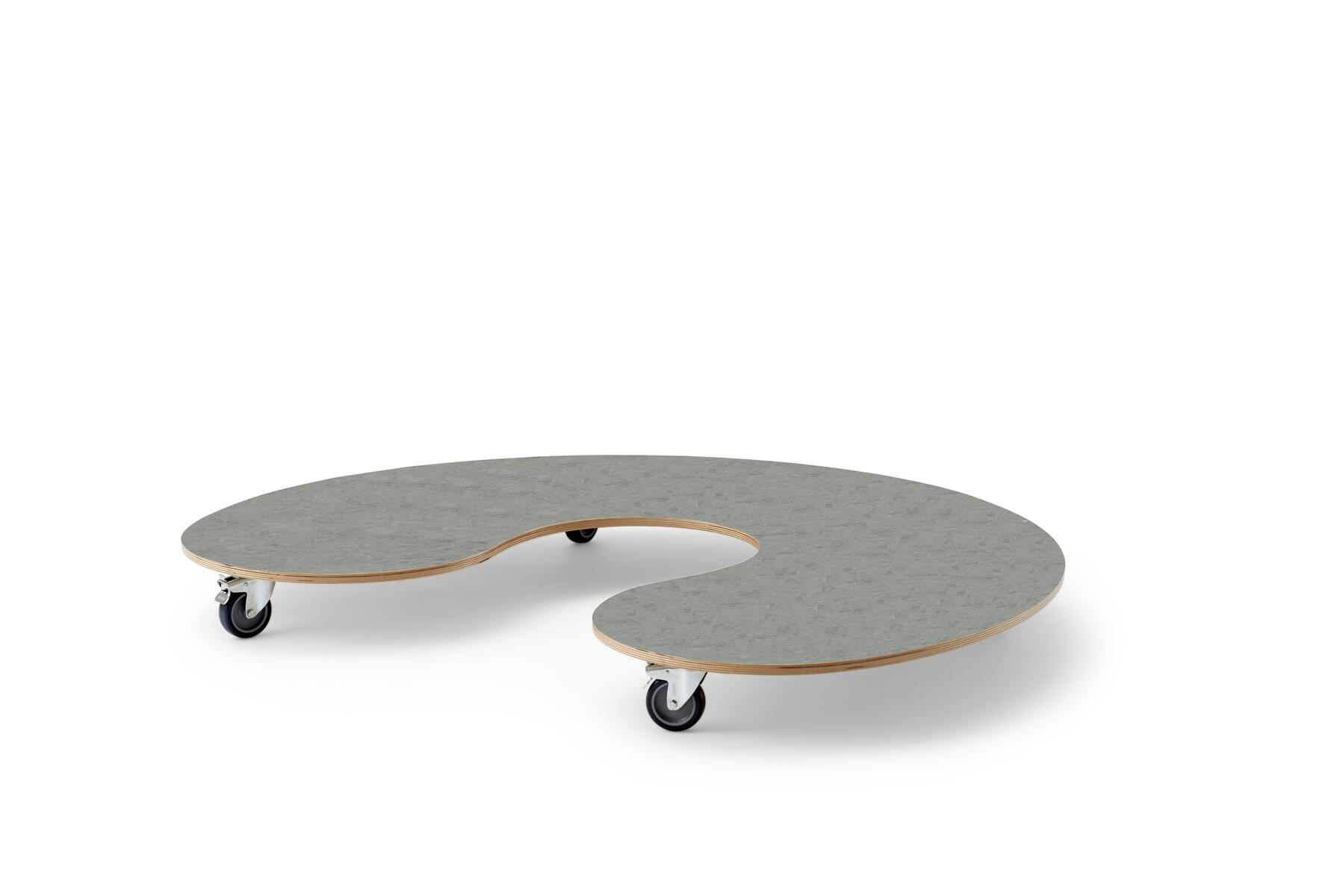 3 produkter i ett. Kan brukes som bord, podium eller tunnel for de aller minste. Skyves de inn under hverandre når de ikke er i bruk. Liten: 46x46x23 cm, medium: 53x53x26,5 cm og stor: 60x60x30 cm. Fargemiks består av hvit, lys grå og grå HT. Design: Monika Mulder. Svanemerket, lisensnummer 5031 0099.
