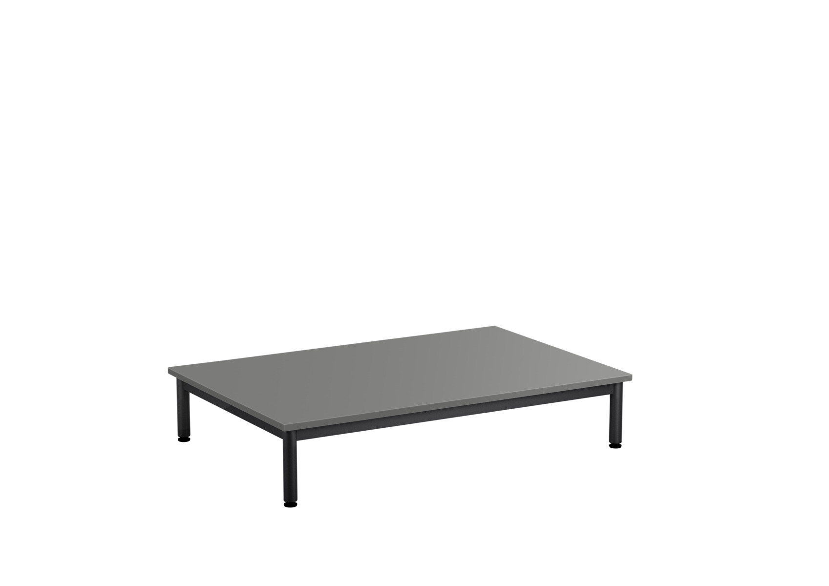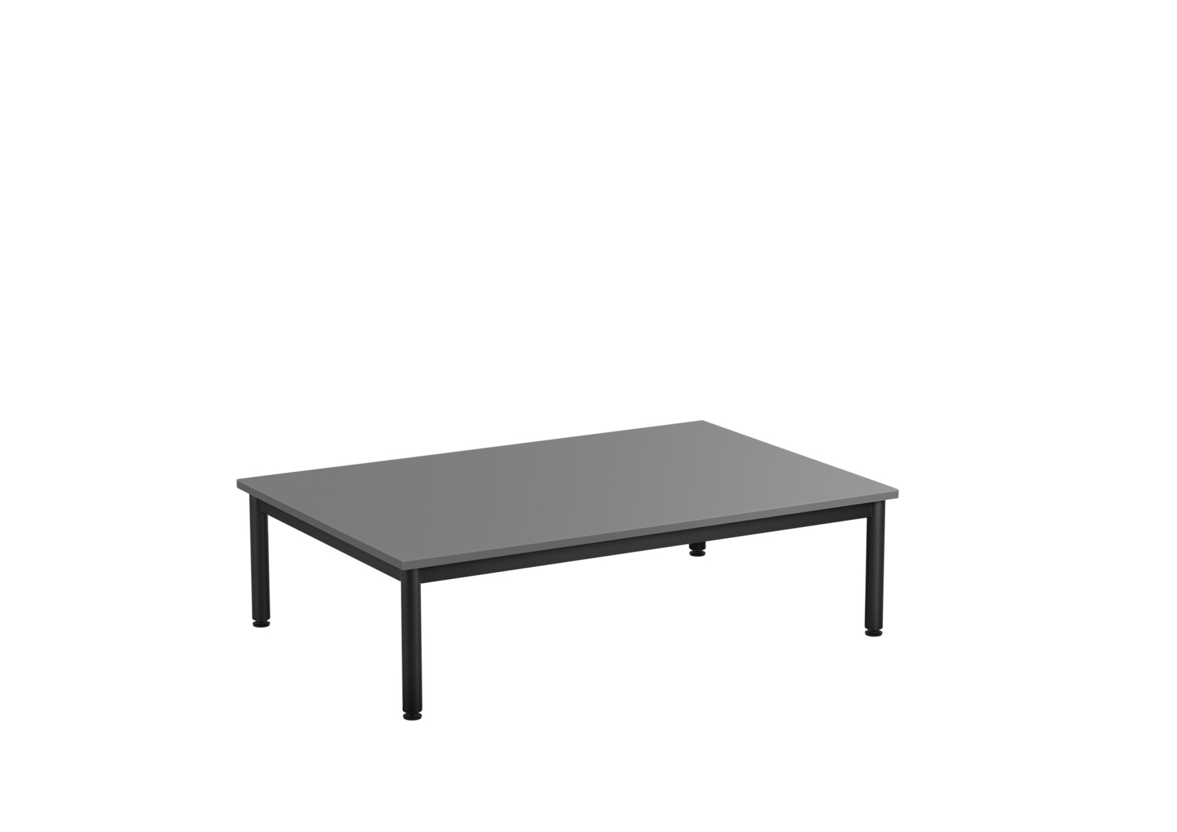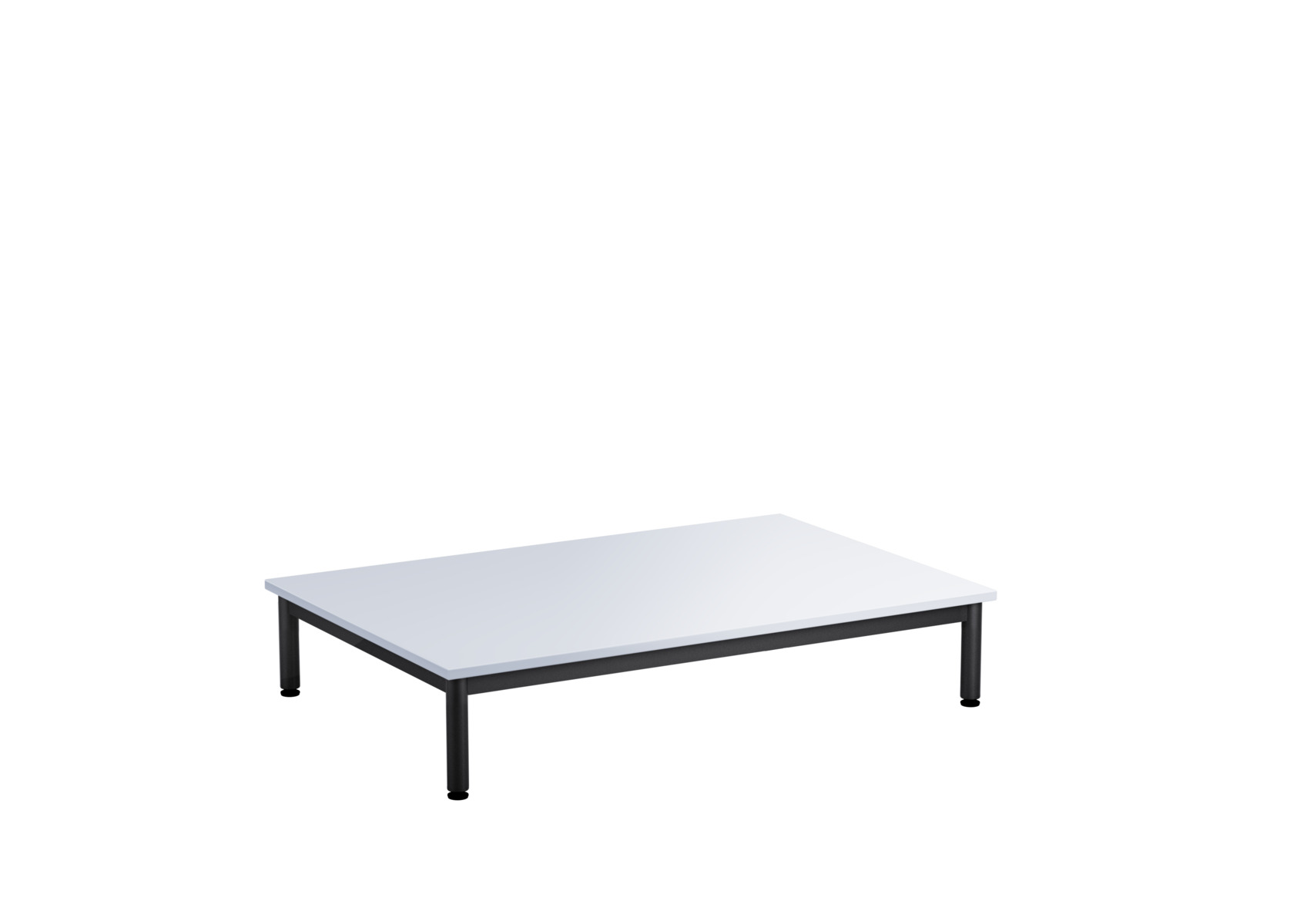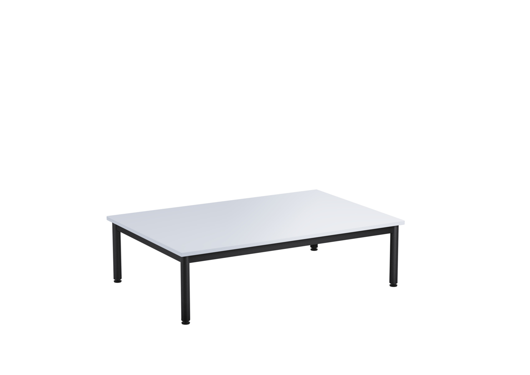 Et lekebord med bordplate i høytrykkslaminat som gir en meget slitesterk bordflate. Stabit understell med ramme og ben i dimensjon Ø40 mm, lakkert i svart. Justerbare føtter for tilpasning til ujevne overflater