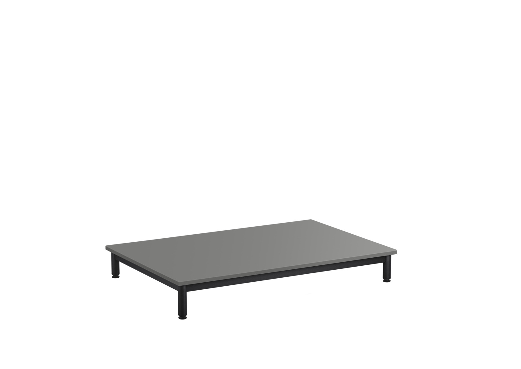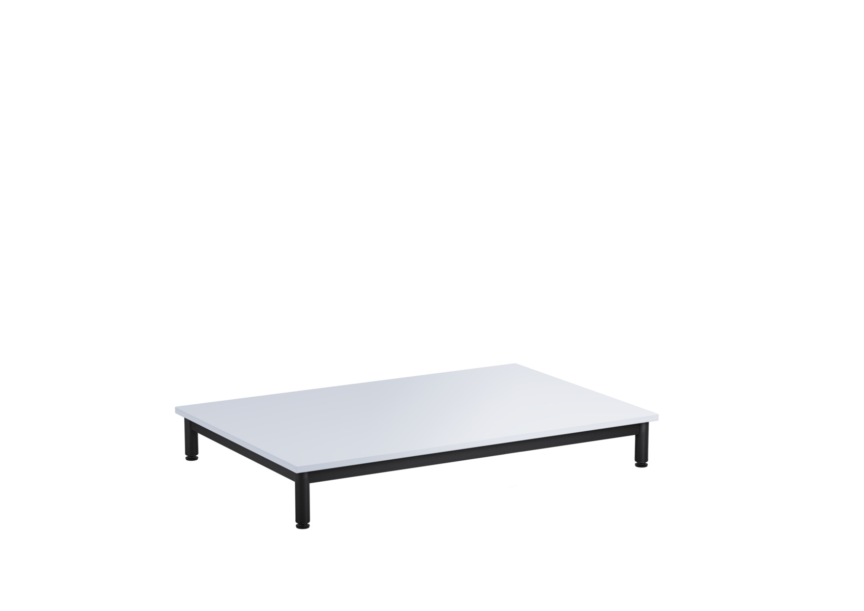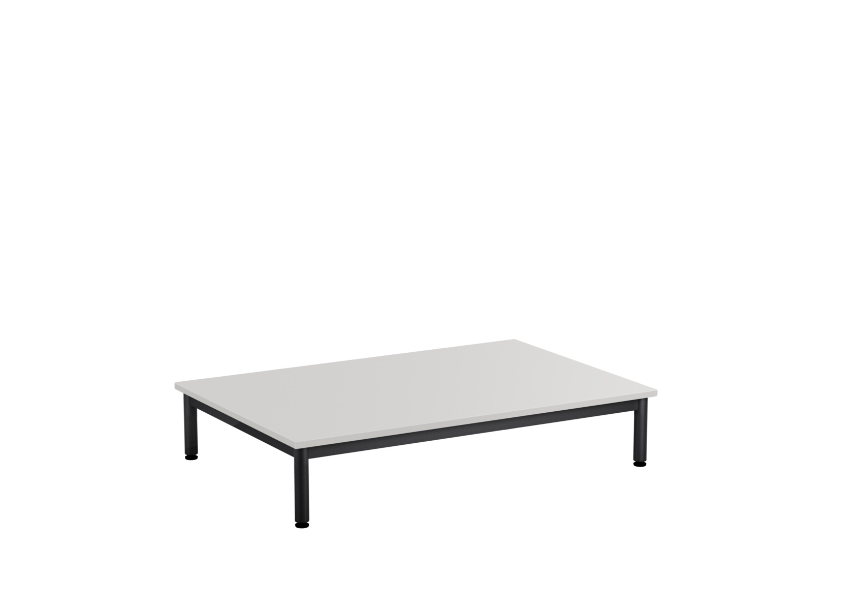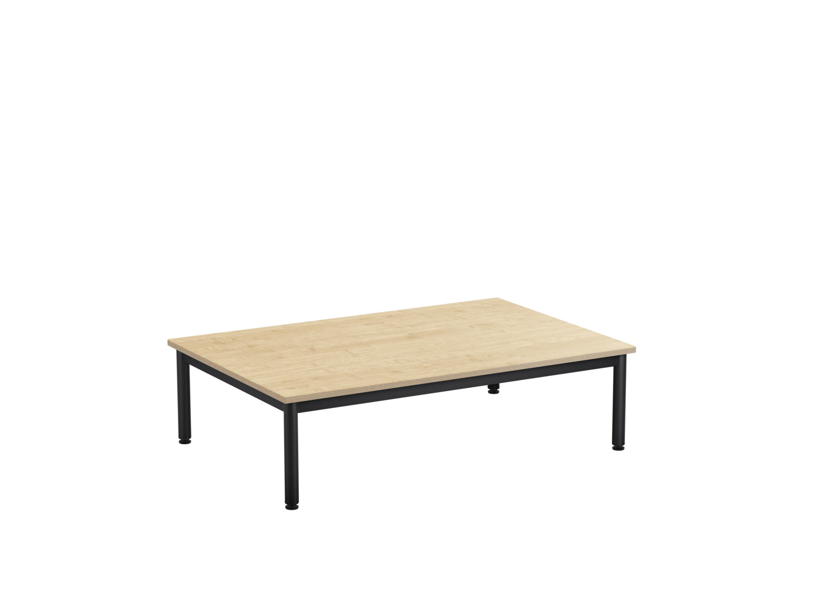 Et lekebord med bordplate i høytrykkslaminat som gir en meget slitesterk bordflate. Stabit understell med ramme og ben i dimensjon Ø40 mm, lakkert i svart. Justerbare føtter for tilpasning til ujevne overflater