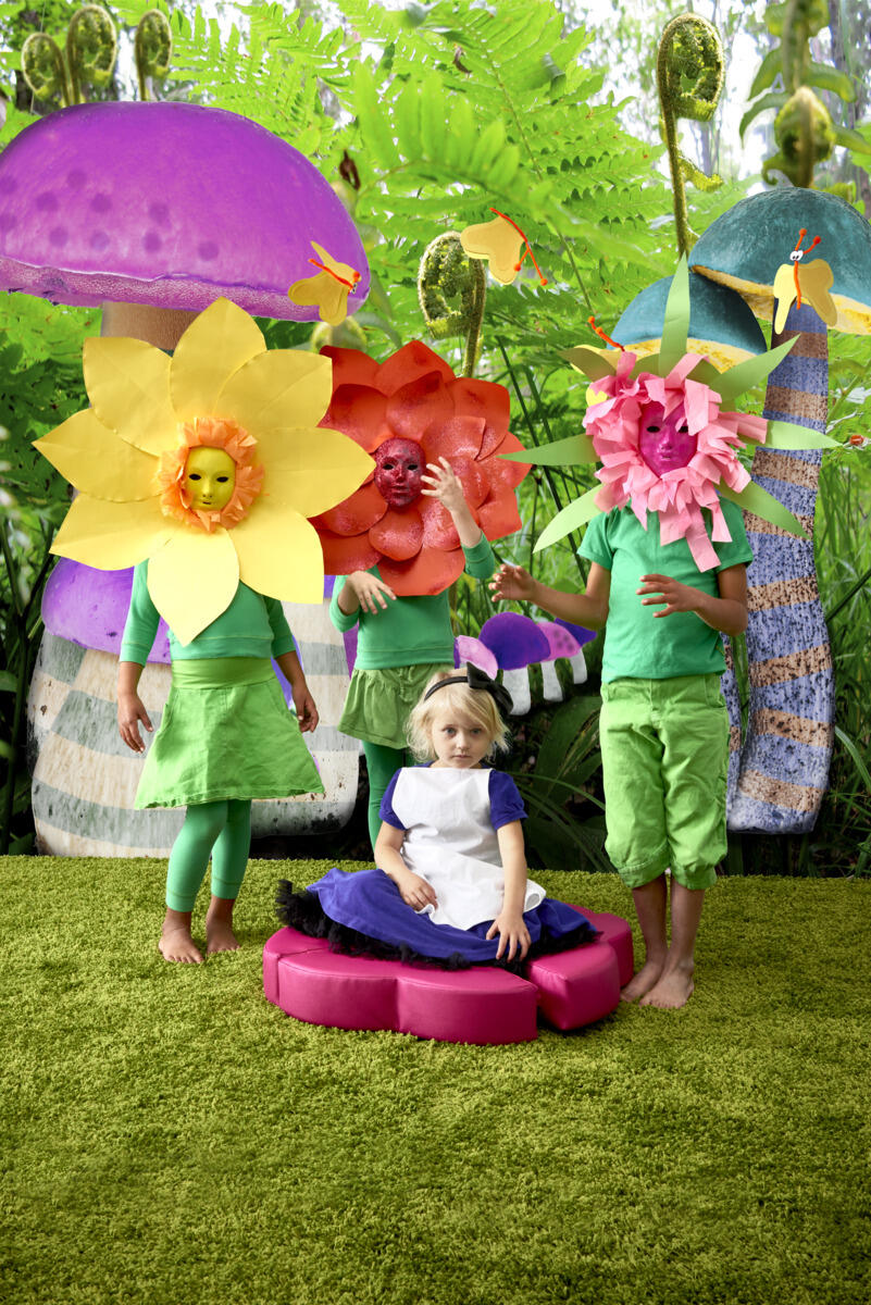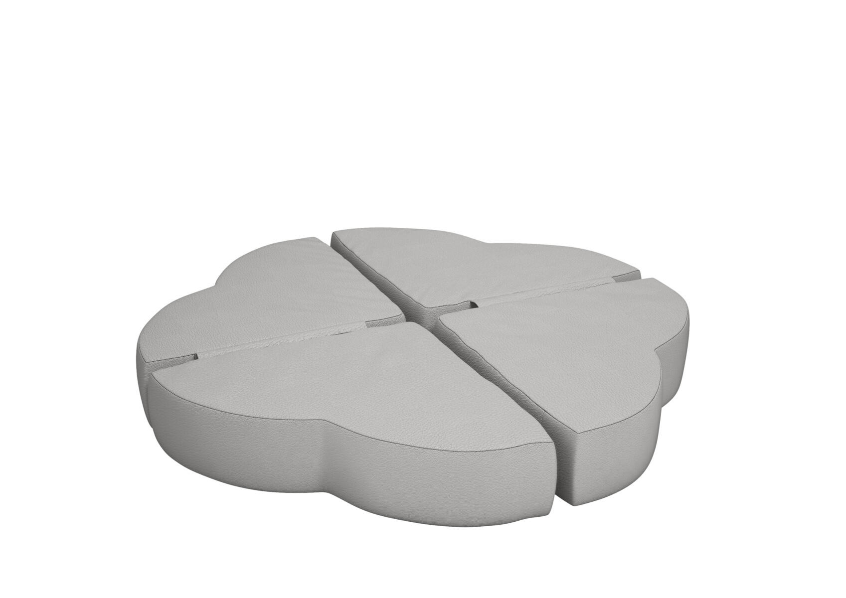 Lekepute i kaldskum med avtørkningsbart trekk av bomull/polyester med polyuretanbelegg. Ser ut som blomsterblad, 4 deler sitter sammen. Mål sammenlagt 36x36x60 cm. Design Alessandro Cardinale.