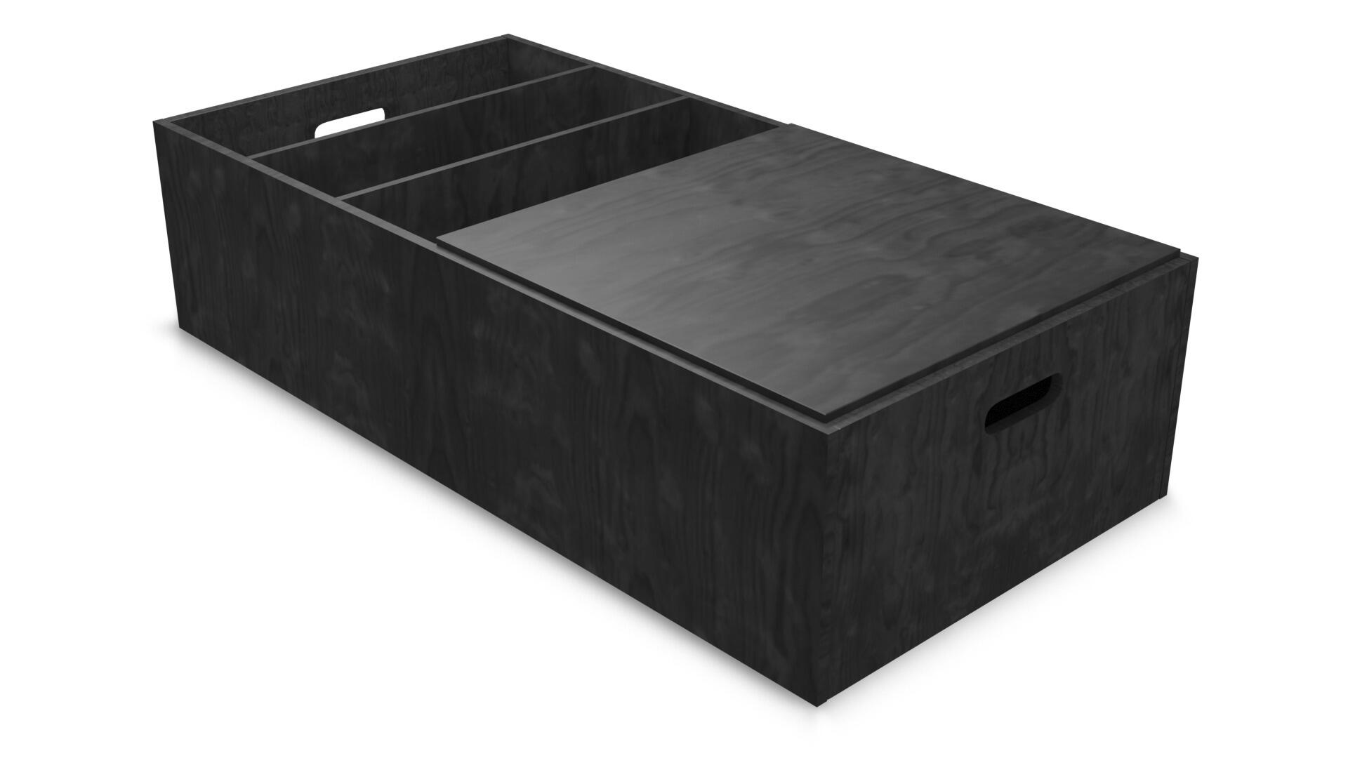 Scenemodul med riflet i fenolfilm overflate for bedre grep og sklibeskyttelse. Med utfreste håndtak. Mål: 60x60x30 cm. Hvitpigmentert bjørk kryssfiner med grå topp.