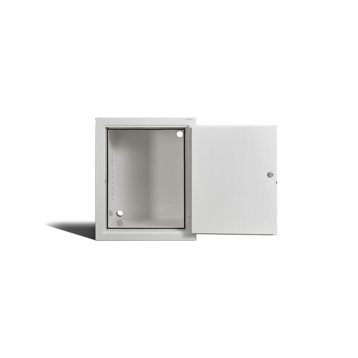 Brannisoleret kjemikalieskap for oppbevaring av brannfarlige og giftige kjemikalier. Produsert i kraftig stålplate, med dører, gavler, tak og bunn i sandwichkonstruksjon med brannisolasjon i henhold til Euroclass A1. Innfelte dører med forsterkningsprofil og håndtak med bruddpunkt for økt sikkerhet. En sveiset sperre på hengselsiden hindrer oppbryting selv om hengslene fjernes. Skapet leveres med kraftig espanjolettlås og ASSA‑sylinderlås med to nøkler (ikke montert ved levering).