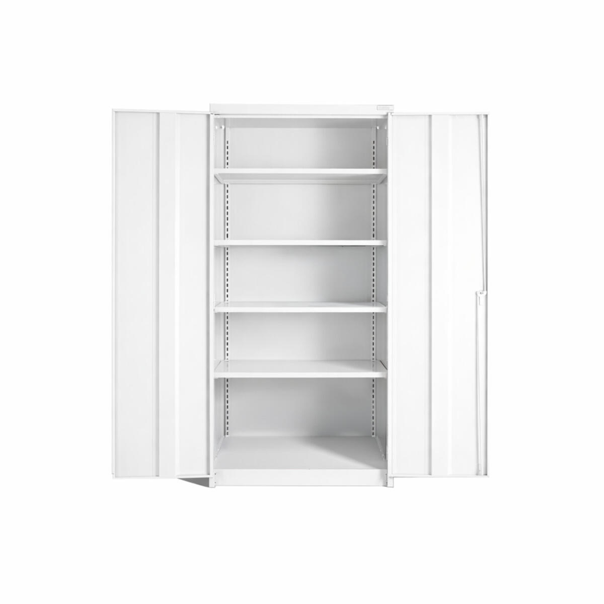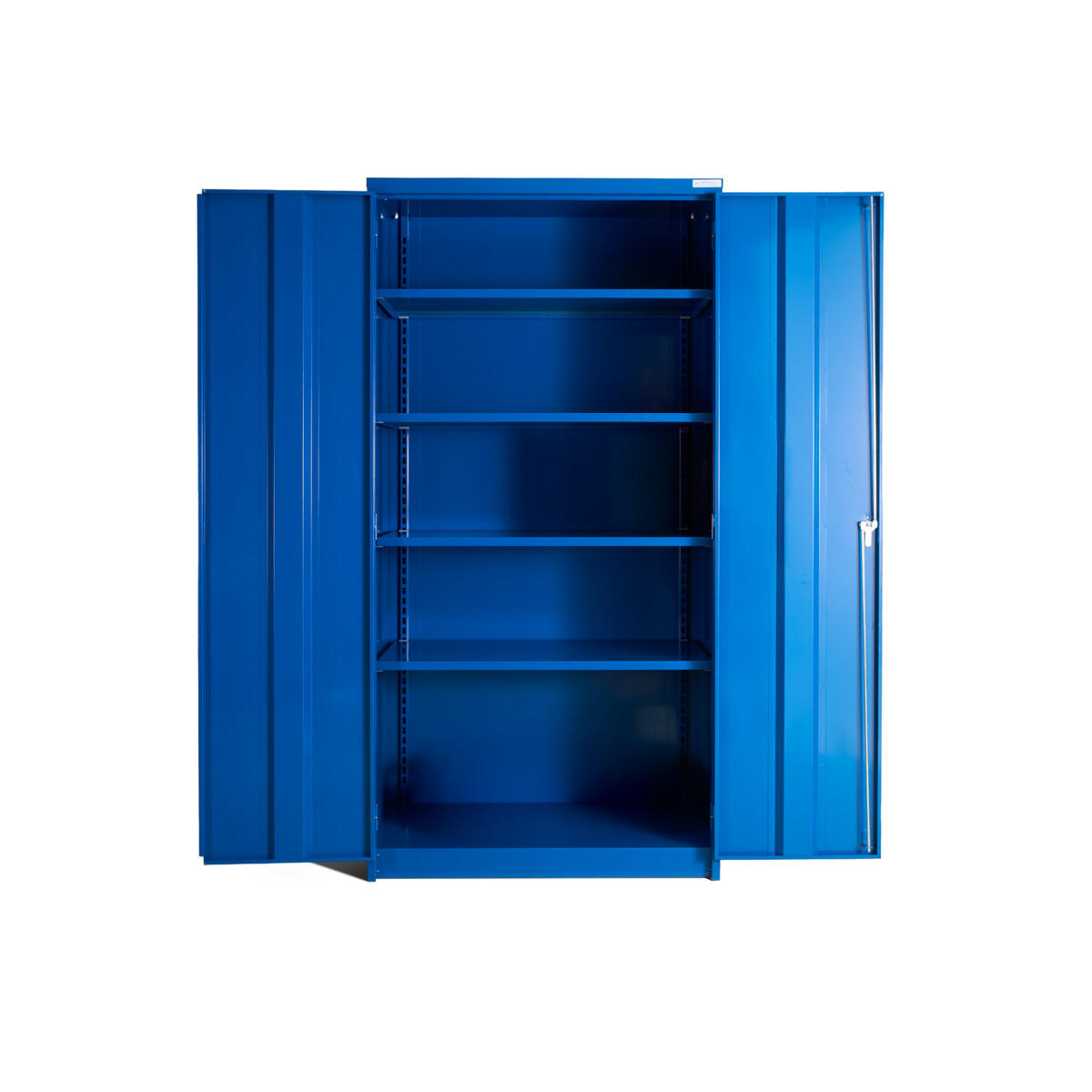 Verkstedskap produsert i kraftig stålplate som tåler høy belastning. Skapet leveres med kraftig espanjolettlås og håndtakslås med to nøkler (ikke montert ved levering). Innredning: 4 flyttbare hyller. Hyllekapasitet: 100 kg jevnt fordelt belastning.