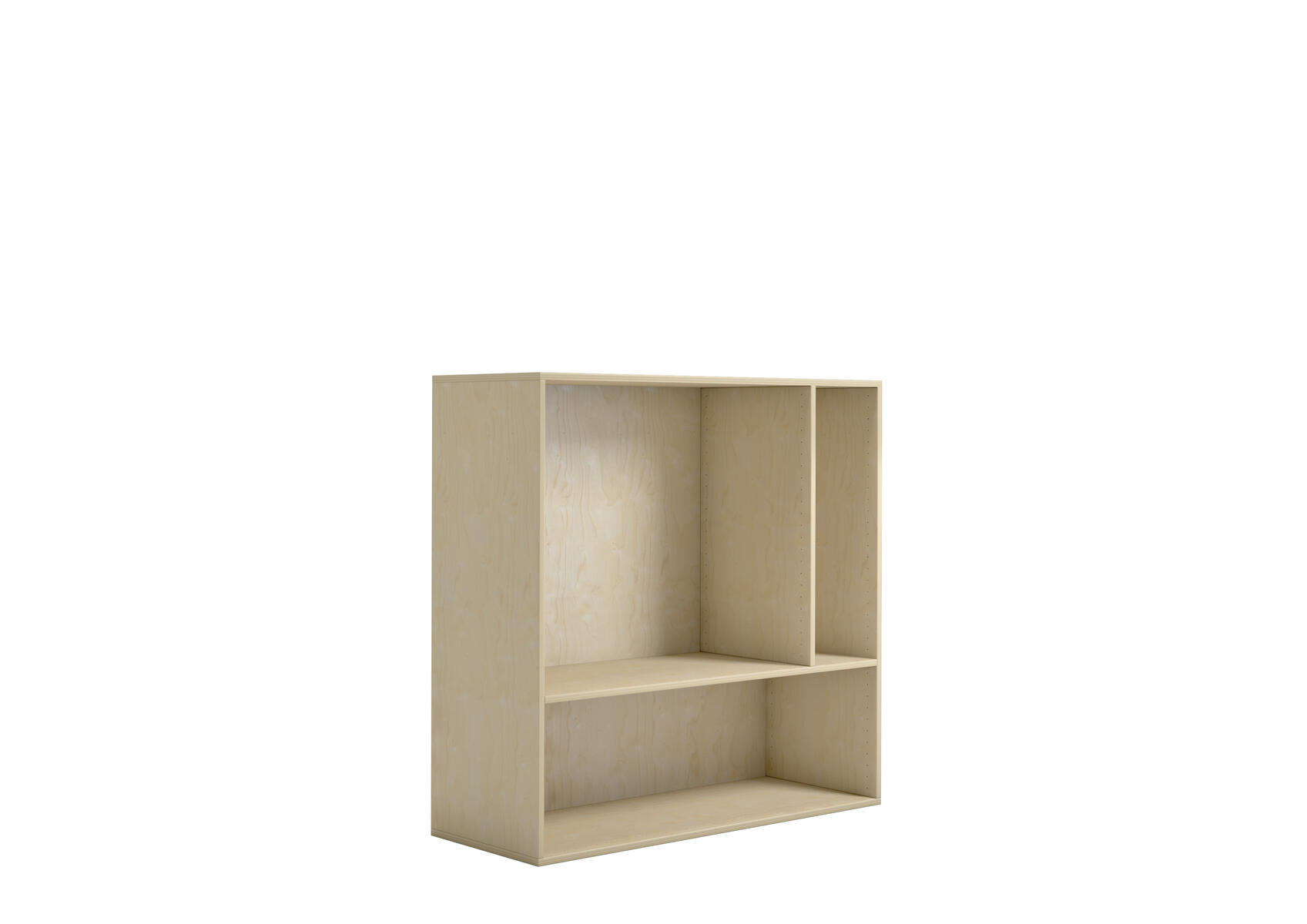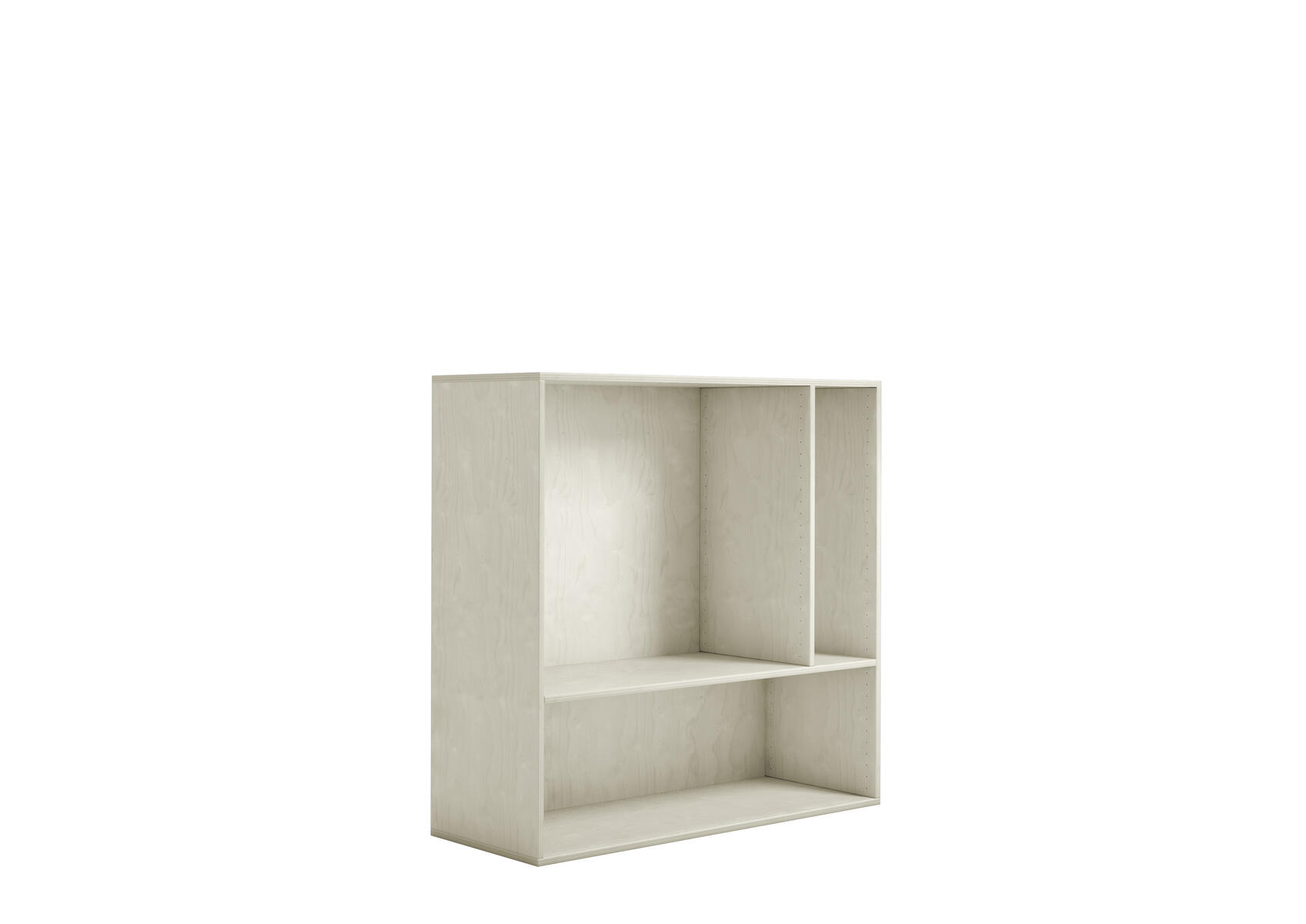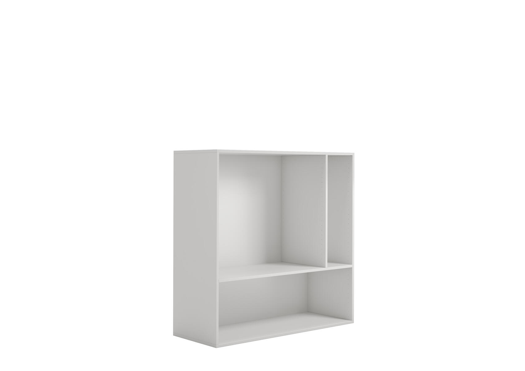 Modul med en fast mellomvegg. Kan også henges på veggen. Innermål: b113xd45xh75 cm. Yttermål: b117xd46xh79 cm. For å unngå veltefare må frittstående moduler, høyere enn 80 cm med hjul, ha støtteben med 2 låsbare hjul. Moduler høyere enn 80 cm med ben eller sokkel skal festes i vegg. Svanemerket, lisensnummer 5031 0099.