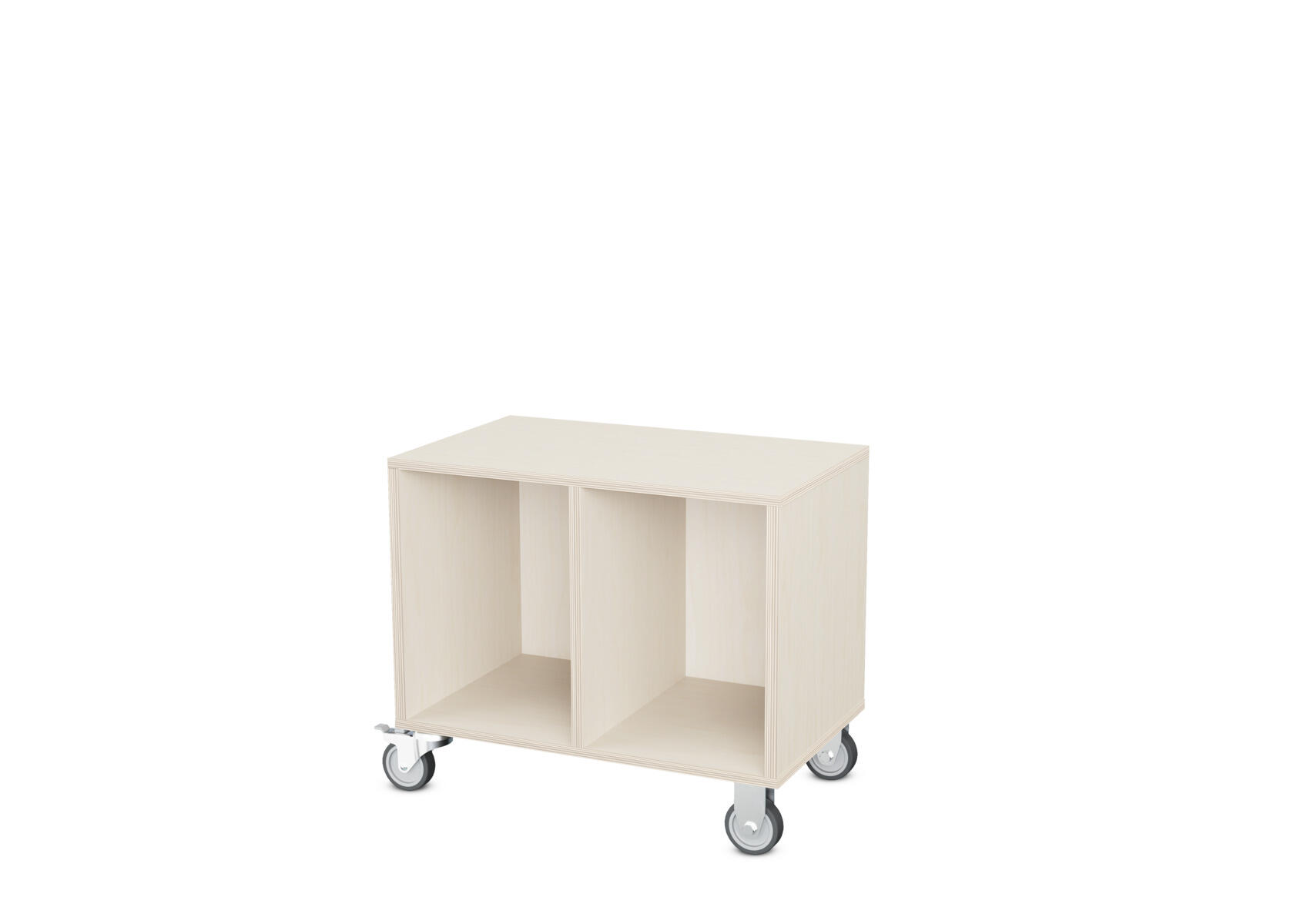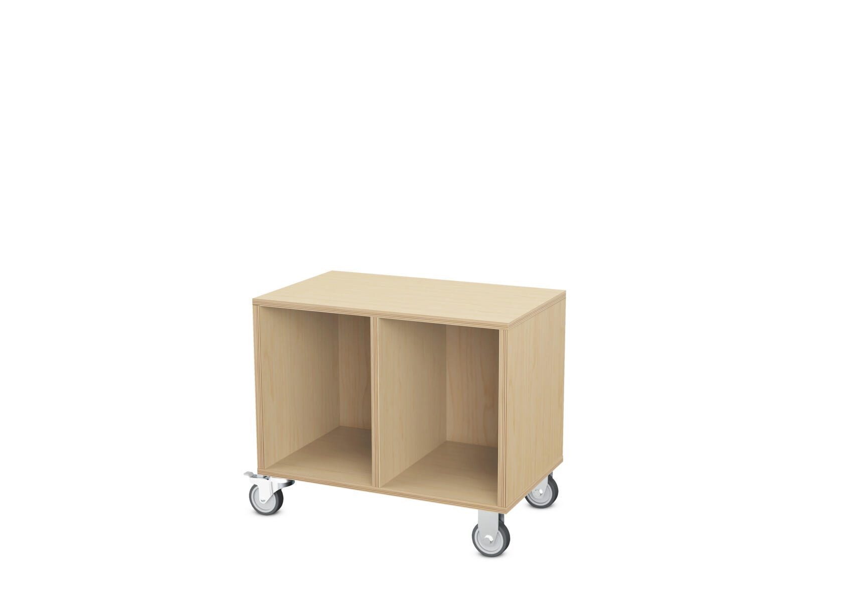 Lav ferdigbygd oppbevaring med tre brede rom. Skilleveggene er faste. Fire bevegelige hjul med bremser. Enkel montering av hjul. Svanemerket, lisensnummer 5031 0099.