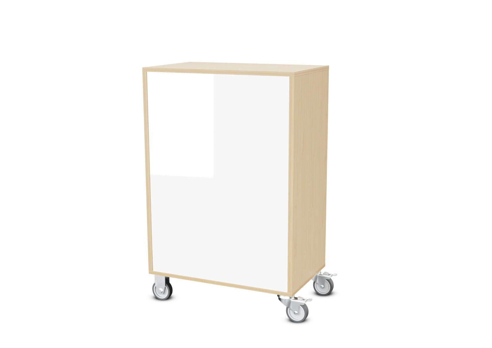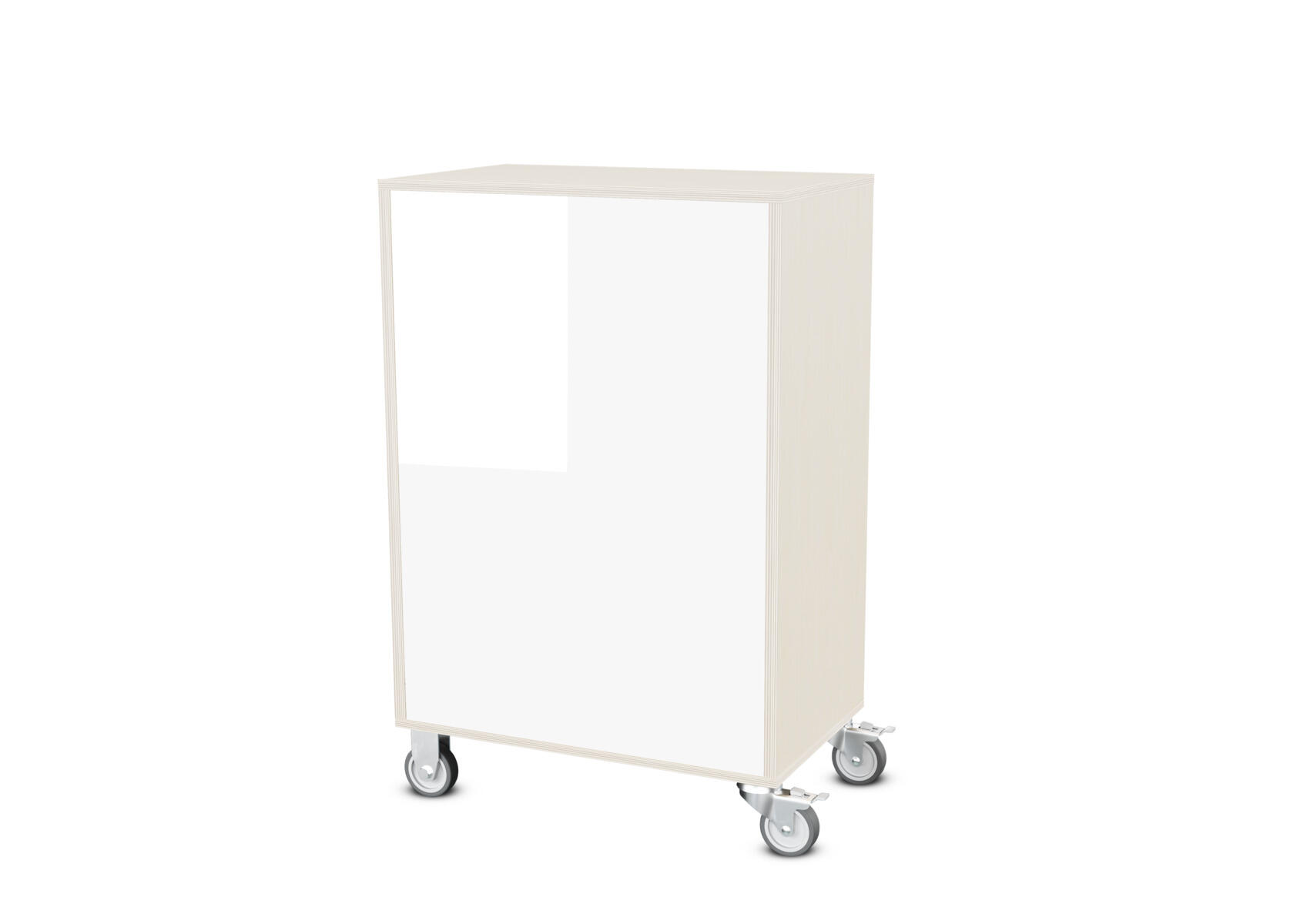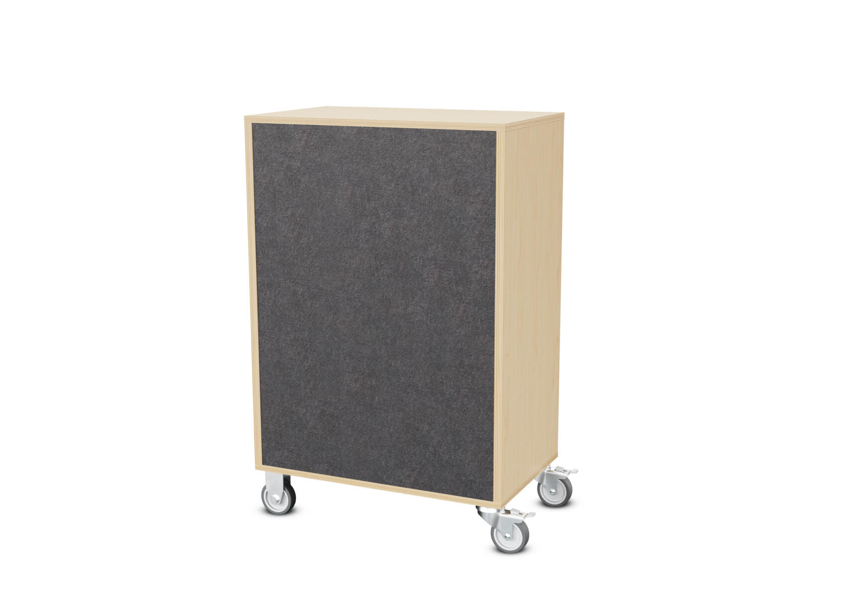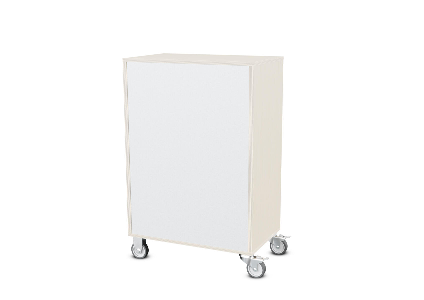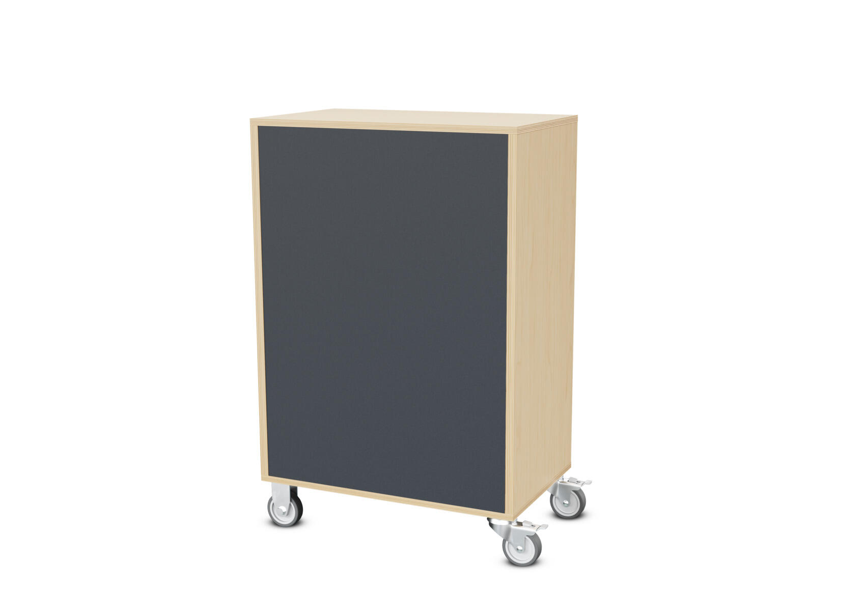 Denne oppbevaringen er et utmerket valg for å skape romdelere i åpne miljøer. Takket være muligheten til å velge ulike ryggalternativerr – whiteboard, speil, oppslagstavle, flanellograf eller lydabsorbent – kan den tilpasses etter behov og funksjon. Hjulene gjør oppbevaringen fleksibel og lett å flytte. Faste skillevegger. Fire hjul, hvorav 2 faste og 2 bevegelige med brems.