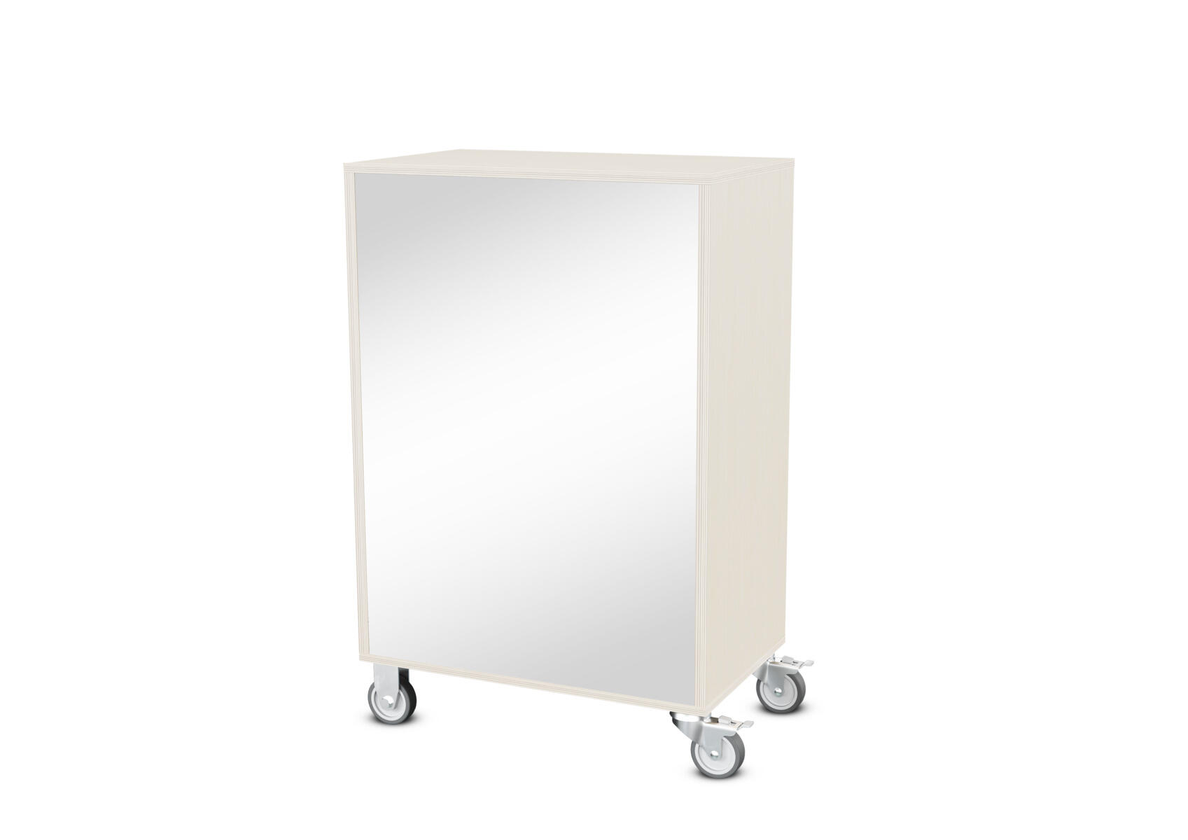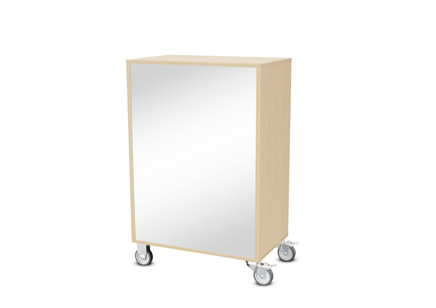 Denne oppbevaringen er et utmerket valg for å skape romdelere i åpne miljøer. Takket være muligheten til å velge ulike ryggalternativerr – whiteboard, speil, oppslagstavle, flanellograf eller lydabsorbent – kan den tilpasses etter behov og funksjon. Hjulene gjør oppbevaringen fleksibel og lett å flytte. Faste hyller og skillevegger. Fem hjul, hvorav 2 faste og 2 bevegelige med brems og et bevegelig under.