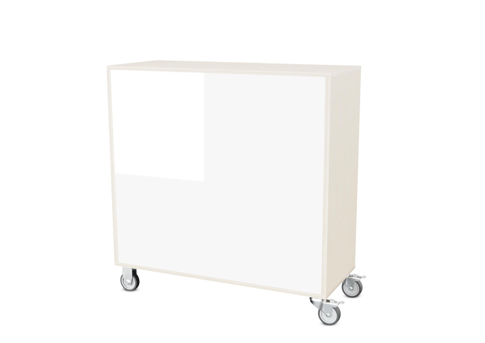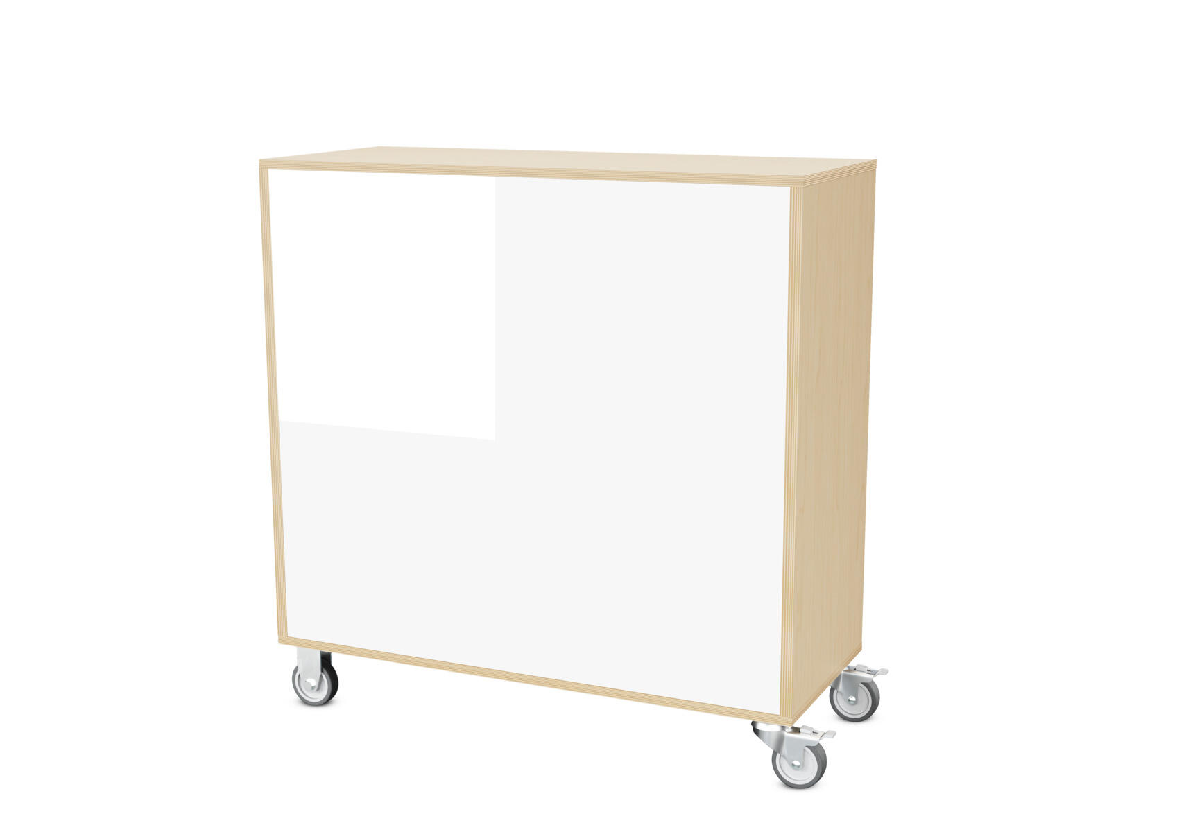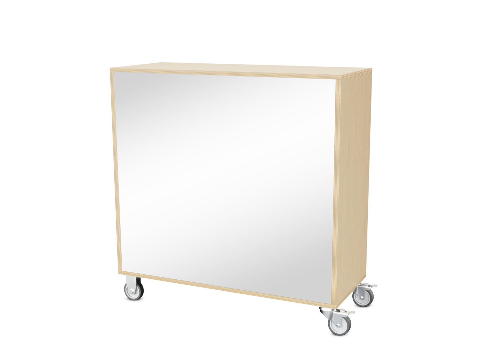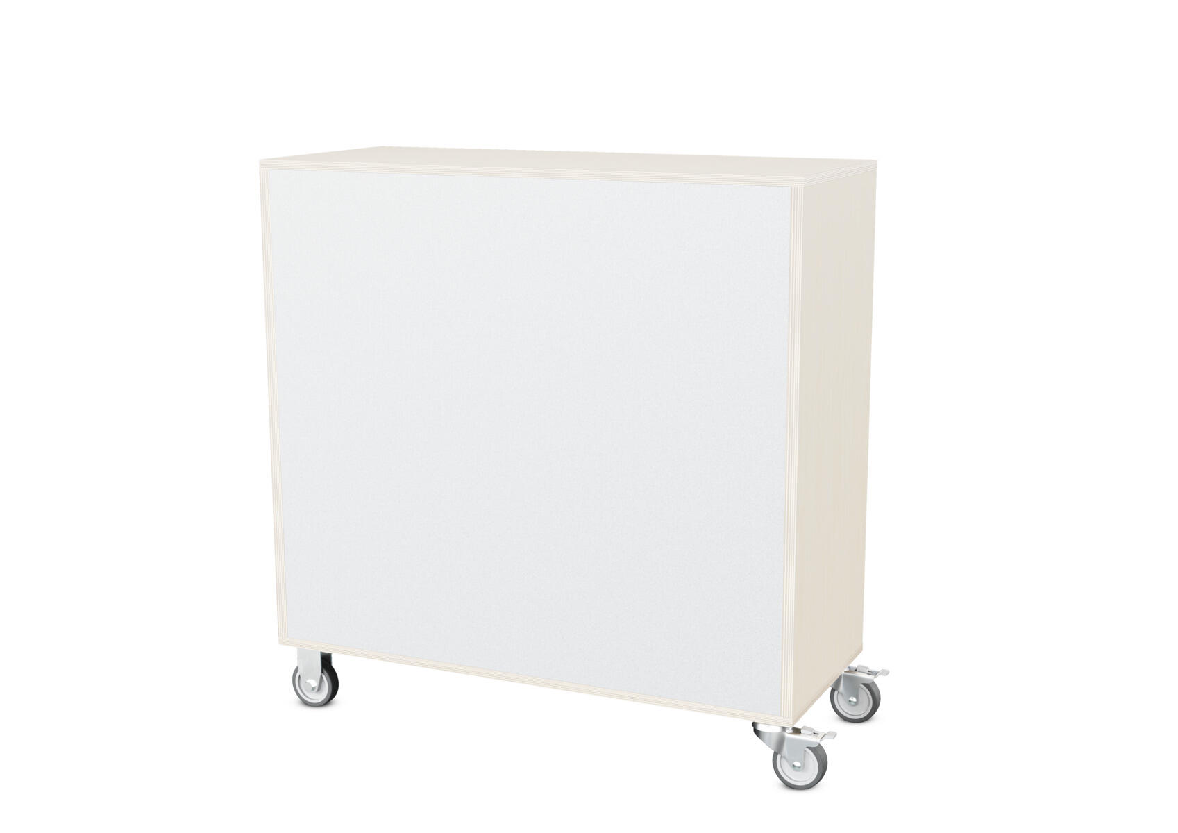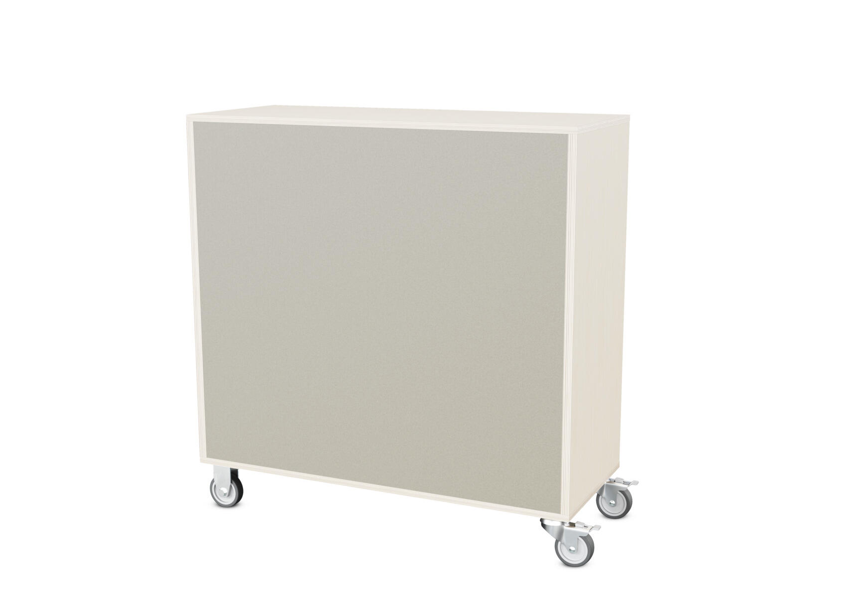 Denne oppbevaringen er et utmerket valg for å skape romdelere i åpne miljøer. Takket være muligheten til å velge ulike ryggalternativerr – whiteboard, speil, oppslagstavle, flanellograf eller lydabsorbent – kan den tilpasses etter behov og funksjon. Hjulene gjør oppbevaringen fleksibel og lett å flytte. Faste skillevegger. Fire hjul, hvorav 2 faste og 2 bevegelige med brems.