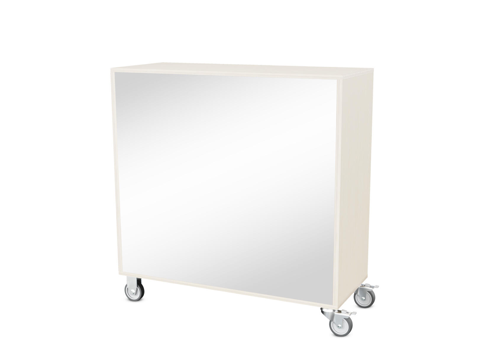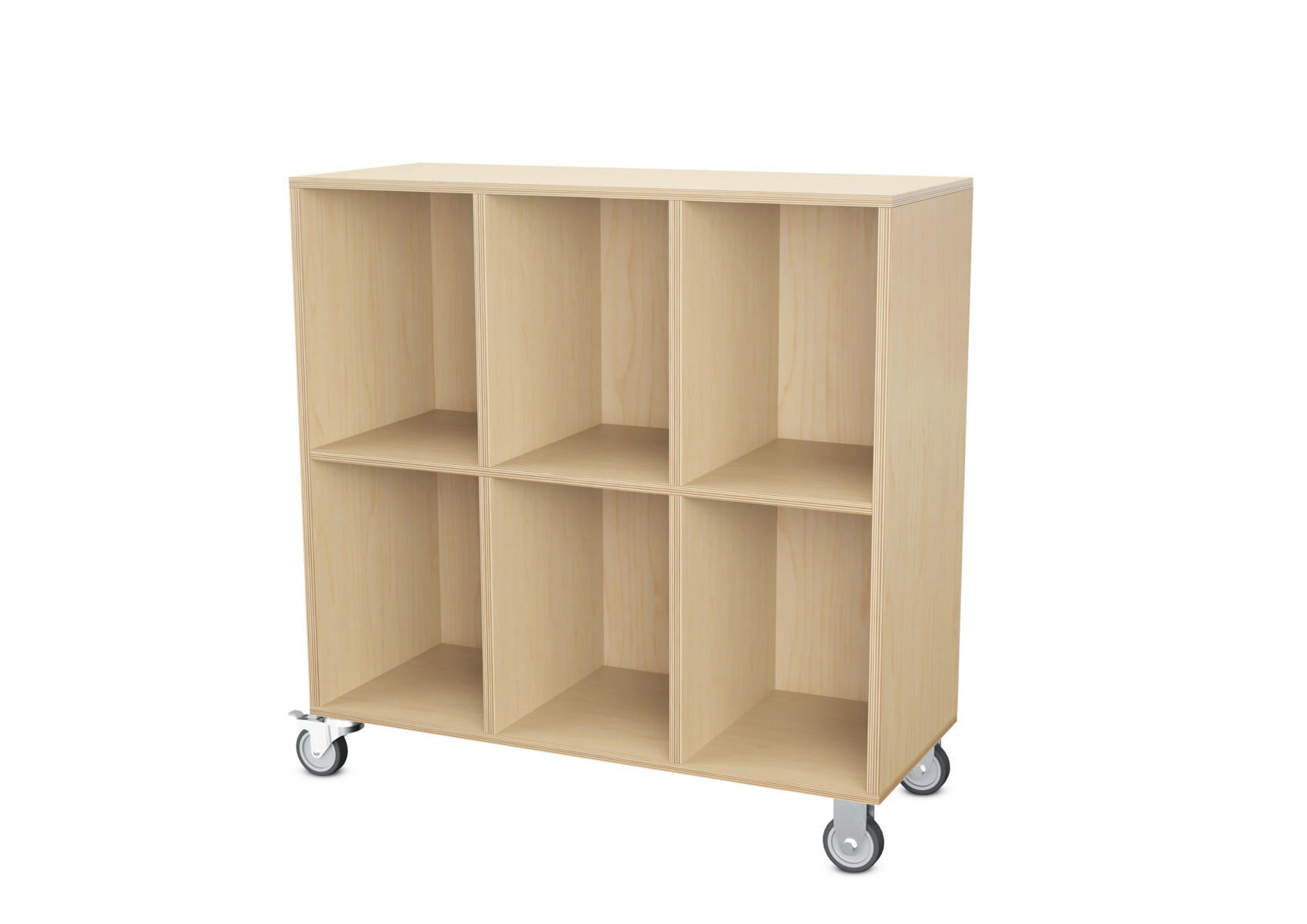 Denne oppbevaringen er et utmerket valg for å skape romdelere i åpne miljøer. Takket være muligheten til å velge ulike ryggalternativerr – whiteboard, speil, oppslagstavle, flanellograf eller lydabsorbent – kan den tilpasses etter behov og funksjon. Hjulene gjør oppbevaringen fleksibel og lett å flytte. Faste hyller og skillevegger. Fem hjul, hvorav 2 faste og 2 bevegelige med brems og et bevegelig under.