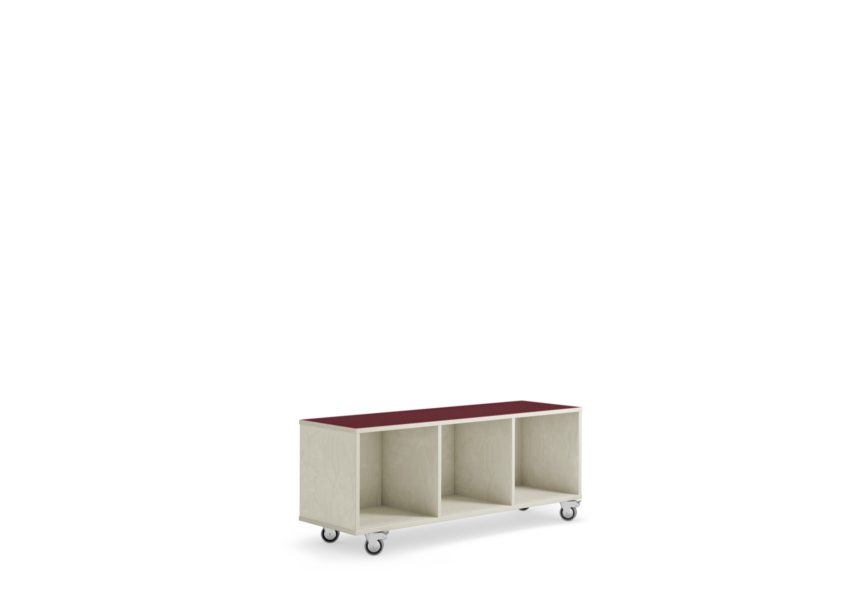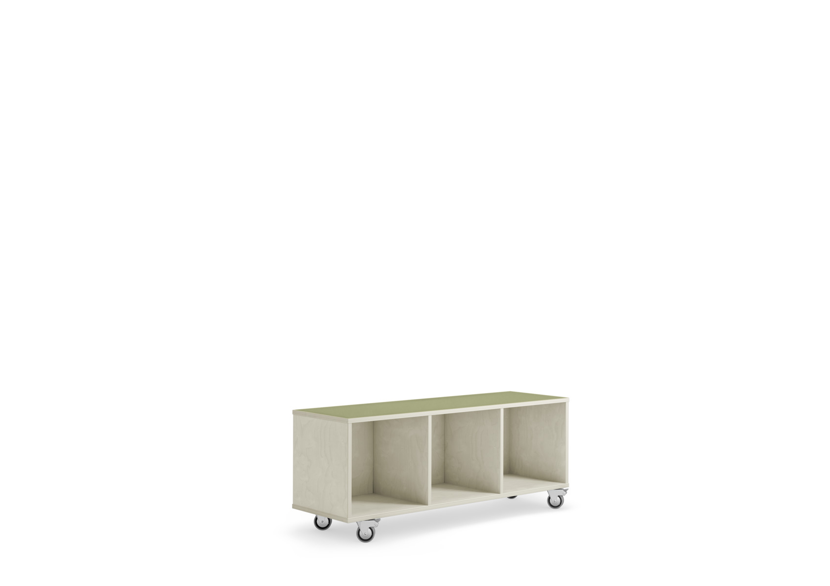 Kubus oppbevaring uten rygg. Velg farge på toppen i høytrykkslaminat. Oppbevaring helt i kryssfiner når du velger bjørk på toppen. Laget av bjørkekryssfiner av høyeste kvalitet. Leveres med 2 faste hjul på den ene kortsiden og 2 bevegelige, men låsbare hjul på den andre. Forborede hull for enkel montering av hjul. Kubus oppbevaringskasser passer ikke til denne oppbevaringen. Svanemerket, lisensnummer 5031 0099.