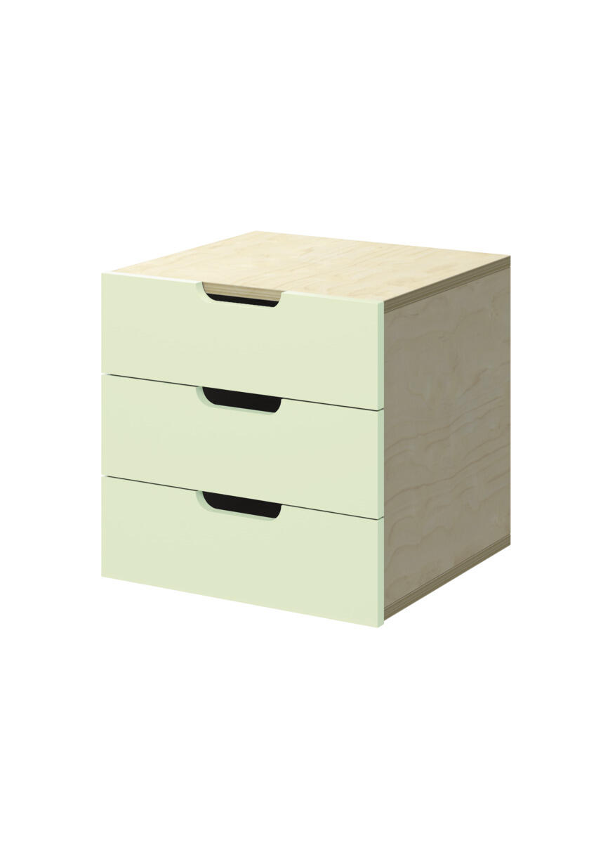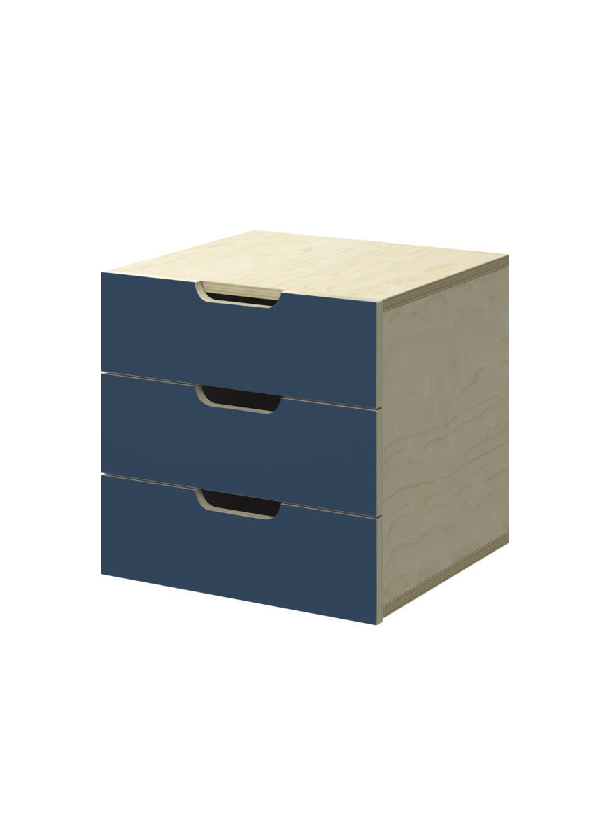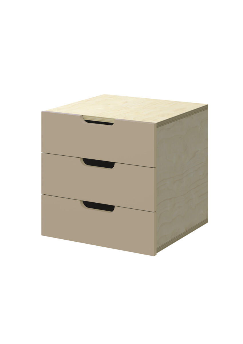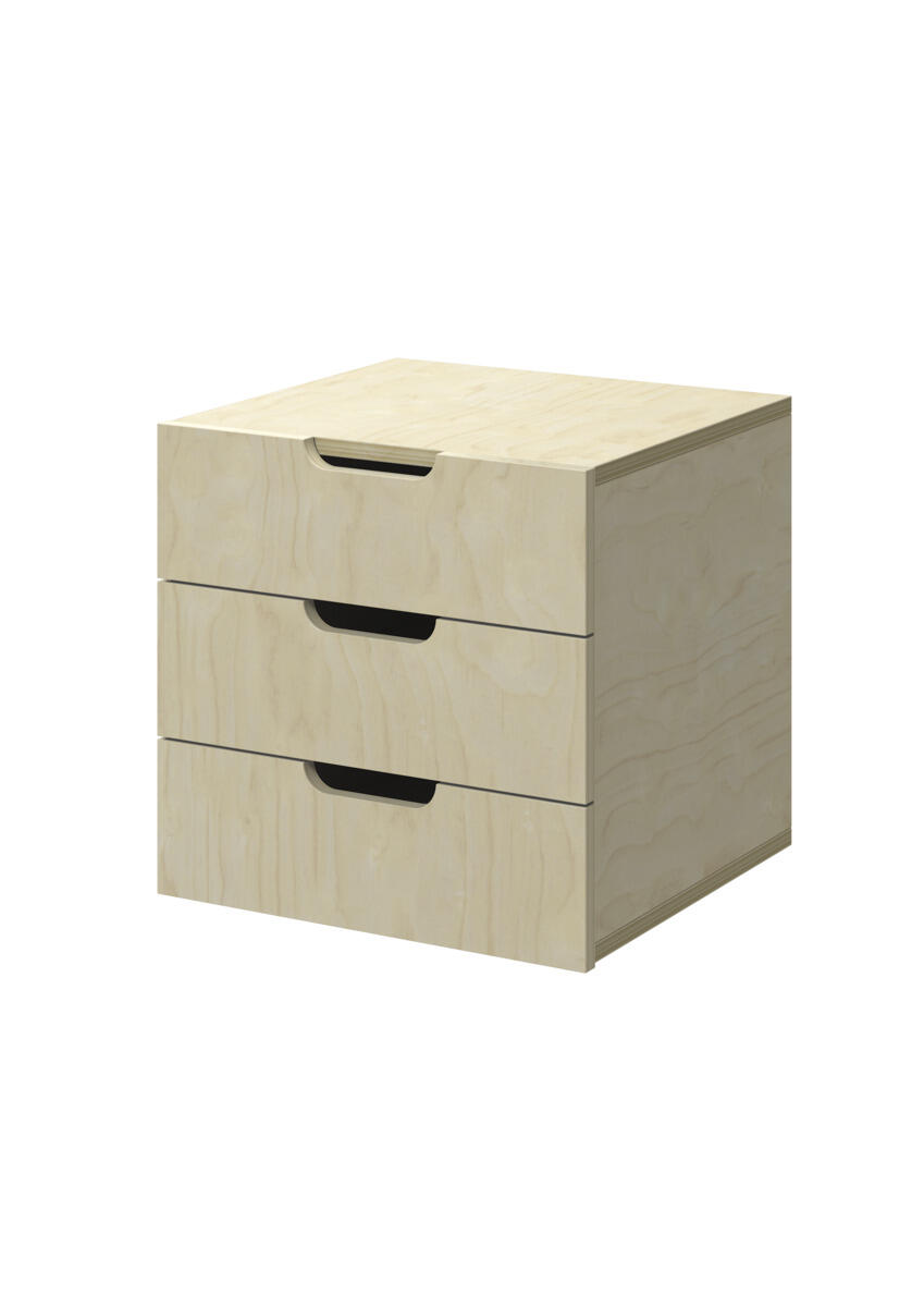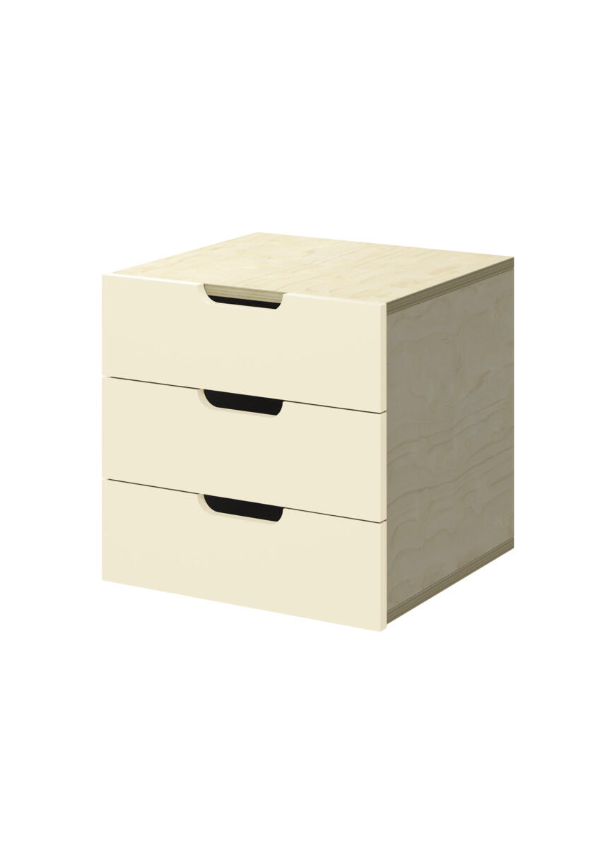 Innsats med 3 skuffer, passer i 1 rom. Skuffene er uten stoppere. Skuffens mål: 28,5x30x6 cm. Innsats: 37x36x35 cm. Innsatsen bør plasseres i de nederste hyllene. Svanemerket, lisensnummer 5031 0099.