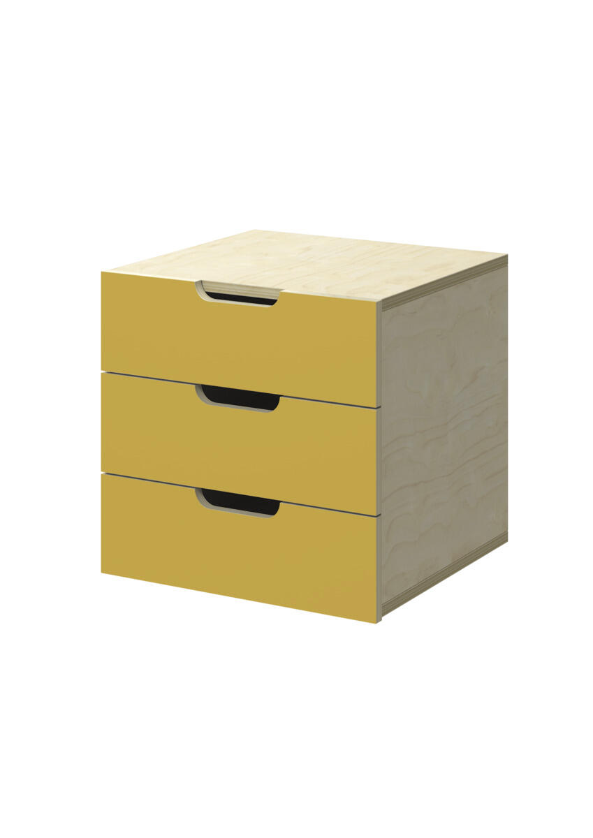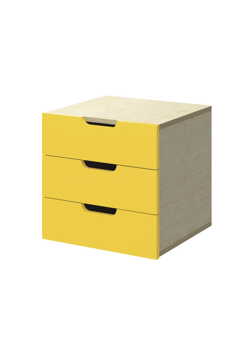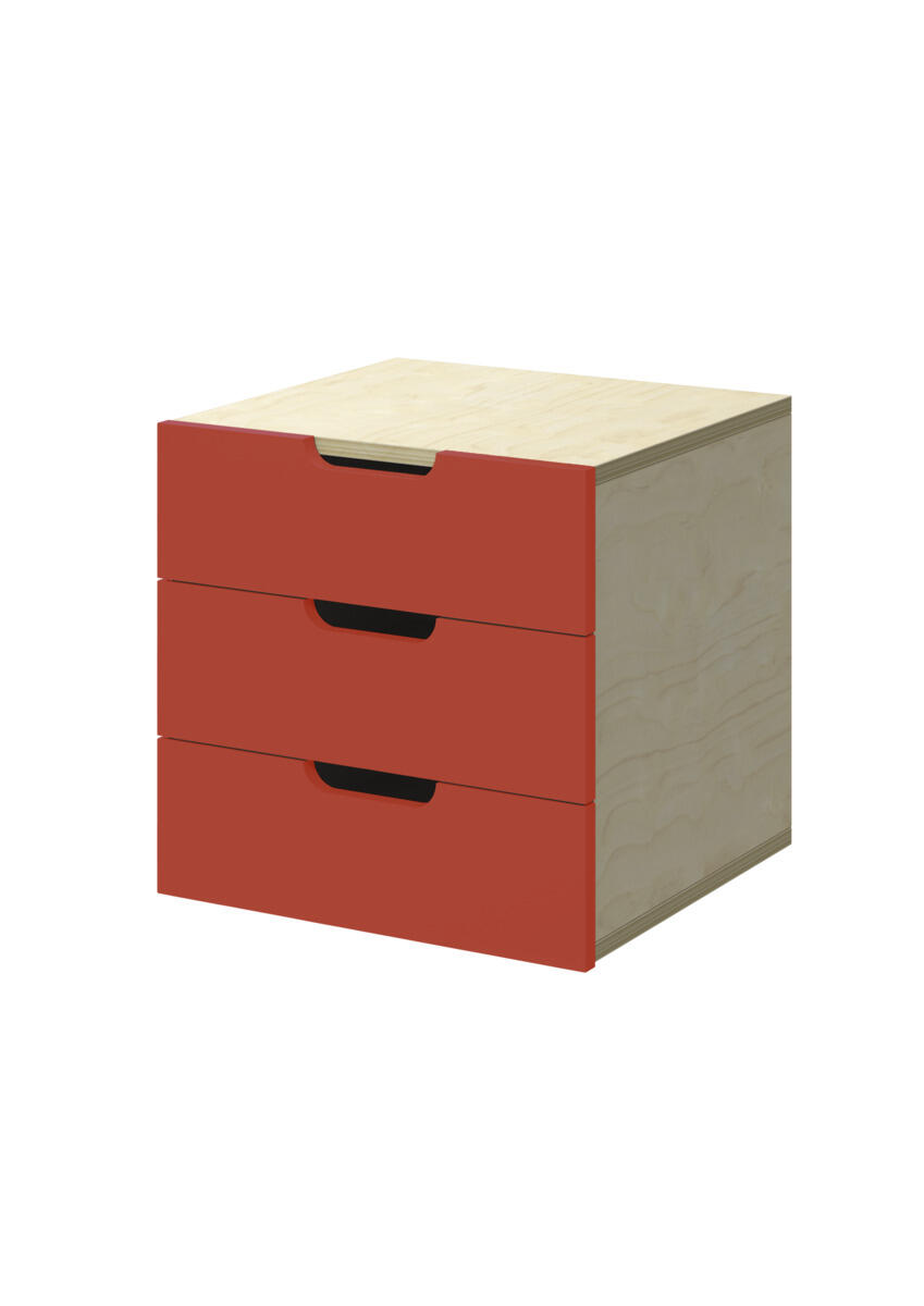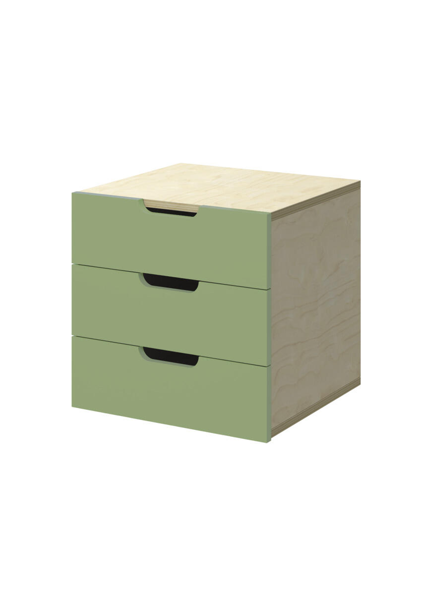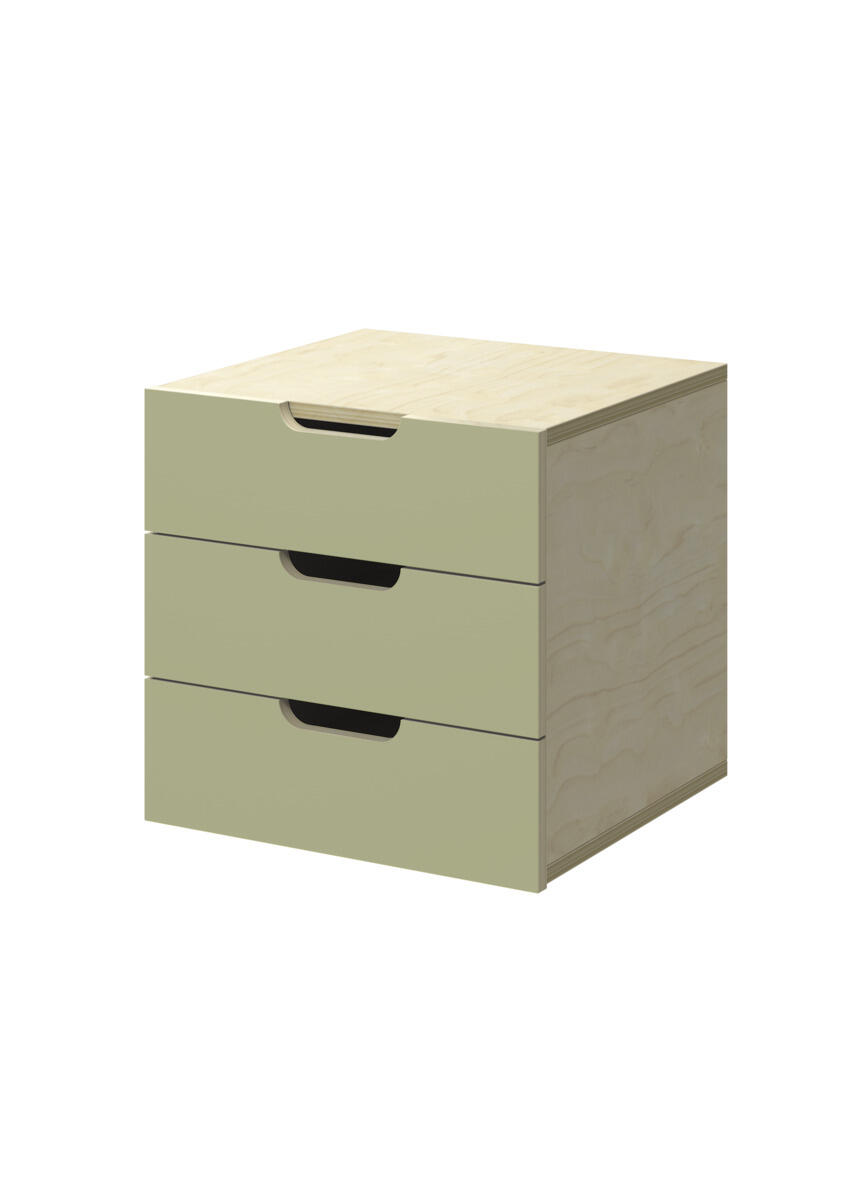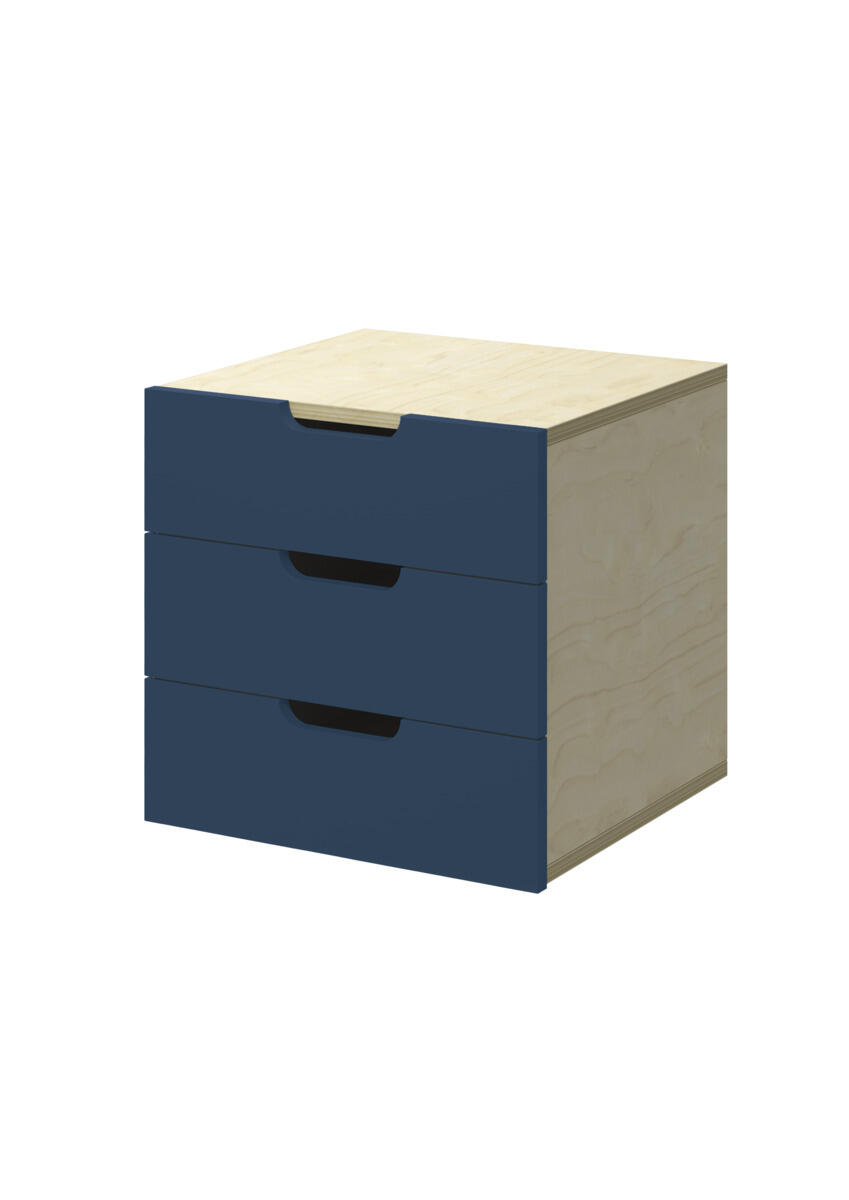 Innsats med 3 skuffer, passer i 1 rom. Skuffene er uten stoppere. Skuffens mål: 28,5x30x6 cm. Innsats: 37x36x35 cm. Innsatsen bør plasseres i de nederste hyllene. Svanemerket, lisensnummer 5031 0099.