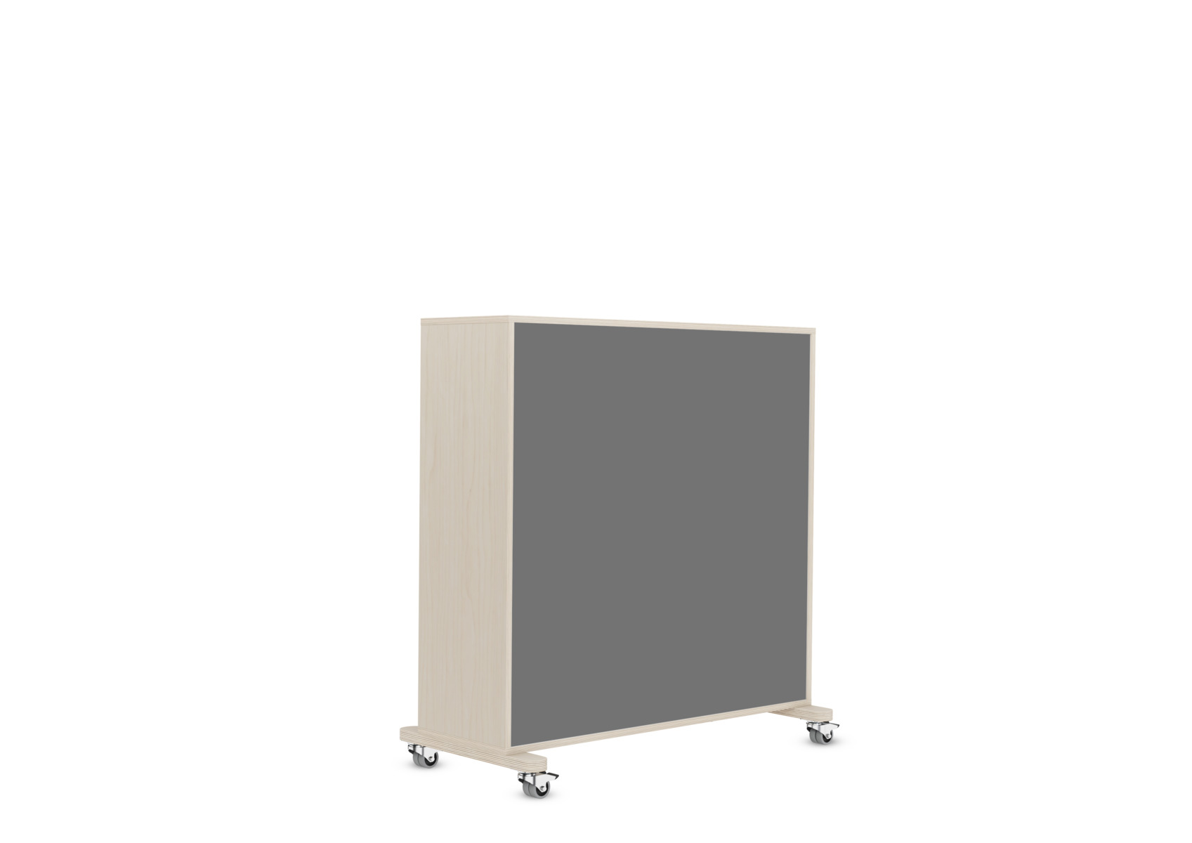 Oppbevaring med rygg bulletin board. Laget av bjørkekryssfiner av høyeste kvalitet. 2 faste hjul på den ene kortsiden og 2 bevegelige, låsbare hjul på den andre samt 1 i midten. Forborede hull for enkel montering av hjul. Mobile enheter gir økt fleksibilitet og mulighet til enkelt å endre romoppsettet. Unngå å plassere tunge gjenstander høyt oppe på hyllen. Reduser risikoen for velting ved å styre hjulene forover eller bakover og låse hjulene. Den valgte fargen er høytrykkslaminat på toppen av oppbevaringsenheten. Ved valg av bjørk er oppbevaringen helt i kryssfiner.