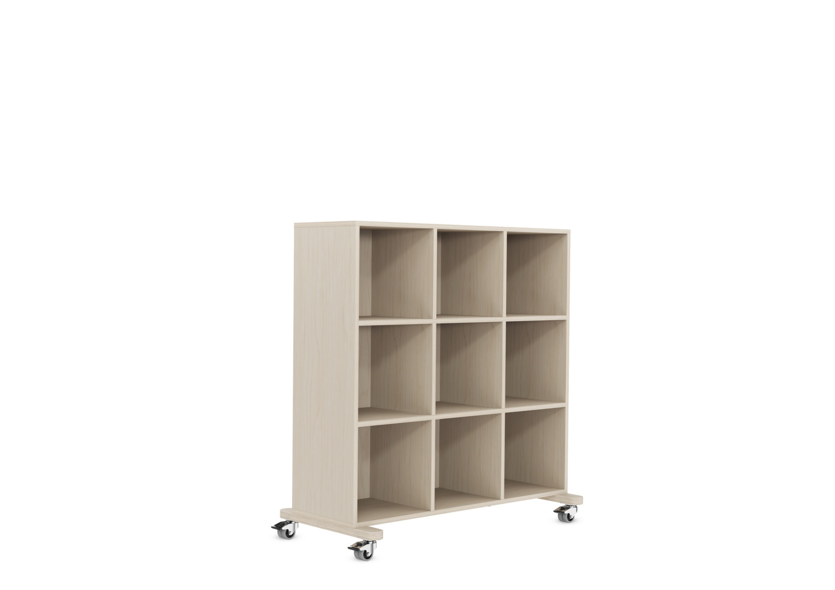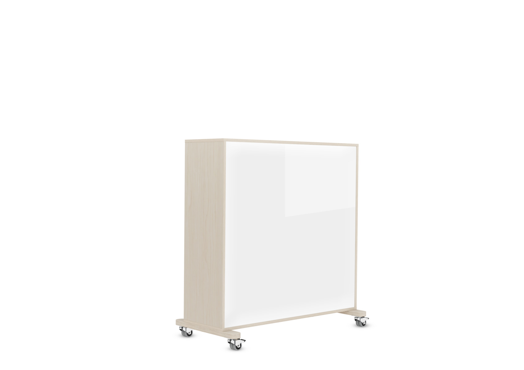 Oppbevaring med rygg i magnetisk whiteboard. Laget av bjørkekryssfiner av høyeste kvalitet. Støtteben med låsbare hjul. Forborede hull for enkel montering av hjul. Mobile enheter gir økt fleksibilitet og mulighet til enkelt å endre romoppsettet. Unngå å plassere tunge gjenstander høyt oppe på hyllen. Reduser risikoen for velting ved å styre hjulene forover eller bakover og låse hjulene. Den valgte fargen er høytrykkslaminat på toppen av oppbevaringsenheten. Ved valg av hvitpigmentert er oppbevaringen helt i kryssfiner.