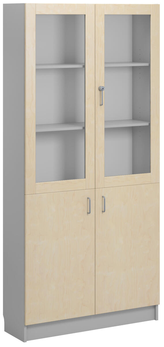 Norden FSC materialskap 2 tette/2 glass lysgrå 100x32x210 cm