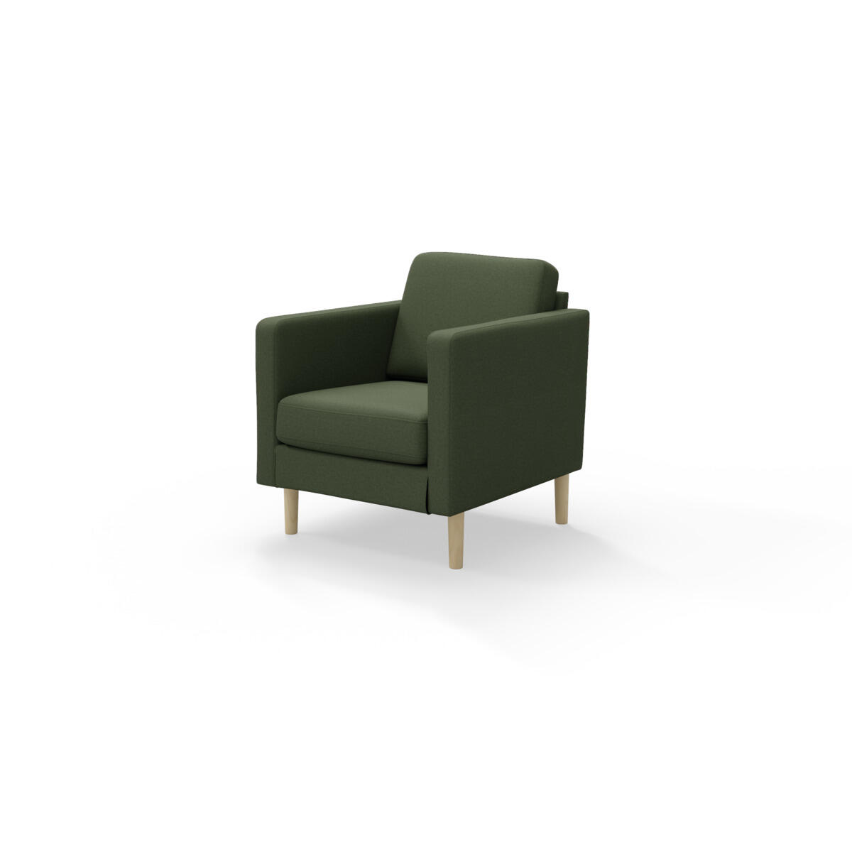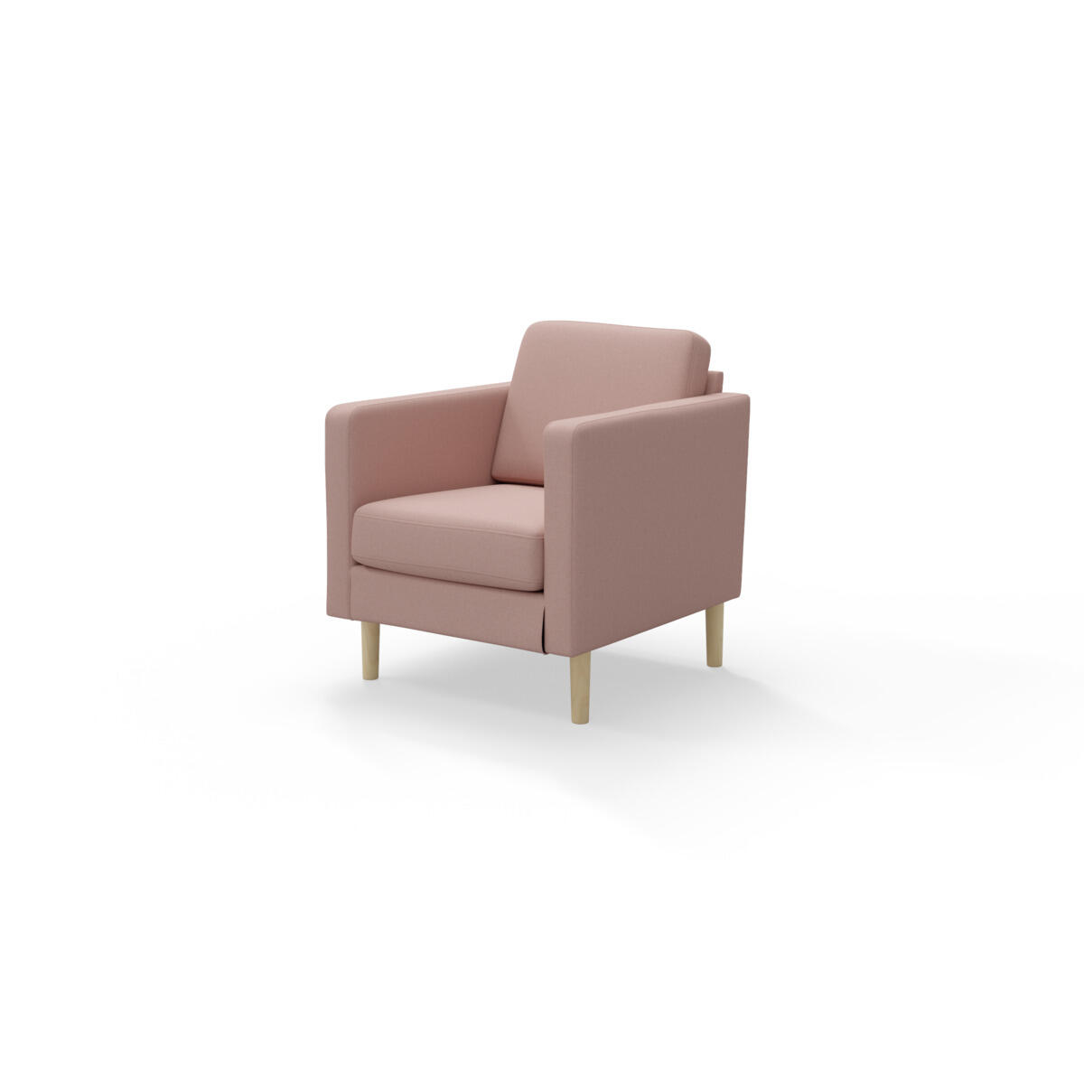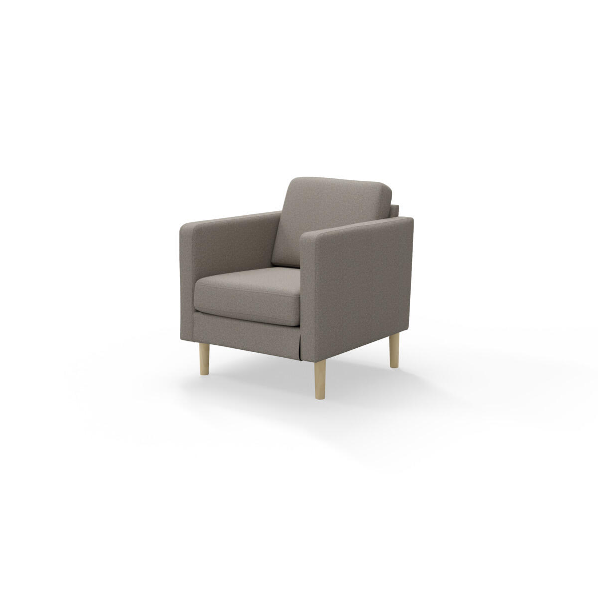 En lenestol med stamme i massivt tre med bunn i nozag for robust støtte og komfort. Leveres i mange farger i 3 forskjellige stoff: X2, Replay og Slottsfjord. Sete- og ryggputer er vendbare. Alle trekk på både stamme og puter kan tas av for enkel rengjøring og vedlikehold. Ben finnes i klarlakkert, hvite og svarte. Enkel montering av ben.
