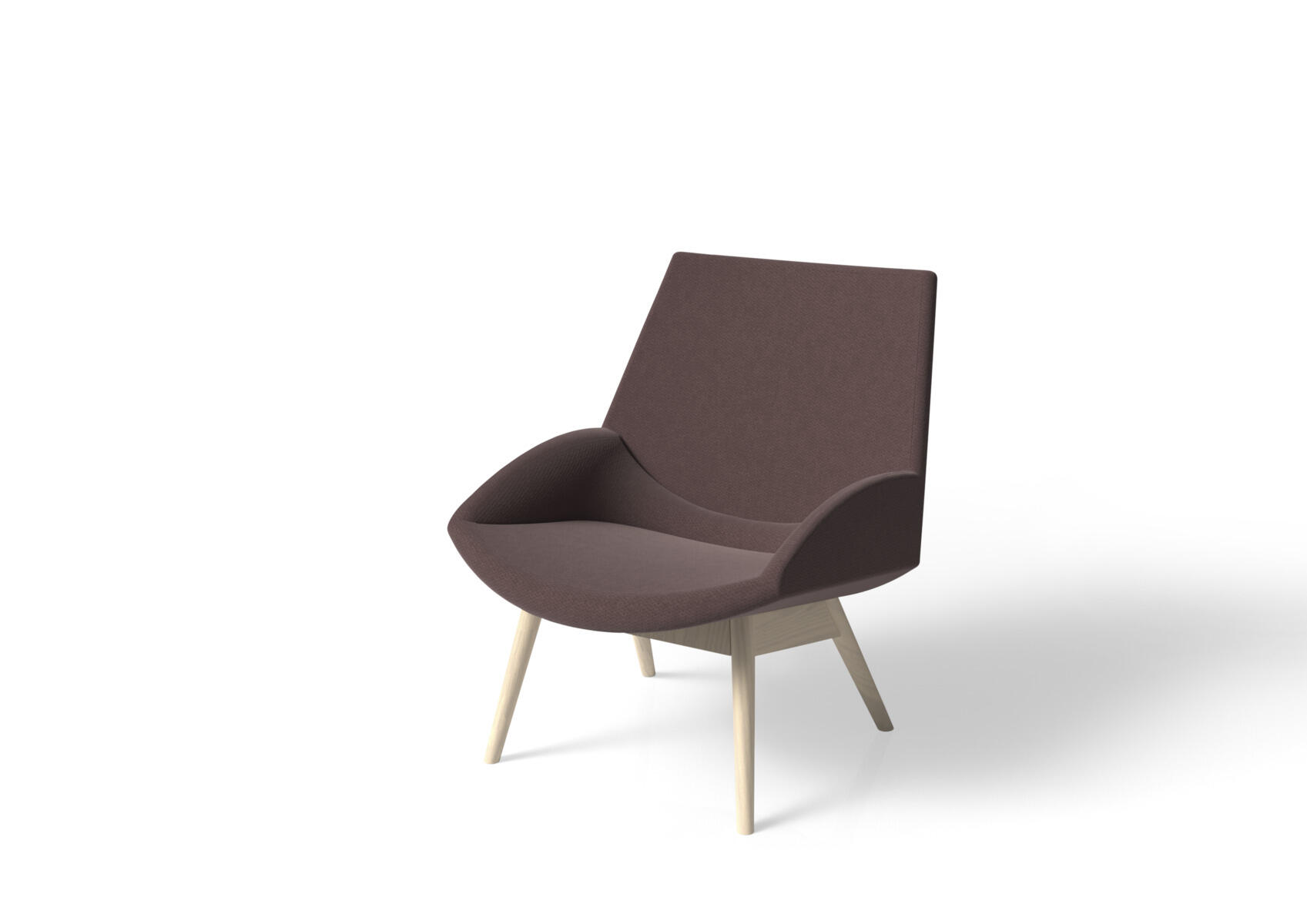 Stilren lenestol med et enkelt design som passer inn i de fleste miljøer. Rette linjer på utsiden og avrundede, omsluttende former på innsiden. Det rette utsiden gjør det enkelt å plassere flere lenestoler tett sammen, for eksempel rygg mot rygg. Treramme med nozag-understell og polstring av kaldskum. Pulverlakkert metallunderstell.