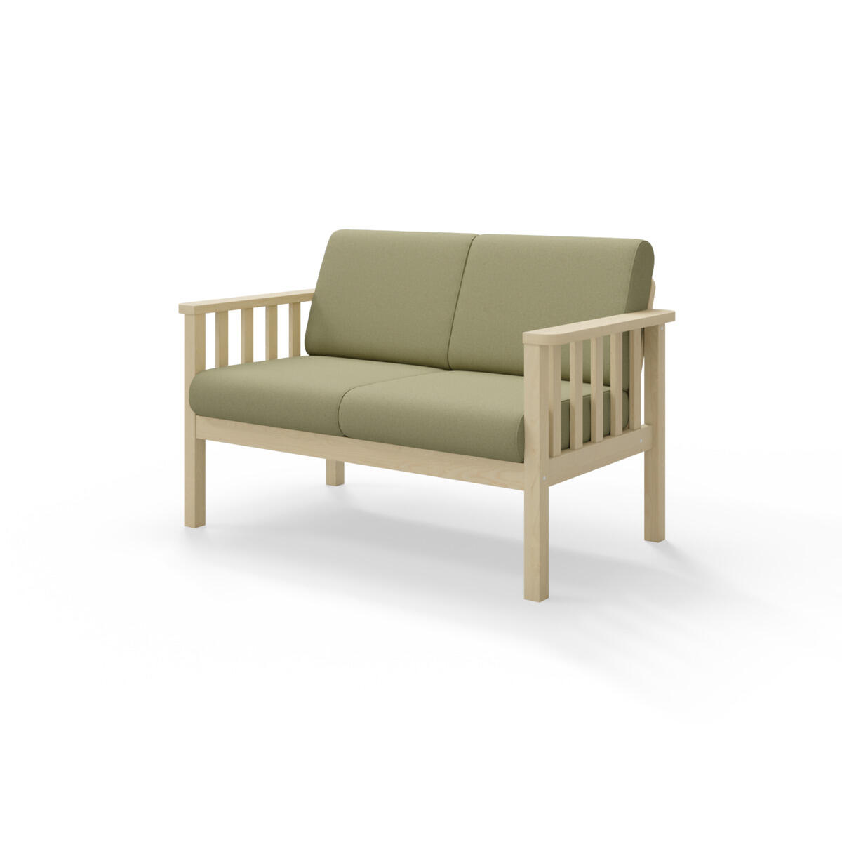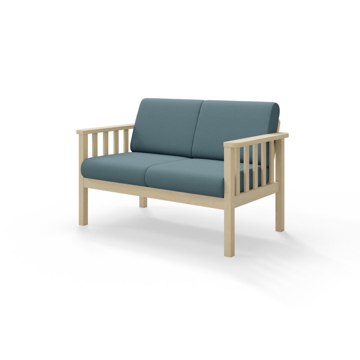 En sofa med stamme i massivt tre og bunn i nozag for robust støtte og komfort. Leveres i mange farger i 3 forskjellige stoff: X2, Replay og Slottsfjord. Sete- og ryggputer er vendbare. Alle trekk på både stamme og puter kan tas av for enkel rengjøring og vedlikehold. Ben finnes i klarlakkert, hvite og svarte. Enkel montering av ben.
